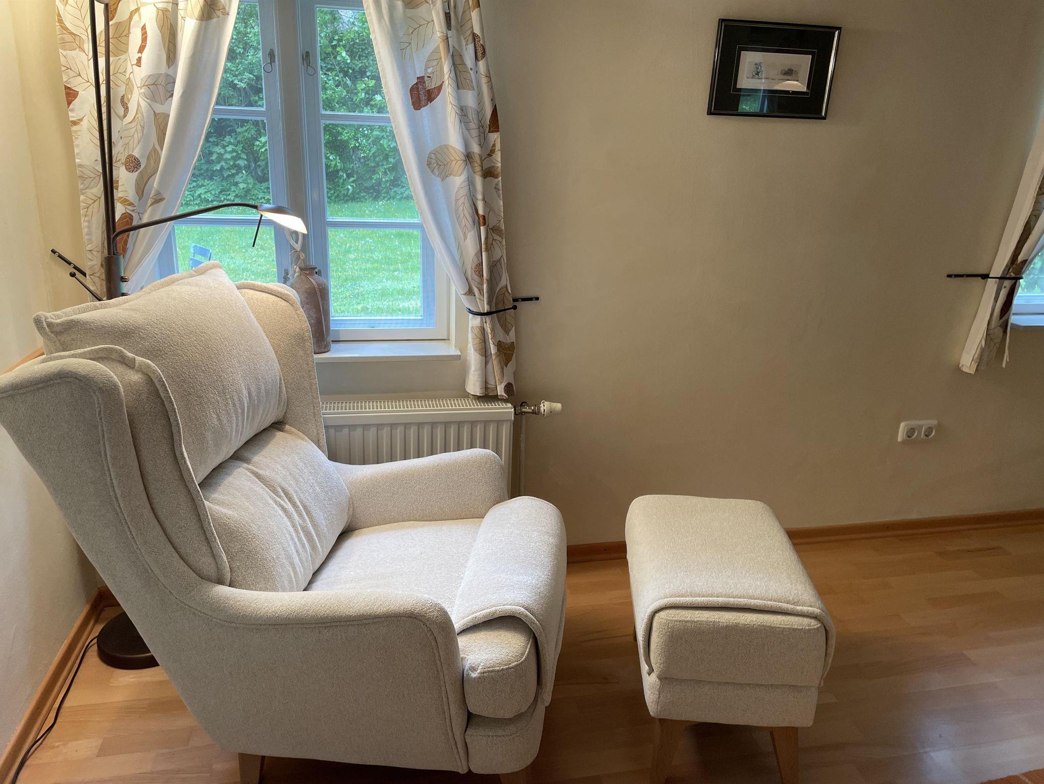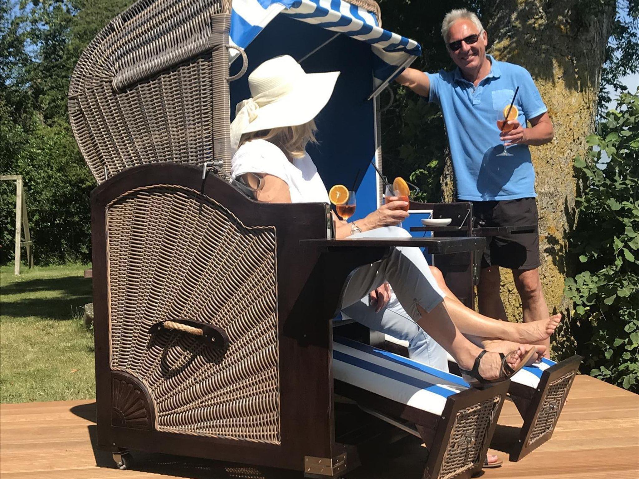 Im Wohnraum mit gemütlicher Sitzecke stehen auch ein Fernseher, DVD-Player und eine Stereoanlage mit Ipod/Iphone-anschluss.Die Küche ist komplett mit Geschirrspüler, Waschmaschine, Trockner, Mikrowelle, Saftpresse sowie einem Backofen und Gefrierschrank ausgestattet. Durch einen direkten Zugang durch die Küche, gelangt man in das gemütliche Esszimmer. Im Erdgeschoss stehen 2 Bäder zur Verfügung, die jeweils mit WC und Dusche ausgestattet sind.Im Obergeschoss befindet sich ein Schlafraum mit 2 Betten, jene über 2 weitere ausziehbare Betten verfügen. Wlan vorhanden.