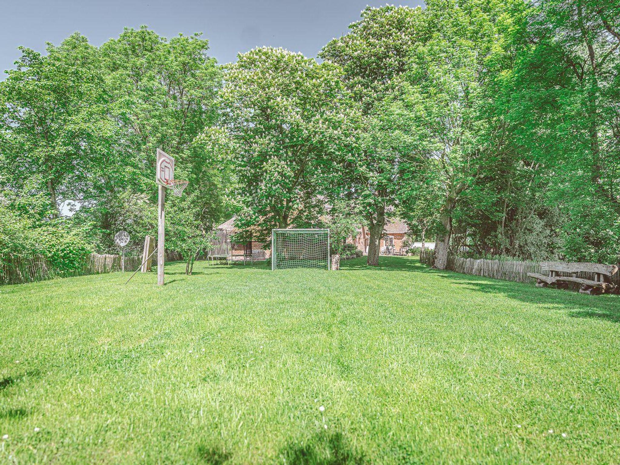 Es erwartet Sie ein Garten mit Liegewiese, Terrassen mit Gartenmo¨beln, und Sonnenschirm. Zahlreiche Spielmo¨glichkeiten wie Schaukel, Rutsche, Sandkasten, Fußballtor, Basketballkorb, und ein Trampolin sind ebenfalls vorhanden.