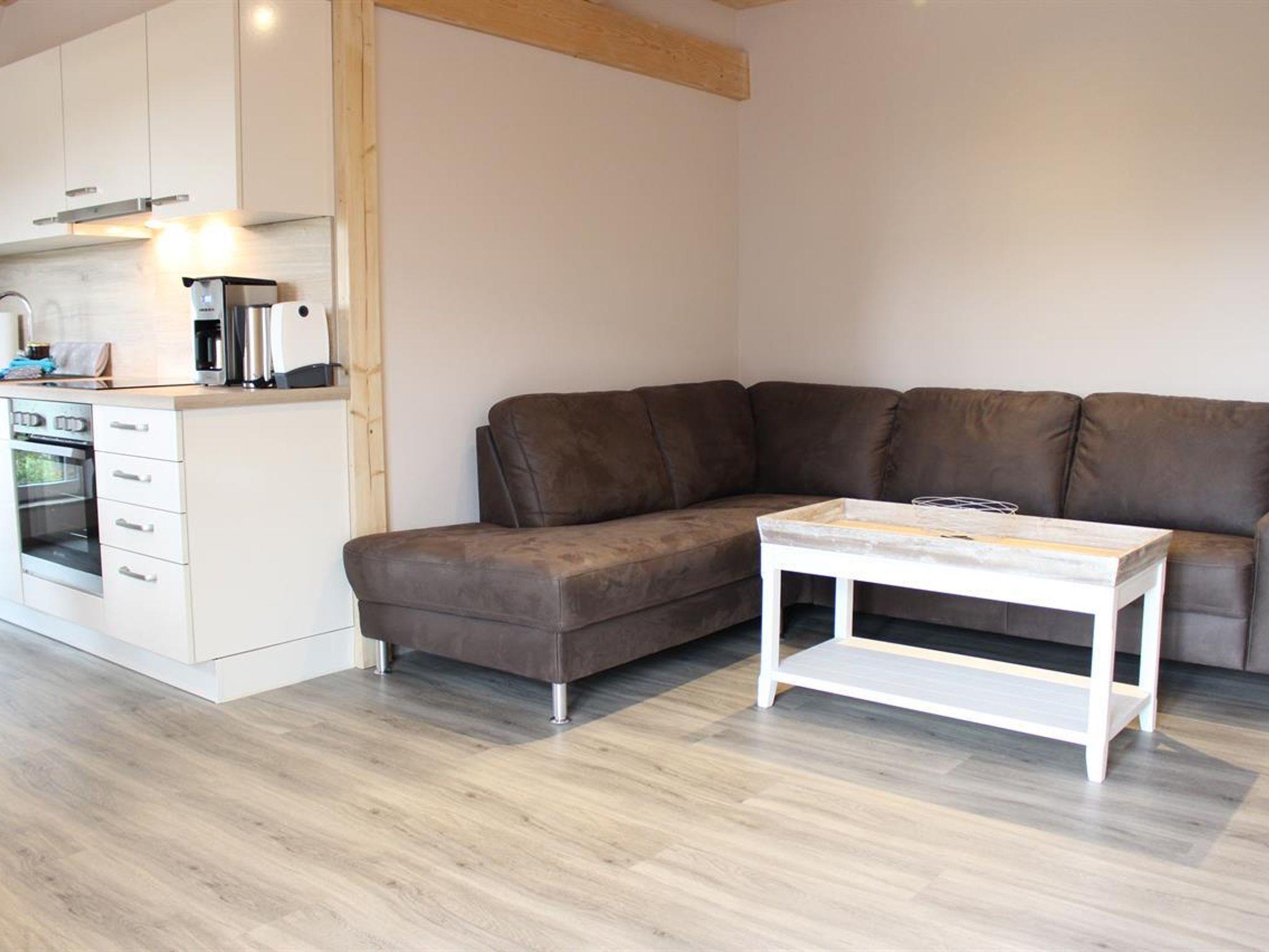 Großer Wohnbereich mit Couchlandschaft, SAT-TV, DVD-Player, einem kleinem Arbeitsbereich, Essgruppe und einer komplett ausgestatten Küche, inkl. Geschirrspüler.
