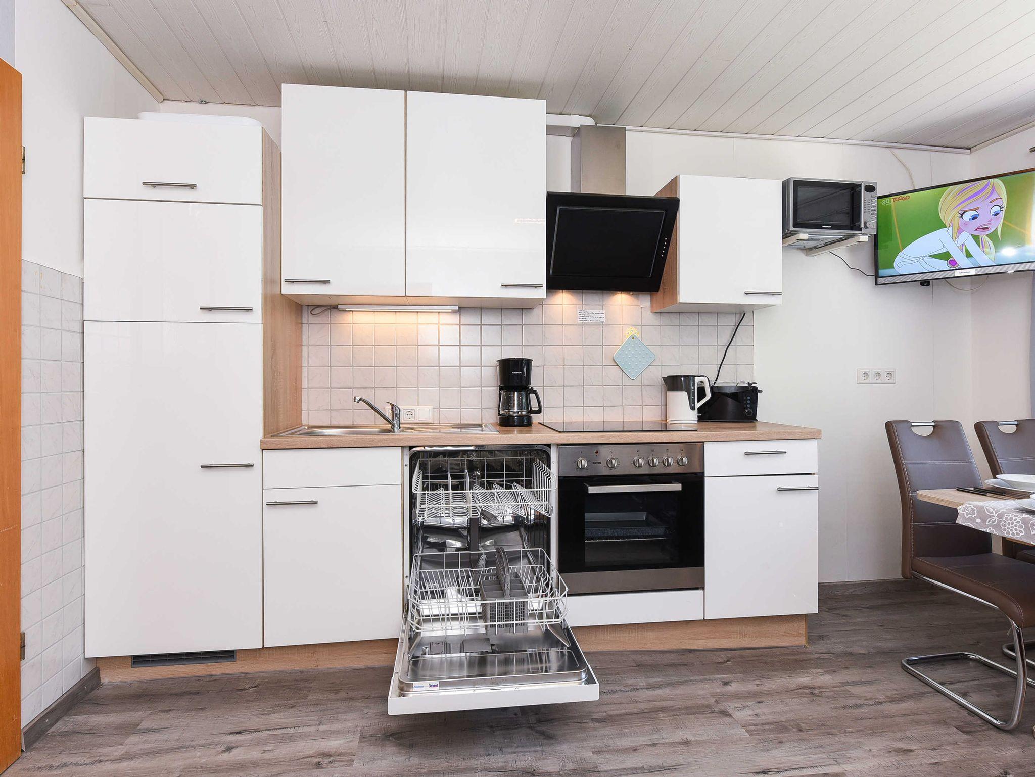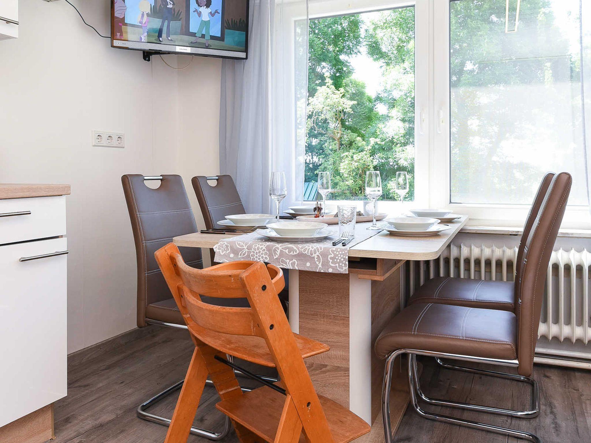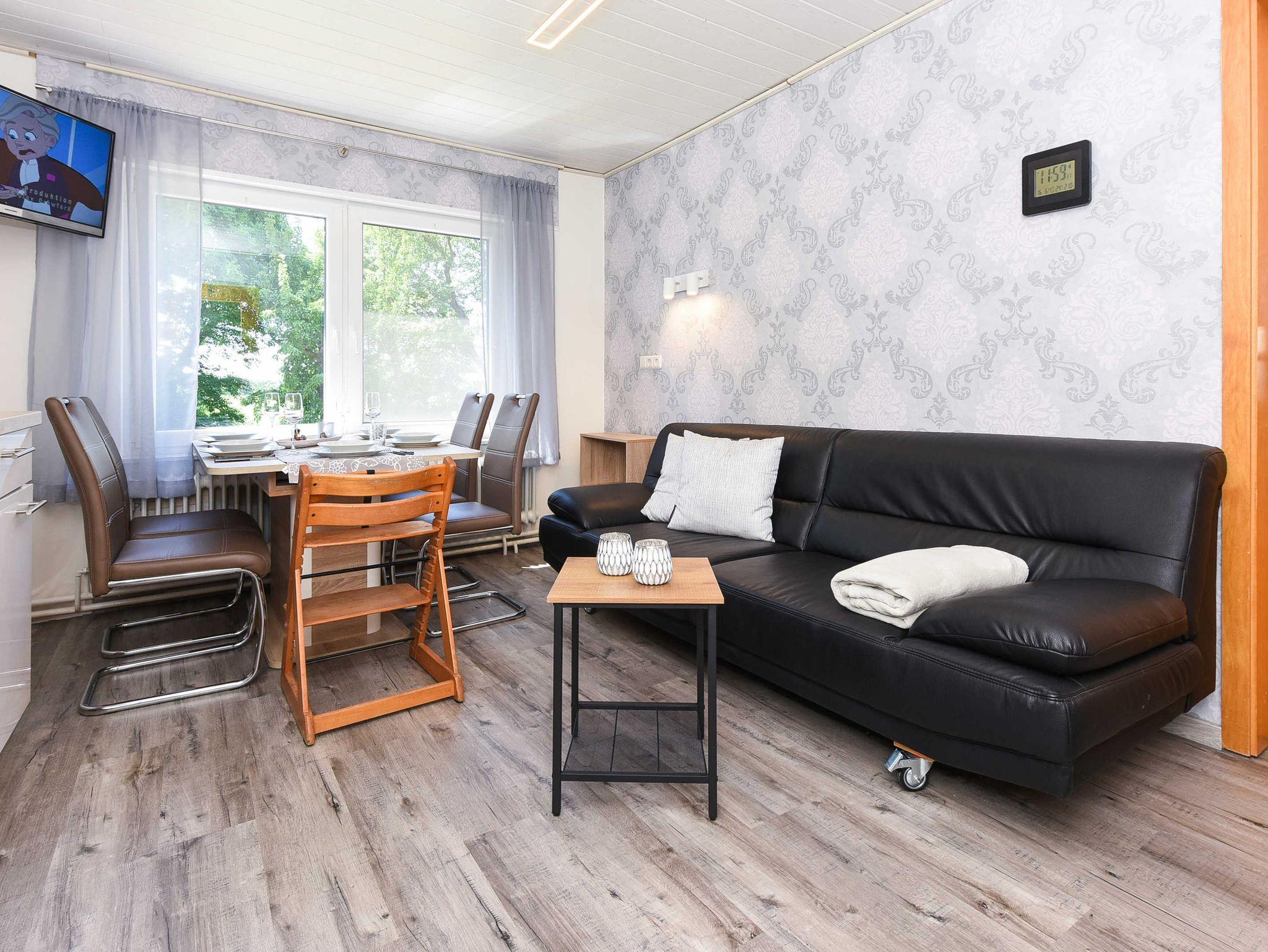 Größe ca. 35 Quadratmeter, Wohnraum mit integrierter Küche, Schlafzimmer, Kinderzimmer, Badezimmer mit Dusche, Waschtisch und WC, Obergeschoss, Internetzugang über WLAN möglich, optimal für 2 bis 4 Personen und zusätzlich ein Kleinkind.
