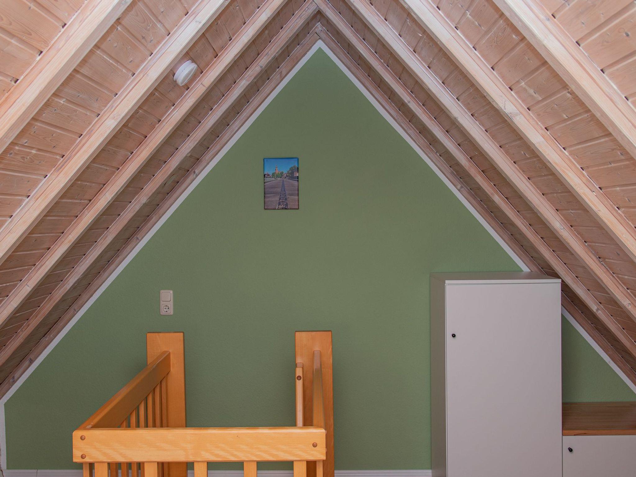 und WC. Im Dachgeschoss befinden sich ein weiterer Raum mit zwei Einzelbellen ( Hier möchten wir auf eine etwas steilere Treppe hinweisen). Separates zweites WC im Erdgeschoss . Terrasse