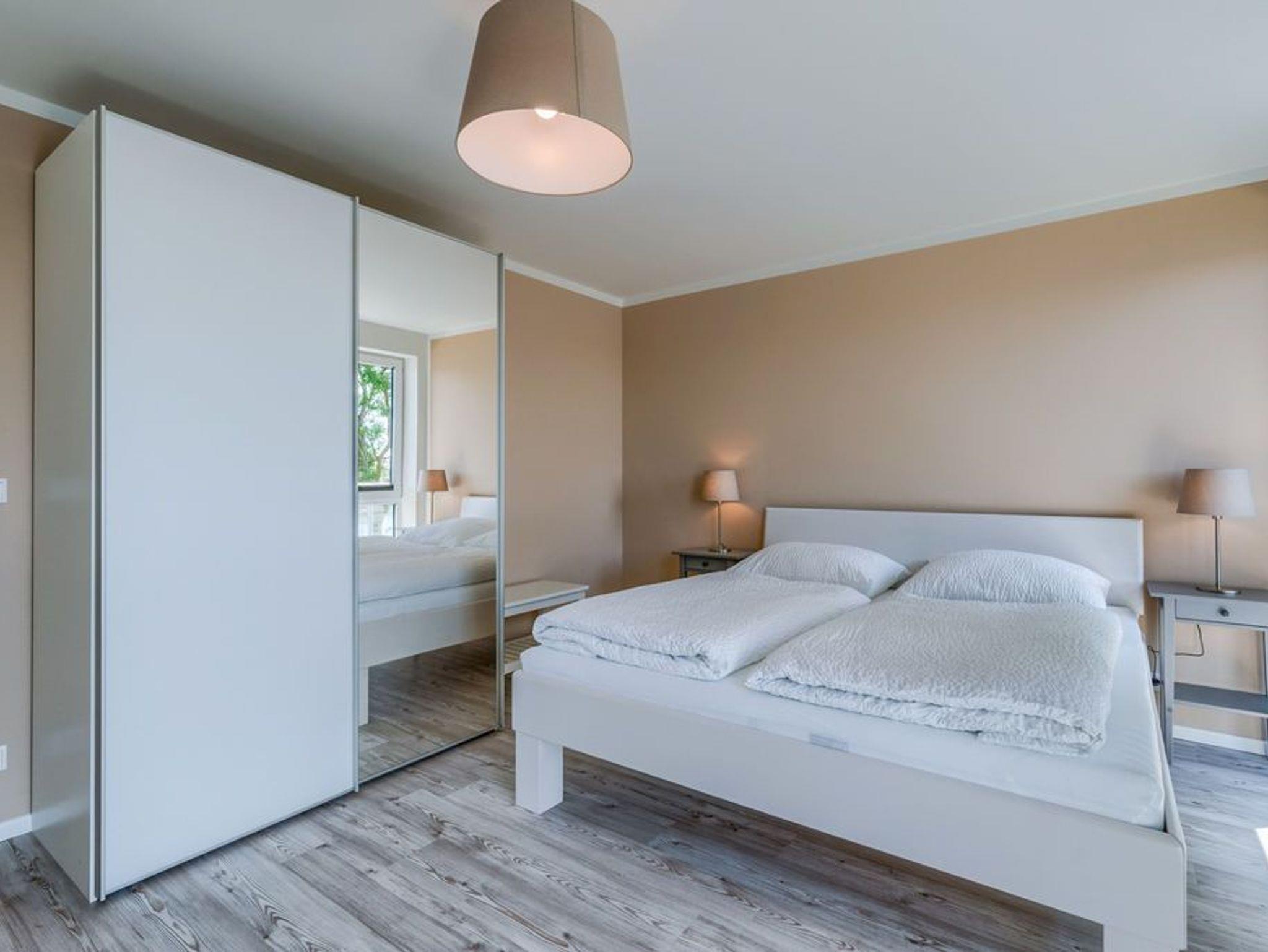 Mit viel Liebe zum Detail ist in der Raumgestaltung das Thema ?Strandblick? aufgenommen worden. So sind die beiden Schlafräume an den rückwärtigen Wänden im warmen Sandton gehalten und vermitteln in Kombination mit den dunklen Sitzmöbeln ein angenehmes Gefühl der Geborgenheit.