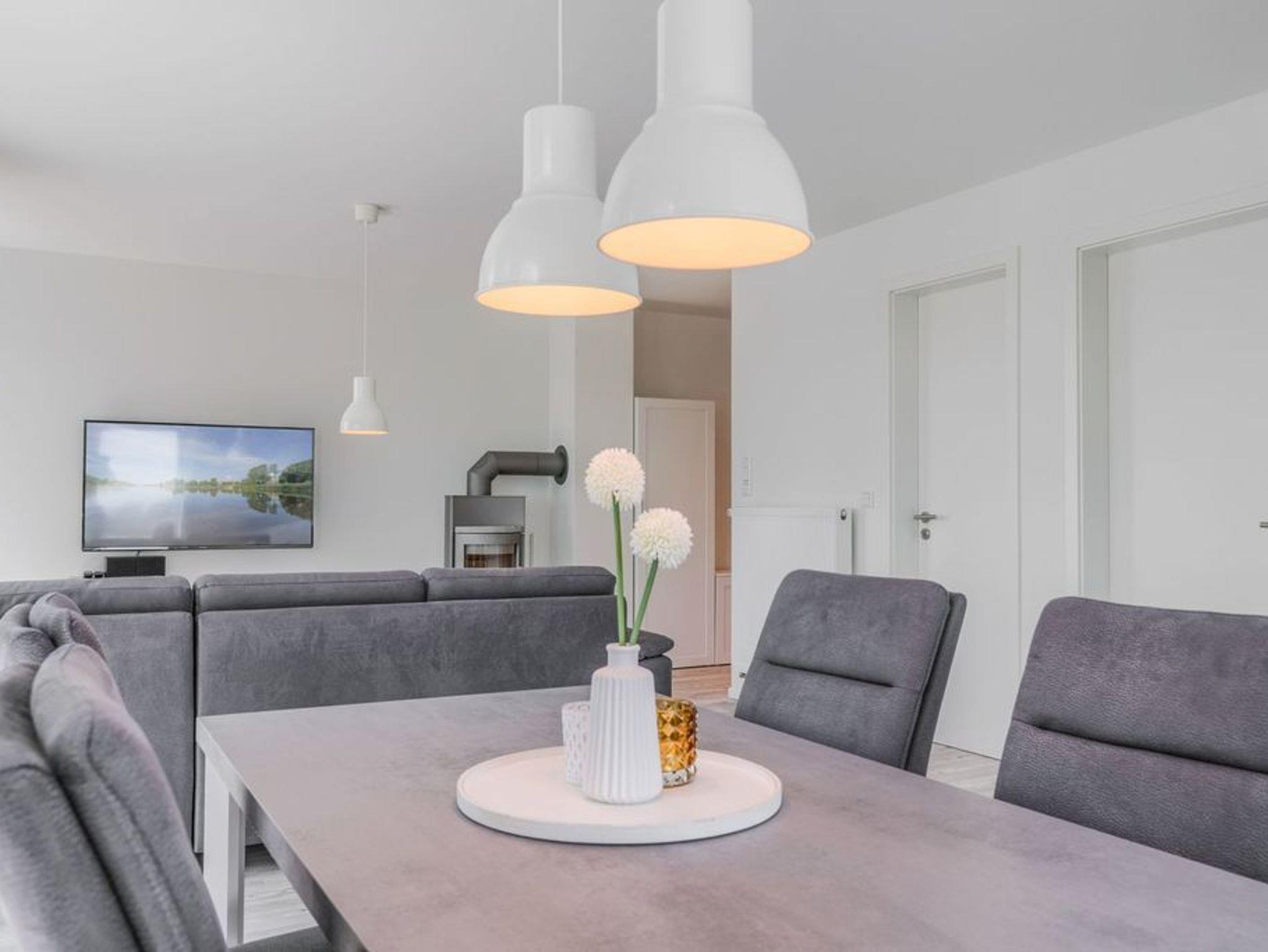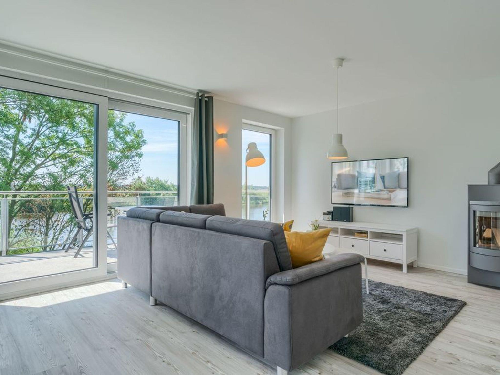 Die Ferienwohnung Auszeit in Tielen bietet eine ruhige Auszeit mit Seeblick, Kamin und Balkon zum Entspannen.