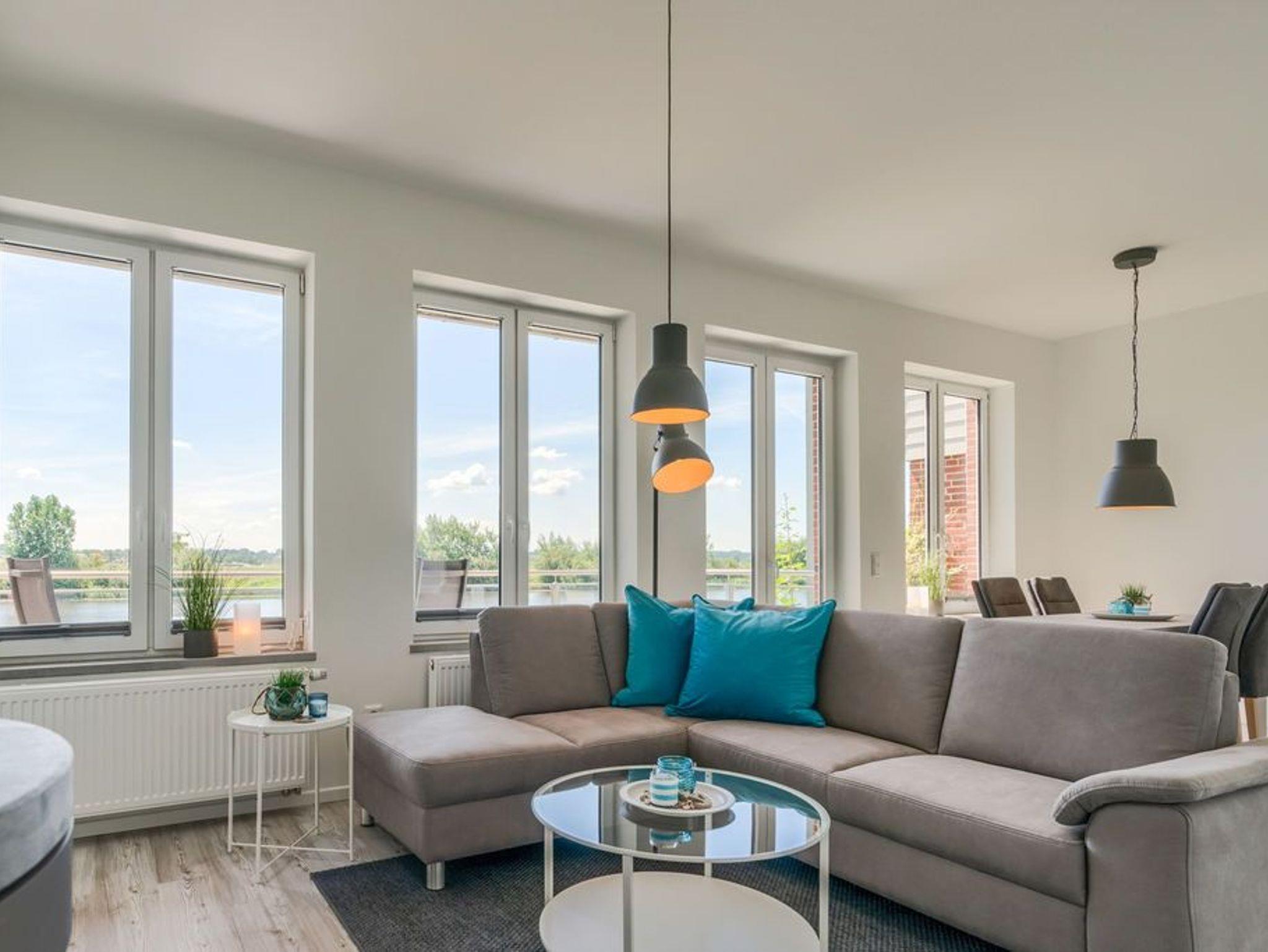 Die Ferienwohnung Ankerplatz in Tielen bietet modernen Komfort mit Blick auf die Eider und lädt zum Entspannen ein.