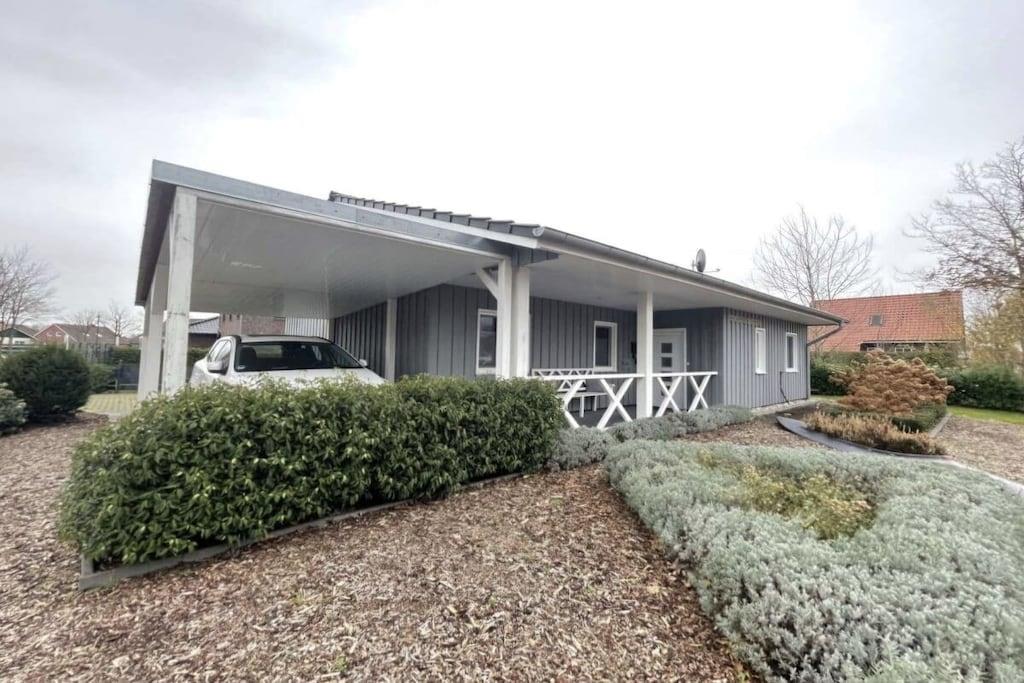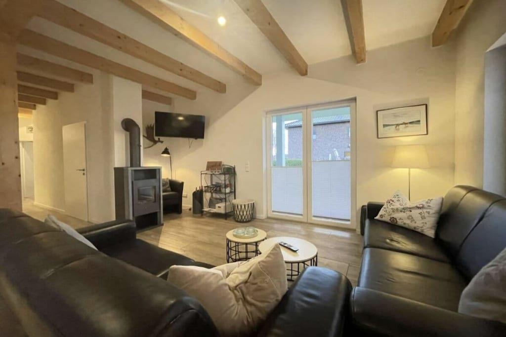 Modernes Ferienhaus im skandinavischen Stil nahe Timmeler Meer mit großem Garten und Kamin.