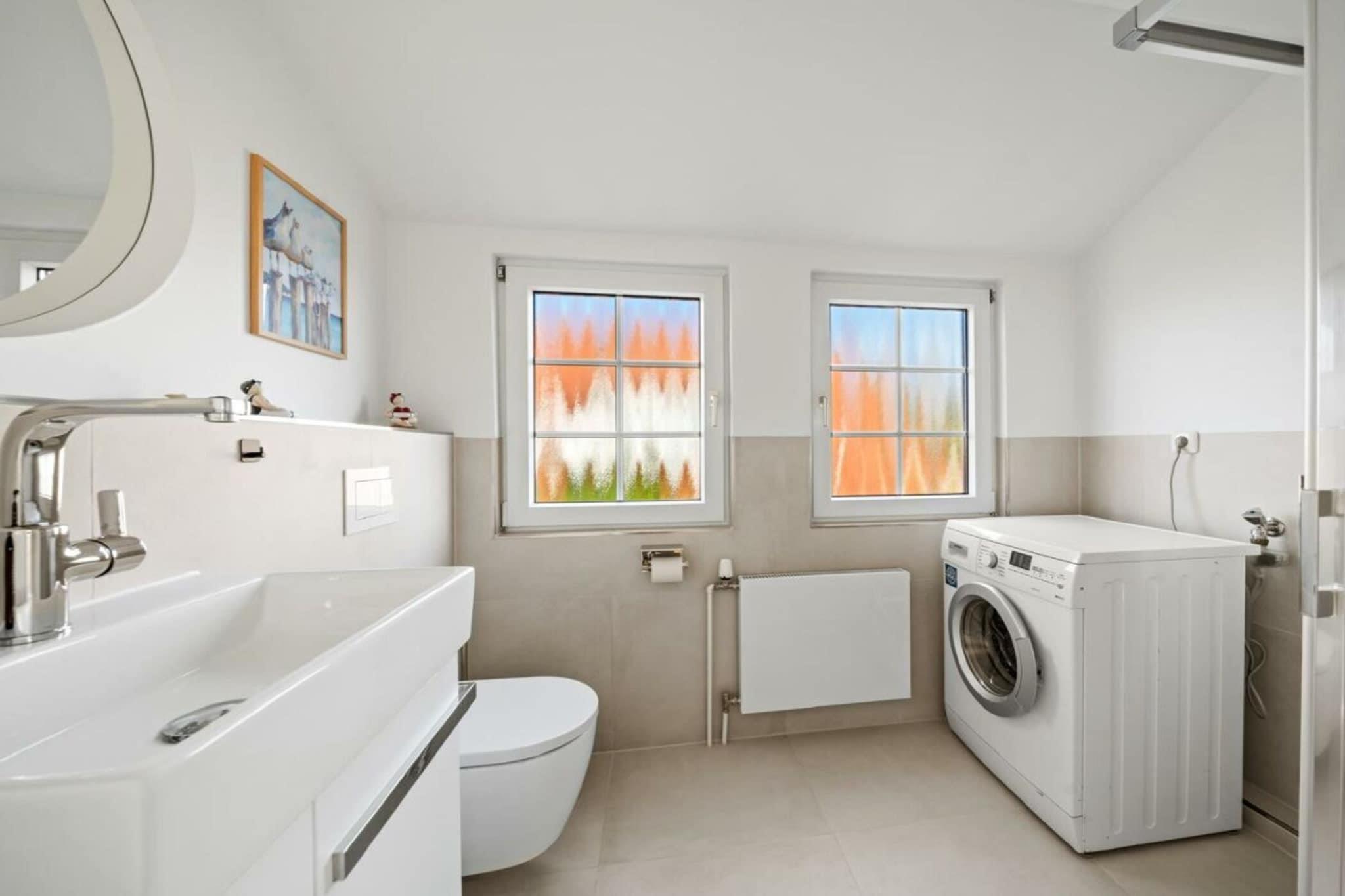 Parterre: (Eingangshalle(, , Heizung), Wohnzimmer(, , TV, Heizung), Küche(, Kochnische, Esstisch, Kochplatte, Wasserkocher, Toaster, Kaffeemaschine, Backofen, Mikrowelle, Spülmaschine, Kühlschrank, Tiefkühlschrank, Heizung), Badezimmer(, Toilette, Dusche, Waschbecken, Heizung, Föhn)) In der 1. Etage: (Schlafzimmer(, Doppelbett, TV, Heizung), Schlafzimmer(, Doppelbett, TV, Heizung, Klimaanlage), Badezimmer(, Toilette, Dusche, Waschbecken, Waschmaschine, Heizung)) Boot: , , , , , Internet, Internet, Erste-Hilfe-Station, Trockner, Waschmaschine, Heizung, Terrasse(Grill, Gartenmöbel, Liegen, Markise), Parkplatz, Fahrräder verfügbar, Bügelbrett, Bügeleisen