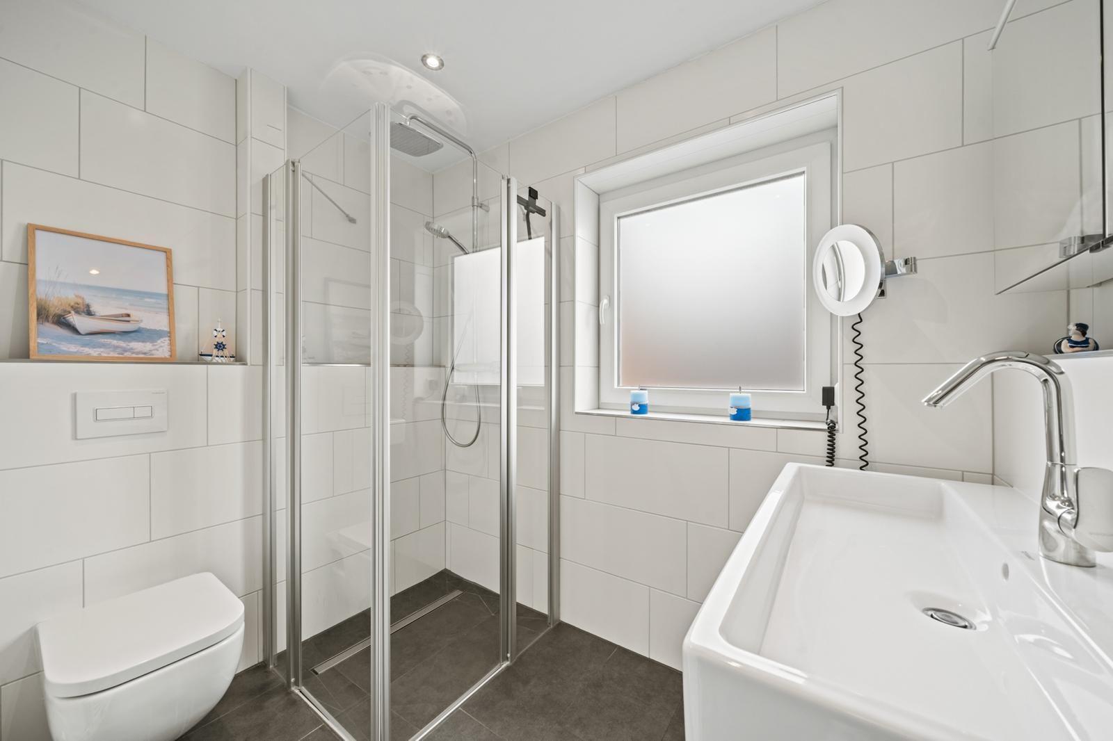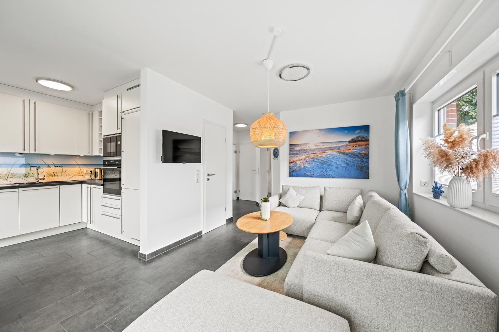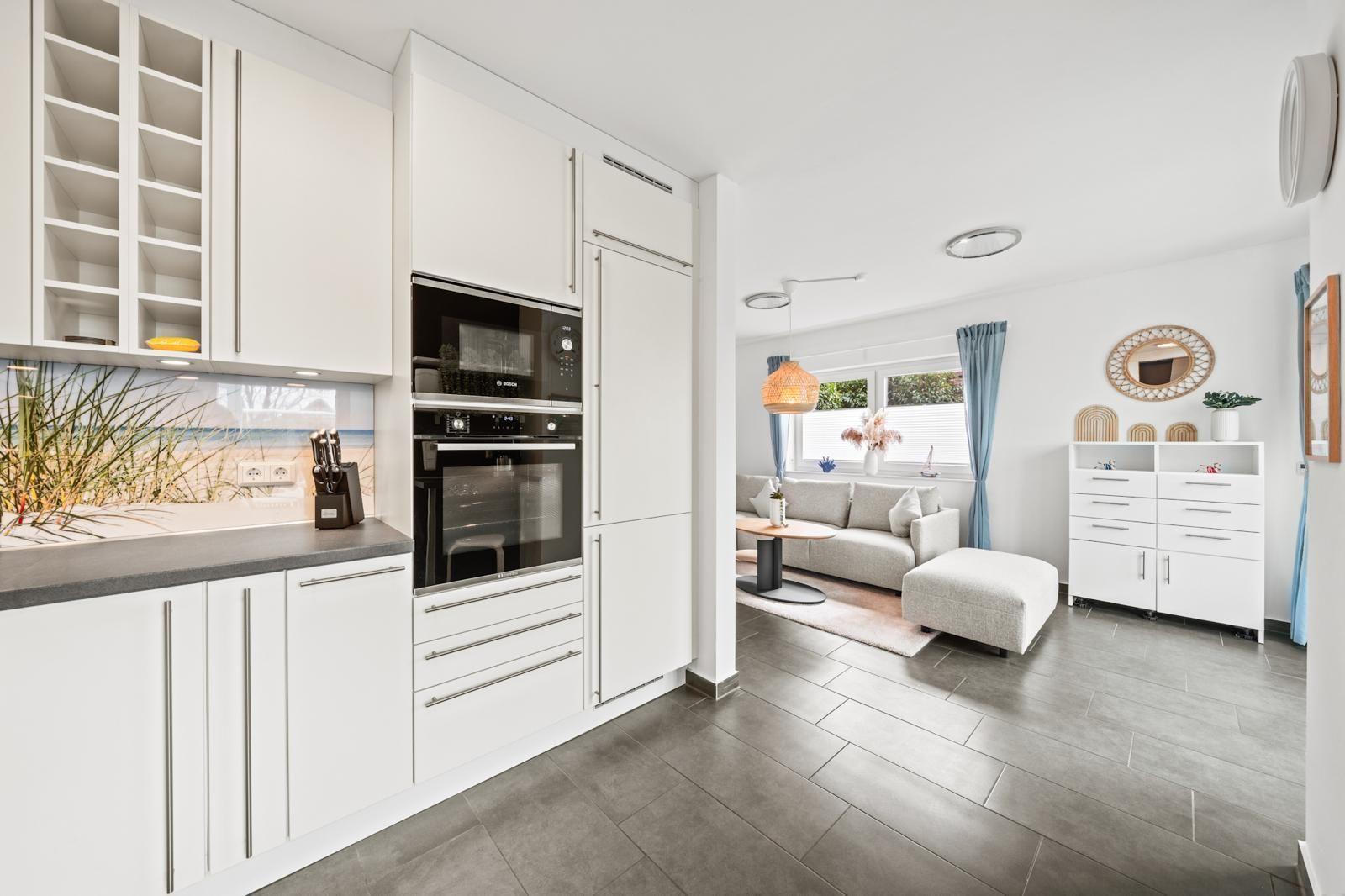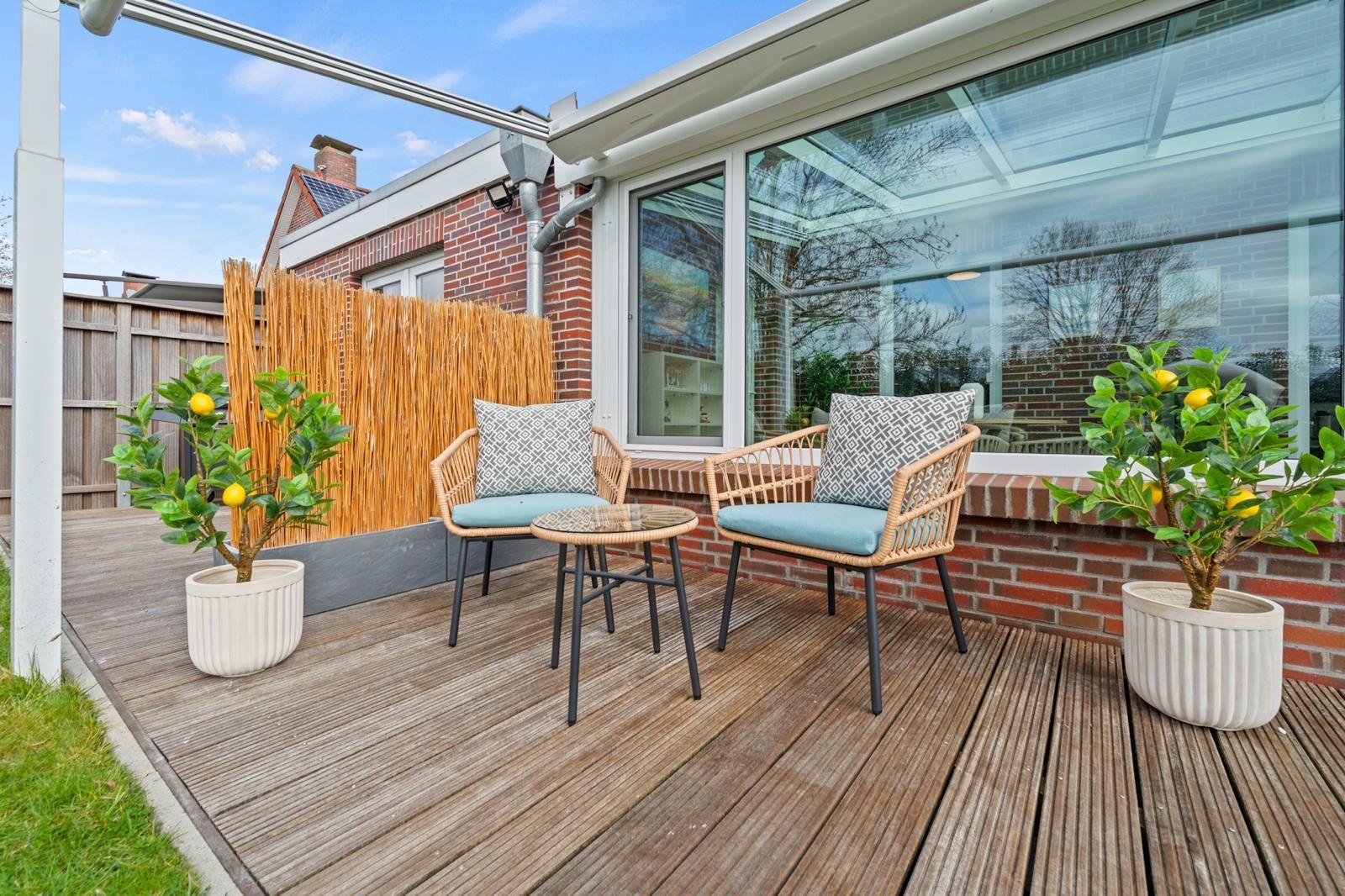 Das Innere des Ferienhauses bietet auf 105?m² ein modernes und gleichzeitig gemütliches Ambiente. Zwei Schlafzimmer und zwei Bäder sorgen für ausreichend Privatsphäre, während die hochwertig ausgestattete Küche keine Wünsche offenlässt. Ein besonderes Highlight ist der gemütliche Wohnbereich, der nahtlos in einen Wintergarten und die anliegende Terrasse übergeht, was einen einladenden Raum zum Entspannen und Zusammensein schafft.