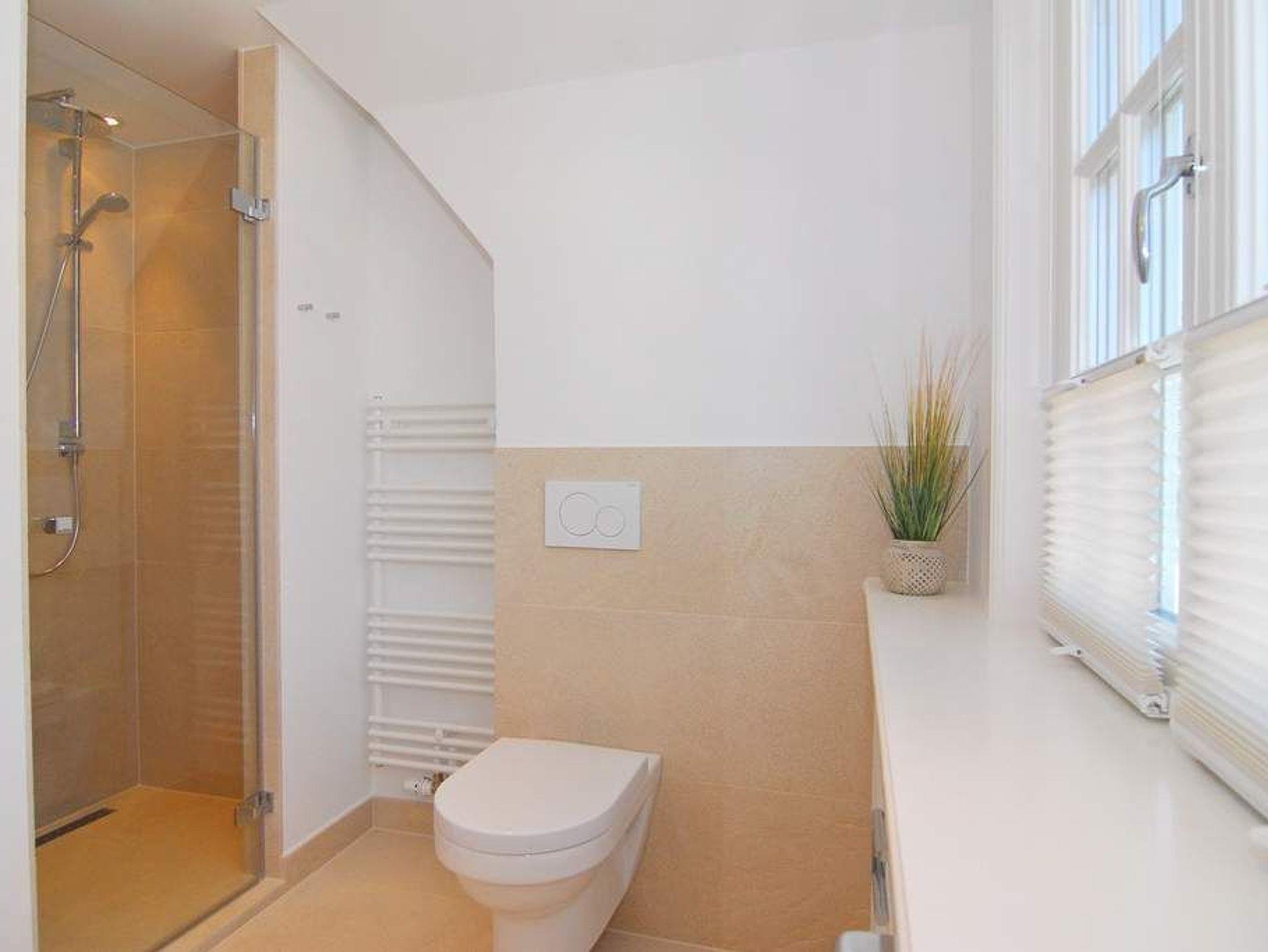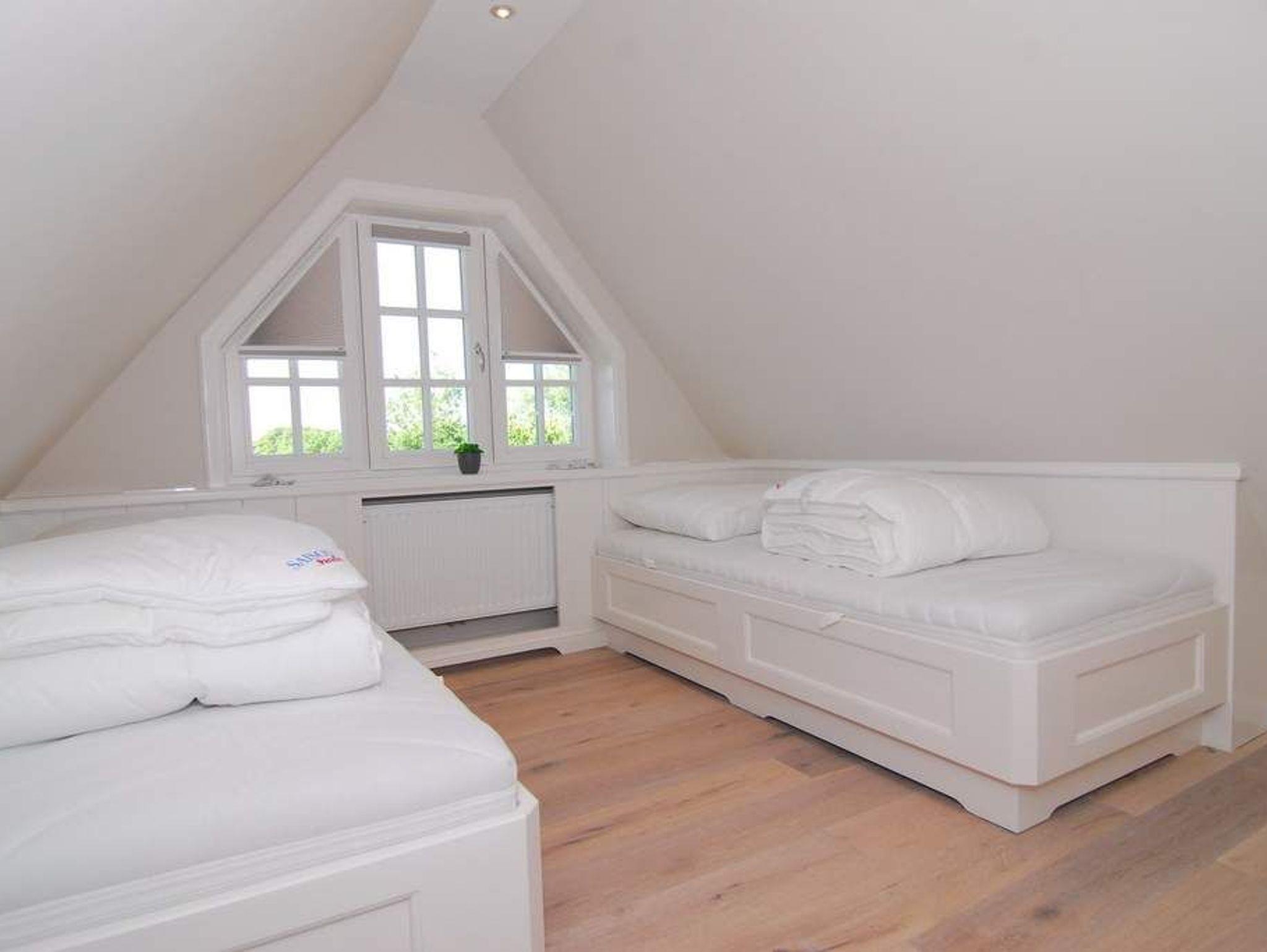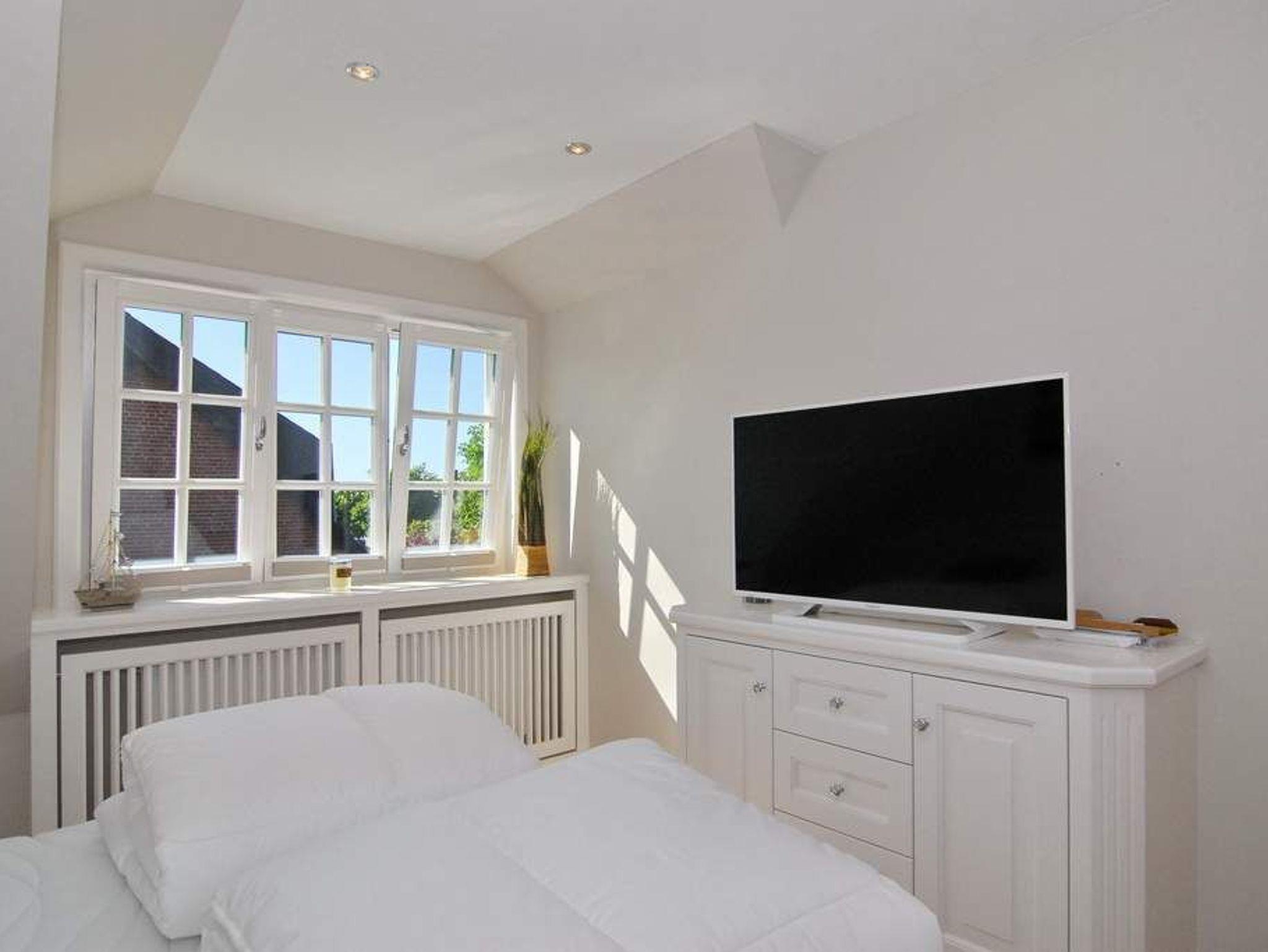Exklusives Ferienhaus (Haushälfte) im Friesenstil, ca. 115 m², Nichtraucher! EG: Wohnraum mit Sitz- und Essbereich, Flat-TV und Stereoanlage, Blue Ray Player, offene Einbauküche mit Geschirrspüler, Mikrowelle und Backofen, Westterrasse mit Gartenmöbeln, Gäste/WC. Abstellraum mit Waschmaschine / Trockner. OG: 1 Schlafzimmer mit Doppelbett und angrenzendes Duschbad/WC, 1 Schlafzimmer mit Doppelbett, Duschbad/WC. DG: 1 Schlafzimmer mit 2 Einzelbetten. PKW-Stellplatz am Haus. Tierhaltung gestattet (kostenpflichtig). Bettwäsche und Handtücher sind zur Anreise aufgezogen.