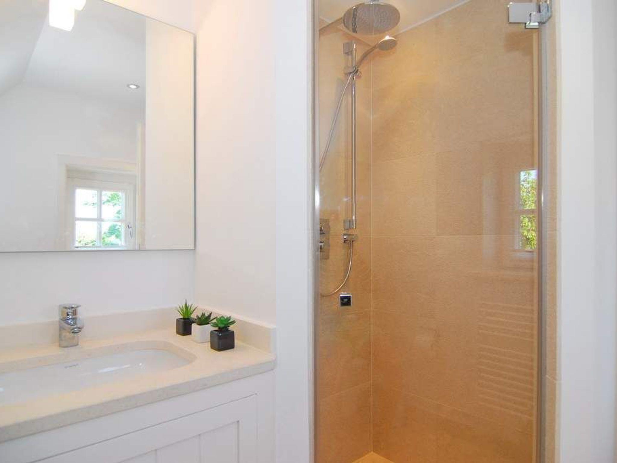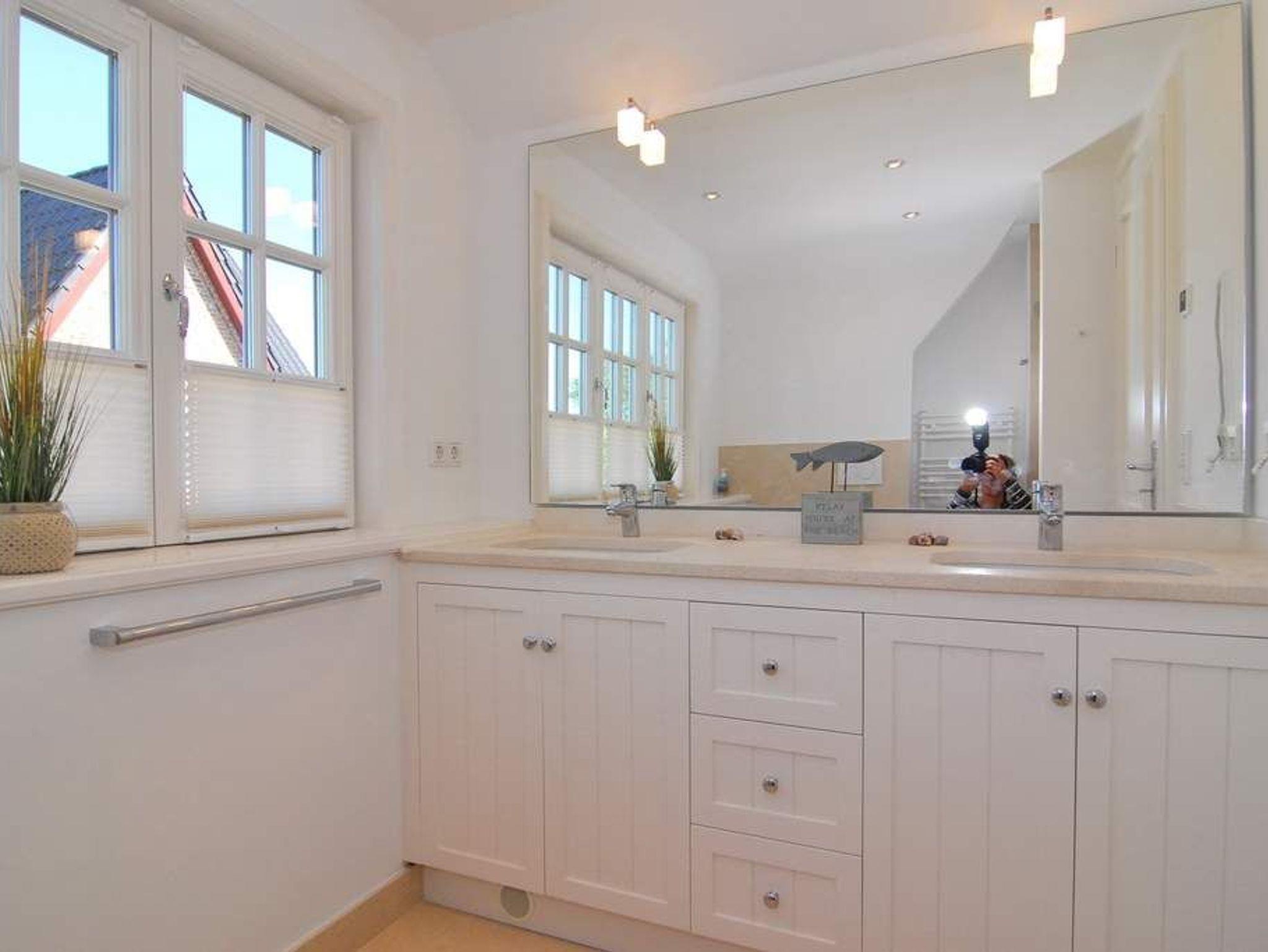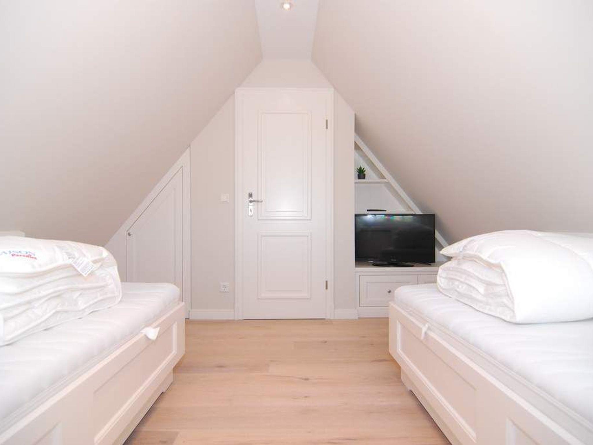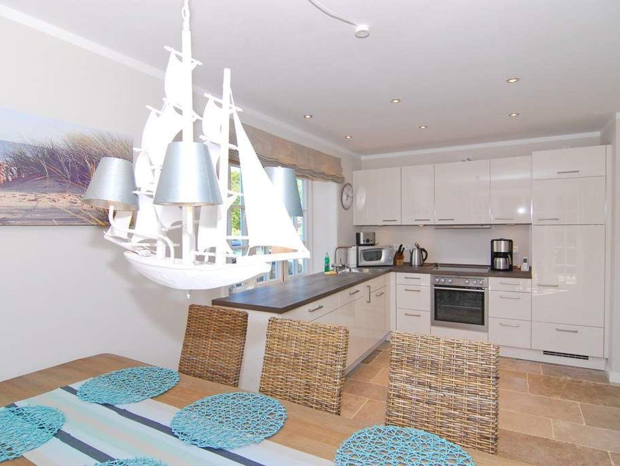 Exklusives Ferienhaus (Haushälfte) im Friesenstil, ca. 115 m², Nichtraucher! EG: Wohnraum mit Sitz- und Essbereich, Flat-TV und Stereoanlage, Blue Ray Player, offene Einbauküche mit Geschirrspüler, Mikrowelle und Backofen, Westterrasse mit Gartenmöbeln, Gäste/WC. Abstellraum mit Waschmaschine / Trockner. OG: 1 Schlafzimmer mit Doppelbett und angrenzendes Duschbad/WC, 1 Schlafzimmer mit Doppelbett, Duschbad/WC. DG: 1 Schlafzimmer mit 2 Einzelbetten. PKW-Stellplatz am Haus. Tierhaltung gestattet (kostenpflichtig). Bettwäsche und Handtücher sind zur Anreise aufgezogen.