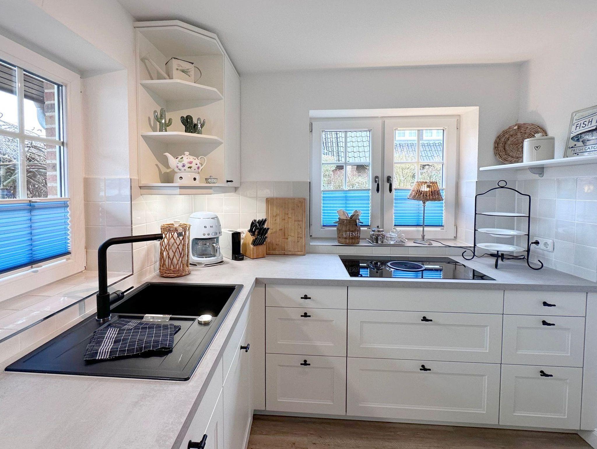 komplett ebenerdige Ferienwohnung in ruhiger Ortsrandlage nahe der Tinnumer Wiesen. Die Wohnung verfügt über ein Wohnzimmer mit Zugang zur separaten Küche ( neu seit März 2025 ), 2 Schlafzimmer mit Doppelbetten, Kleiderschrank und Verdunklungsrollos, ein Duschbad/WC ( Fußbodenheizung ), und einem PKW-Stellplatz auf dem Grundstück. Der abgeschlossener Garten ist eingewachsenen, die Terrasse ist in westlicher Ausrichtung und verfügt neben gemütlichen Loungemöbeln auch über einen Strandkorb.