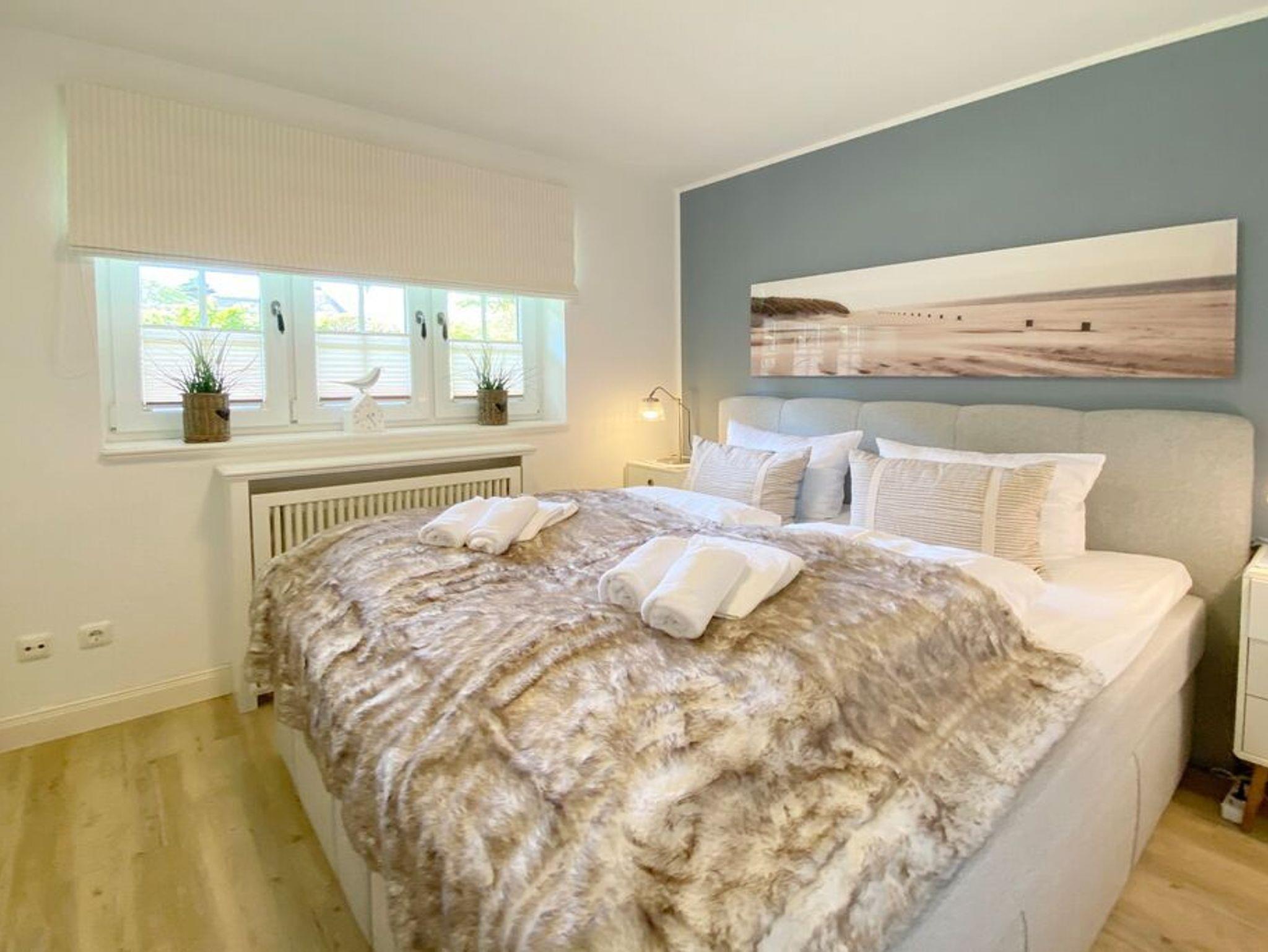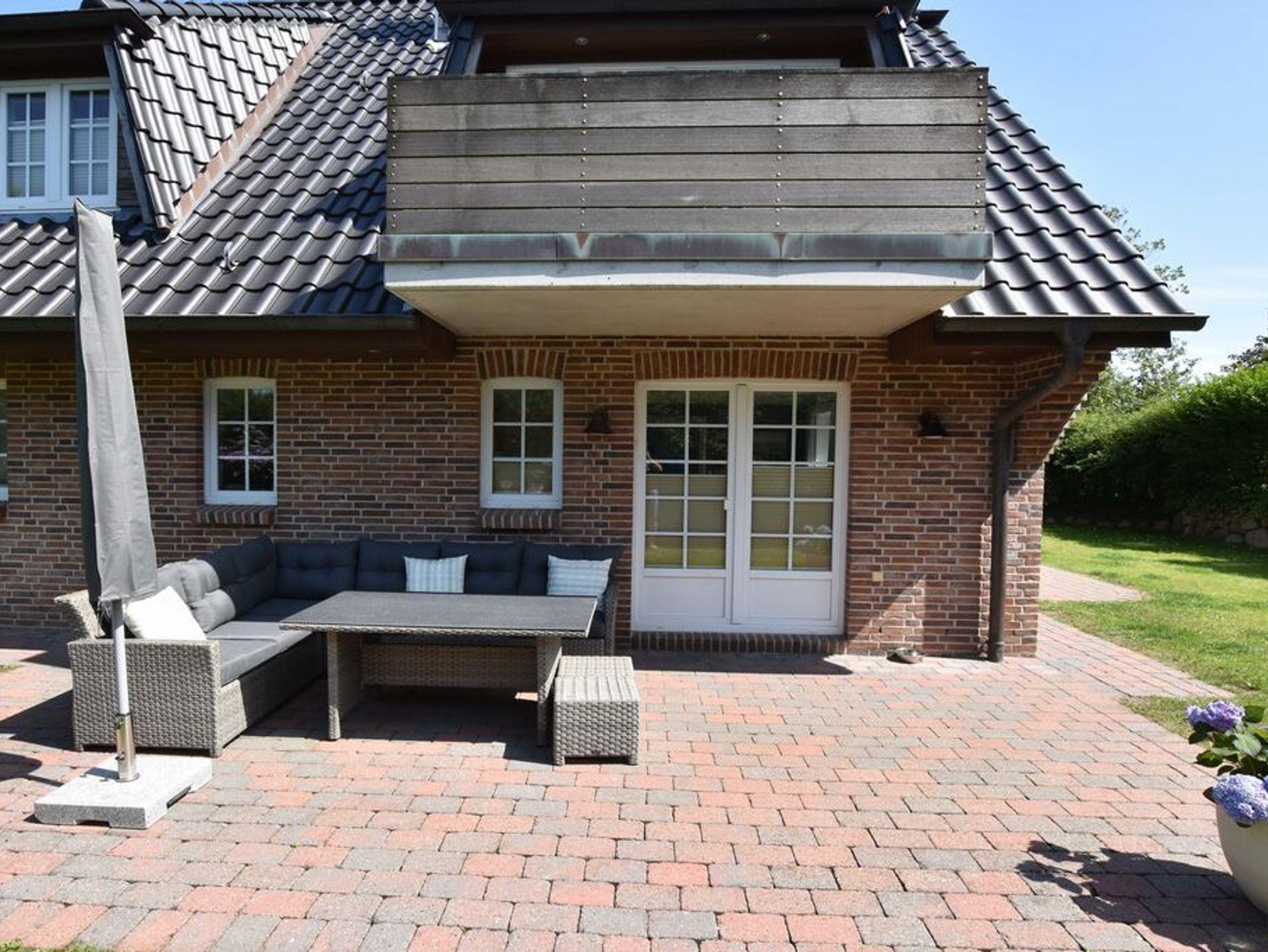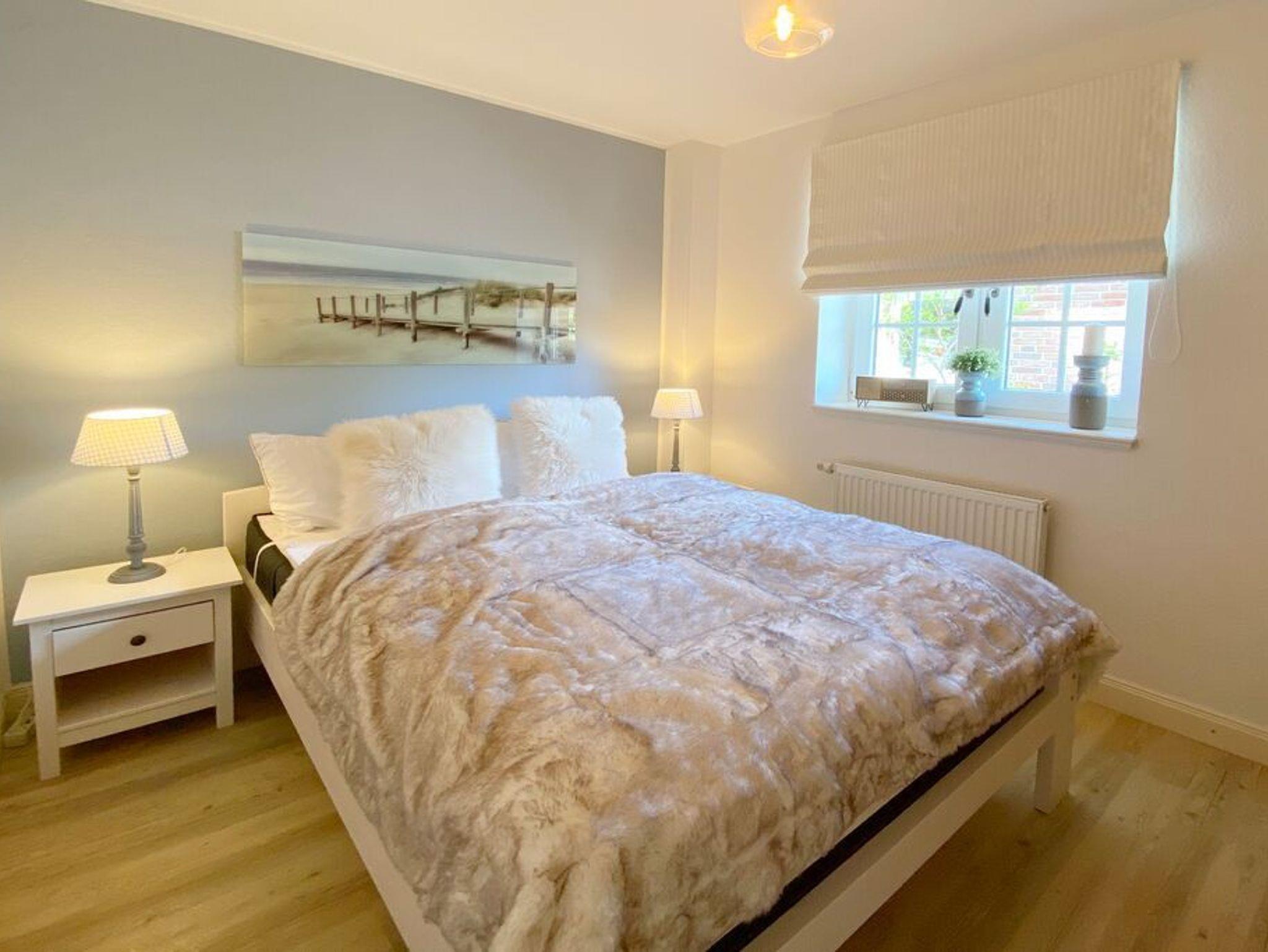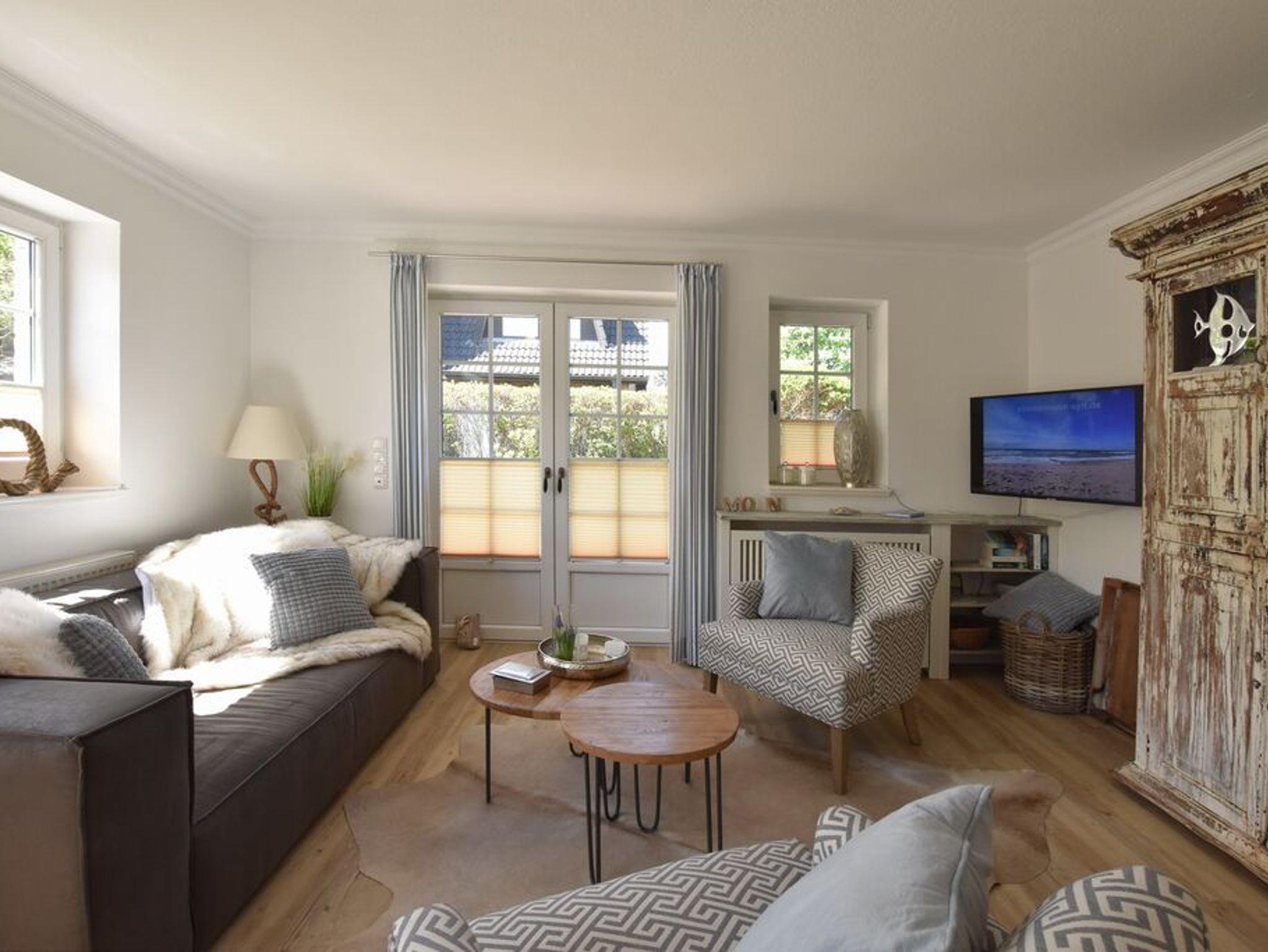 Komfortable ebenerdige Ferienwohnung in ruhiger Lage nahe Tinnumer Wiesen mit Terrasse und Strandkorb.