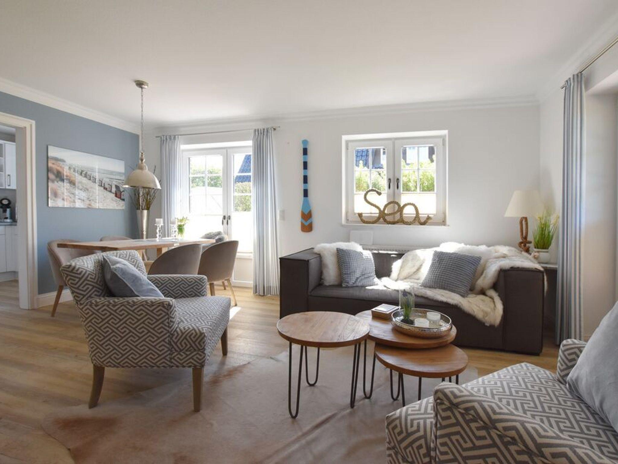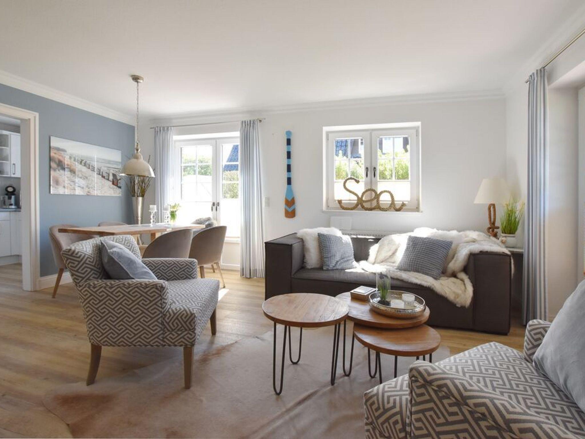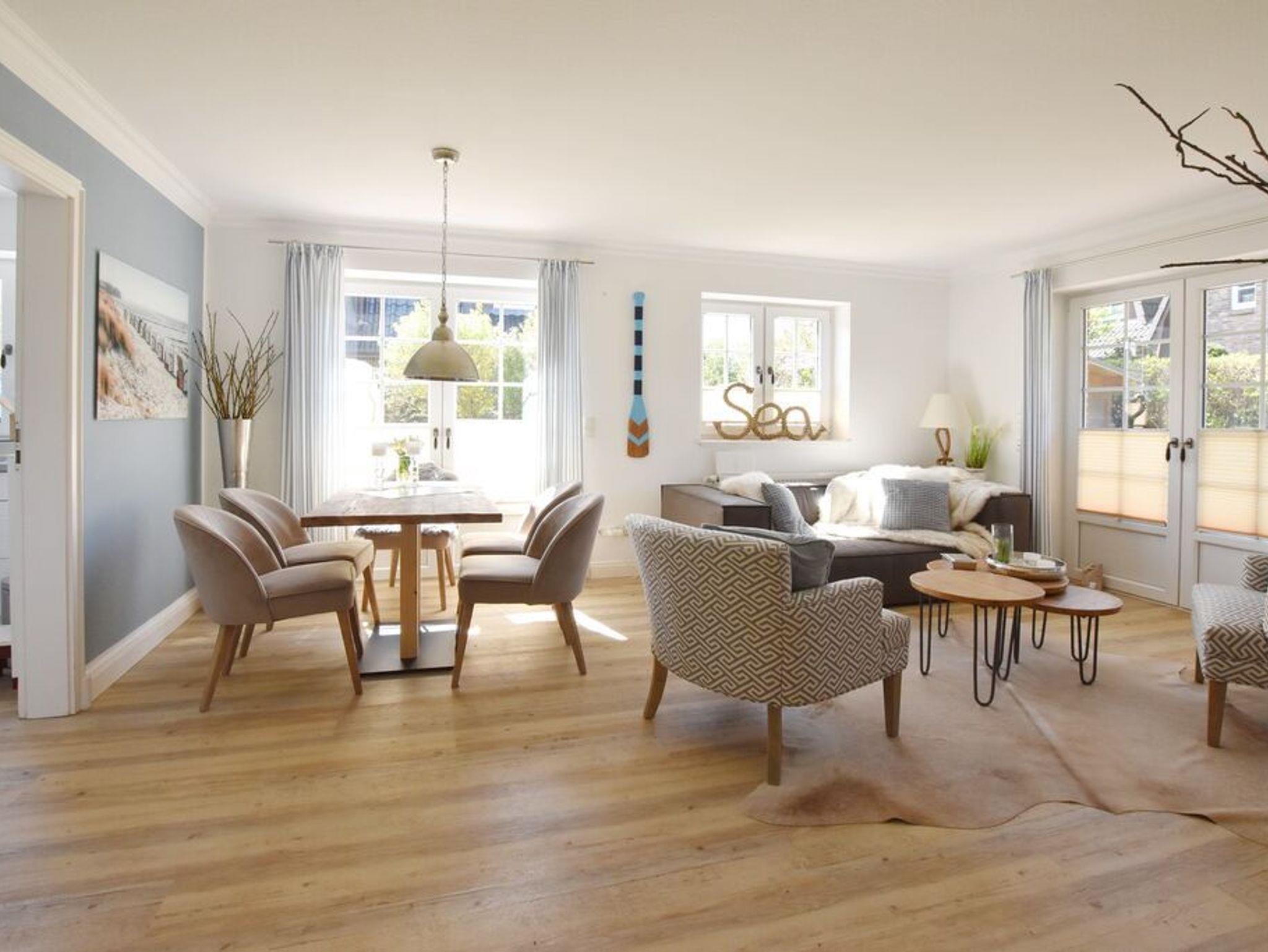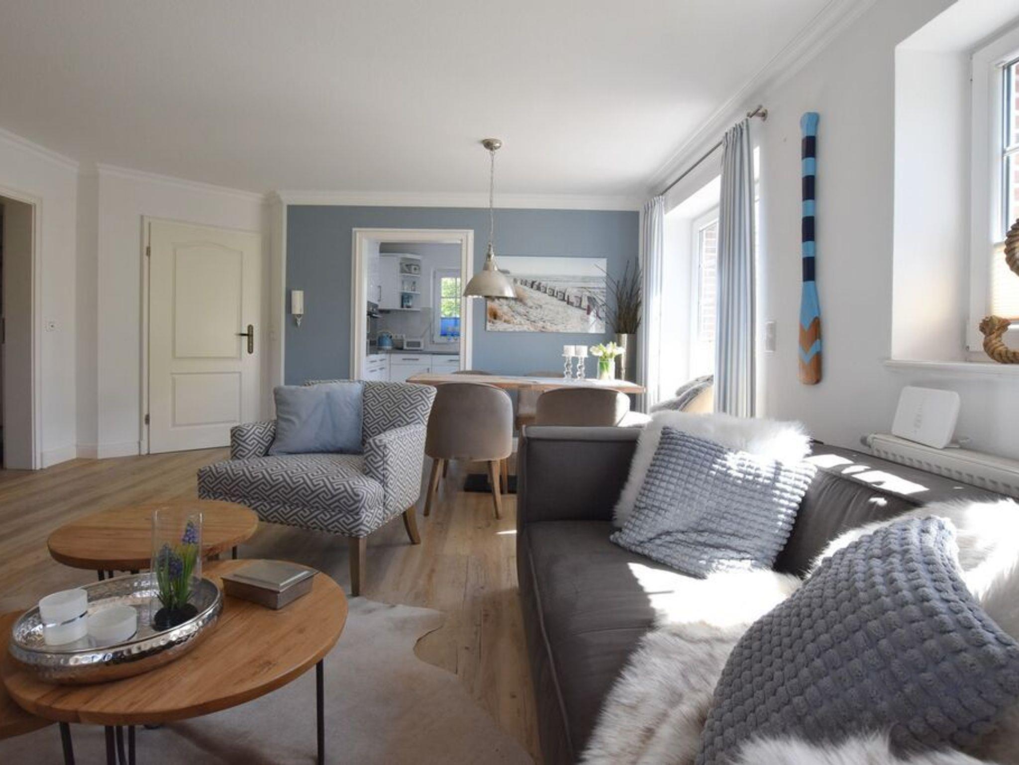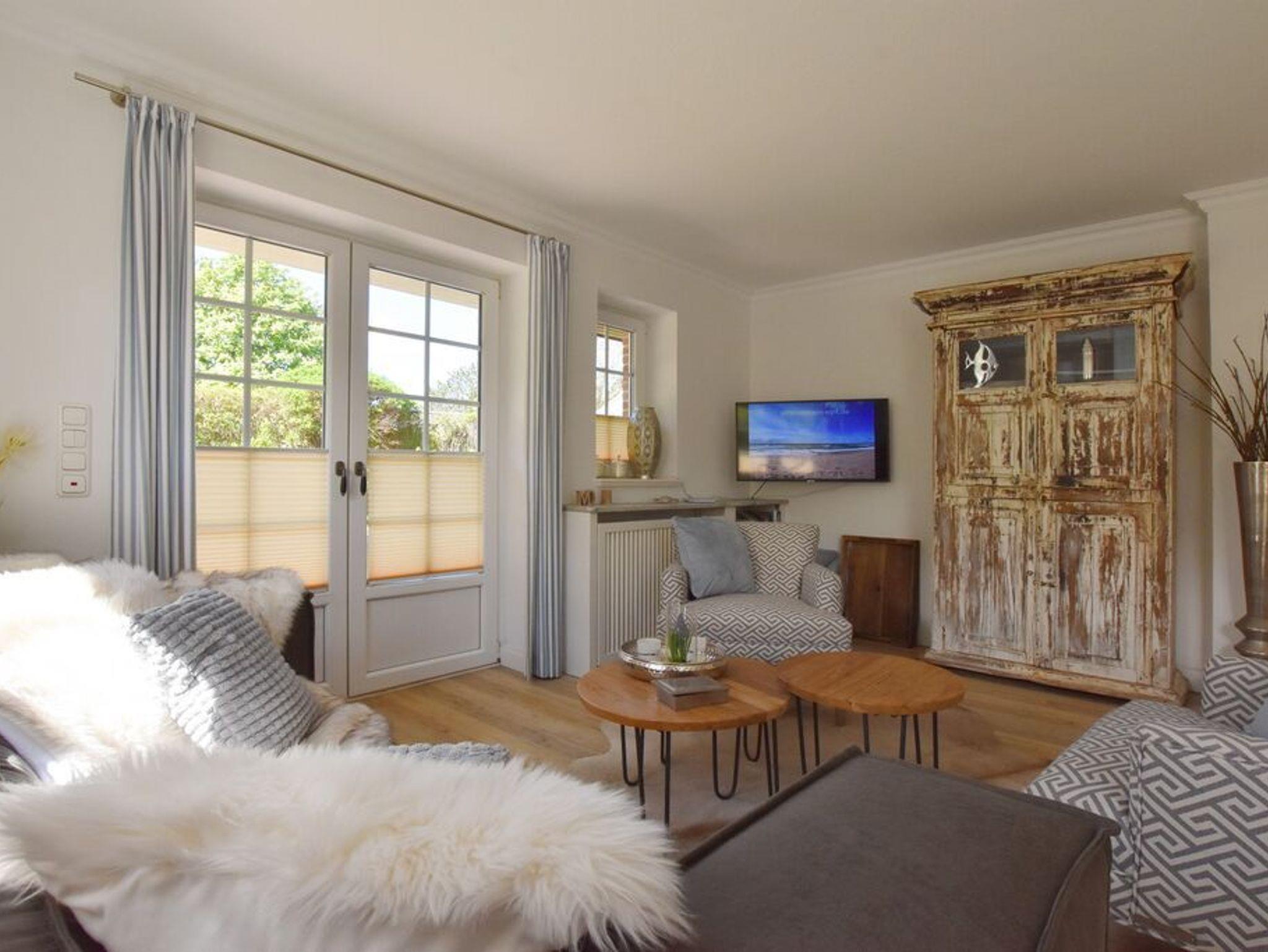 Komfortable ebenerdige Ferienwohnung in ruhiger Lage nahe Tinnumer Wiesen mit Terrasse und Strandkorb.