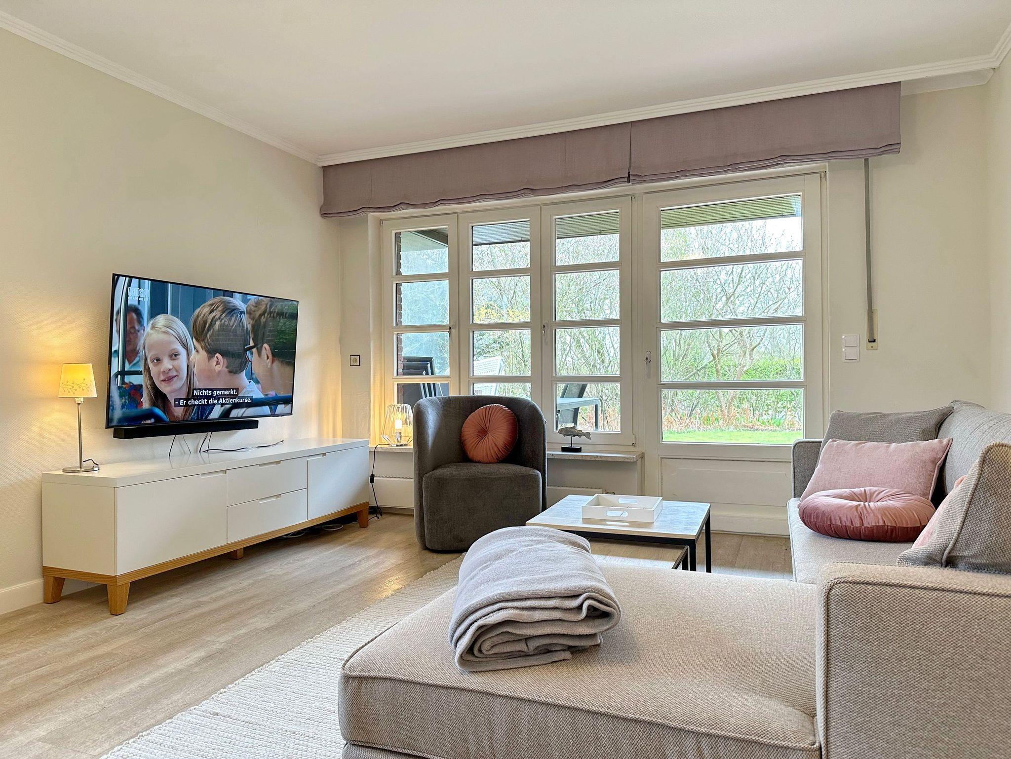 Modernes 3-Zimmer-Apartment Sinfonie auf Sylt mit Sauna, Schwimmbad und eigenem Garten für erholsame Ferien.