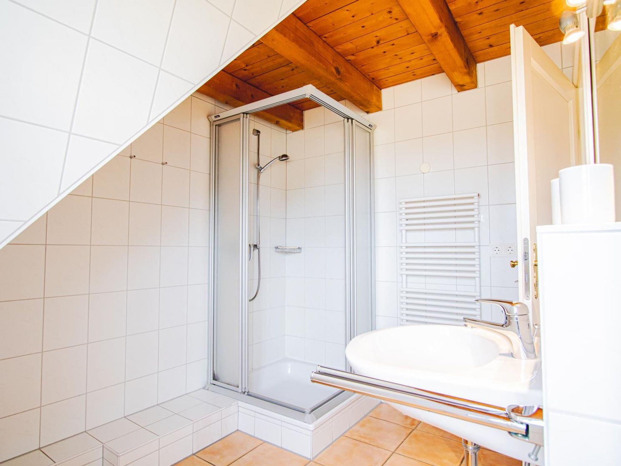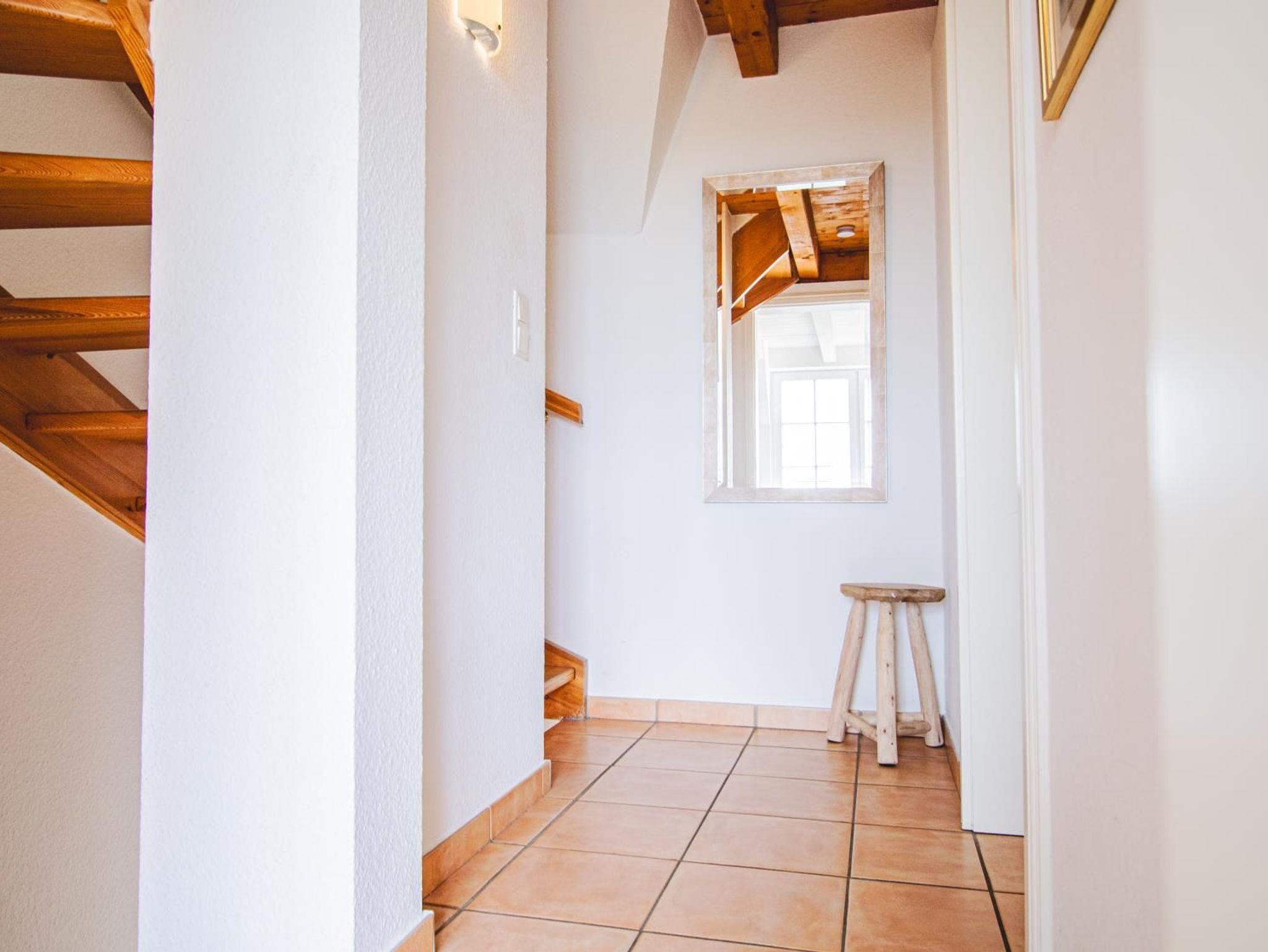 Im Wohnzimmer, dem ein kleiner Südbalkon, mit Blick zur Tinnumburg, vorgelagert ist, steht eine gemütliche Sitzgarnitur und der Essplatz . Die offene Küche ist u. a. mit einem Geschirrspüler ausgestattet. Das Schlafzimmer, mit Doppelbett und einem breiten Bett in der Schräge (für Kinder) ,befindet sich im Dachgeschoss. Das geflieste, neue Bad, ist mit WC, Waschbecken und einer Dusche ausgestattet. Insgesamt eine gehobene und sehr gepflegte Ausstattung.