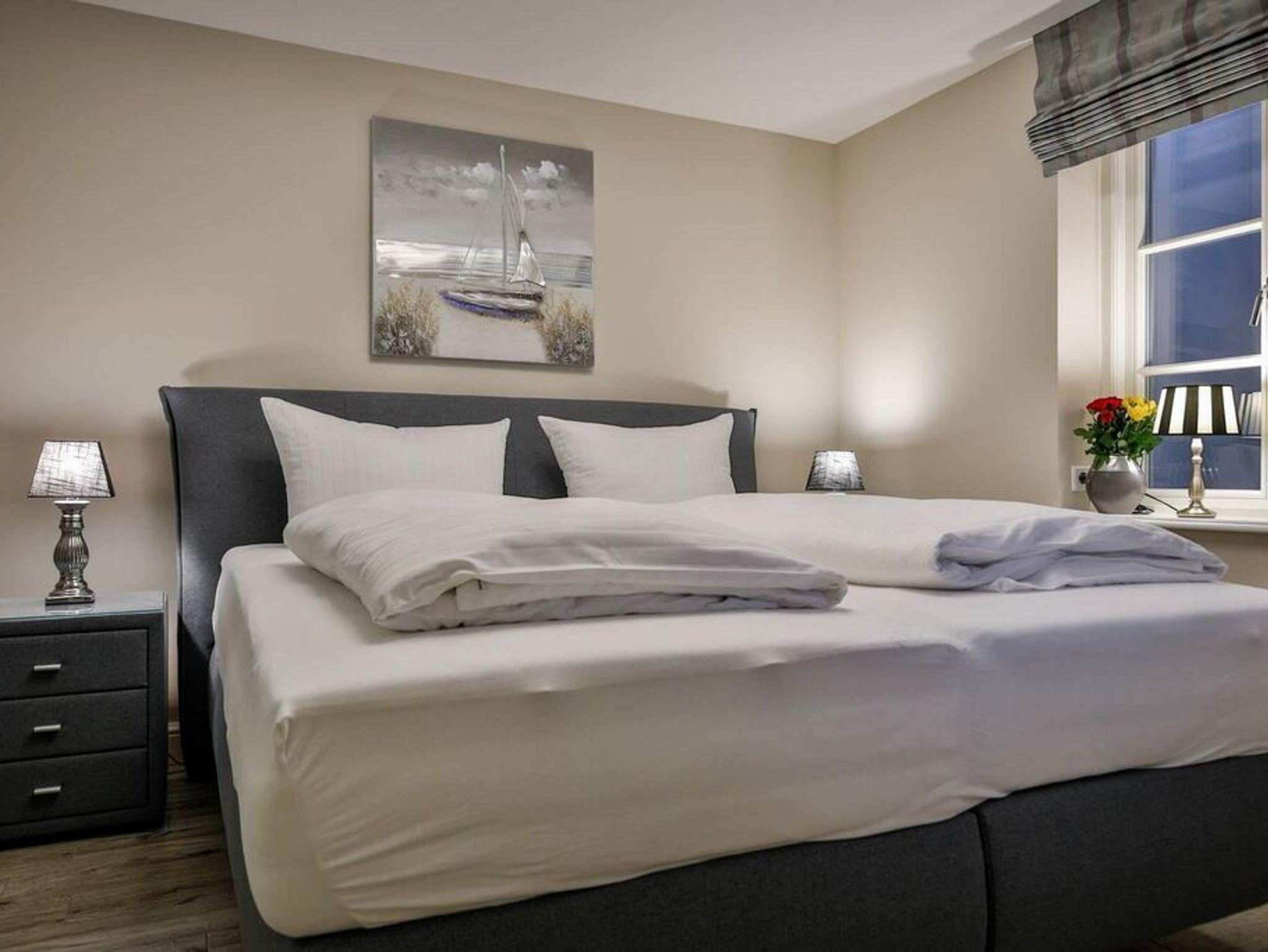 Im OG befinden sich zwei Schlafzimmer. Ein Schlafzimmer hat ein Boxspringbett, Smart-TV sowie ein Ankleidezimmer mit Schrank und Safe. Das andere hat ein Einzelbett, welches sich zum Doppelbett ausziehen lässt, ein Smart-TV, Kommodenschrank und Regal. Zudem befindet sich ein weiteres Duschbad/WC mit bodengleichem Abfluss, Waschtisch, beleuchteter Spiegel und Fön auf der Etage. Der Boden des ganzen Hauses ist gefliest und mit Fußbodenheizung ausgestattet. Ein PKW-Stellplatz auf dem Grundstück gehört ebenfalls dazu.