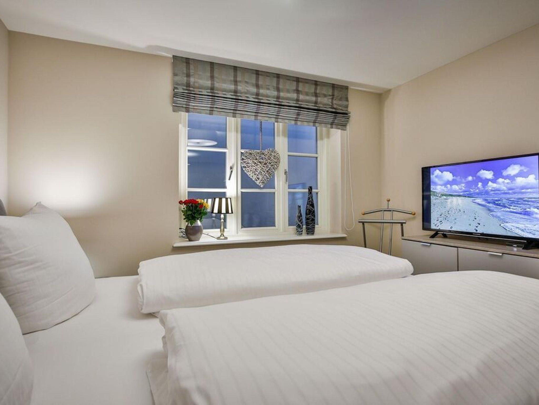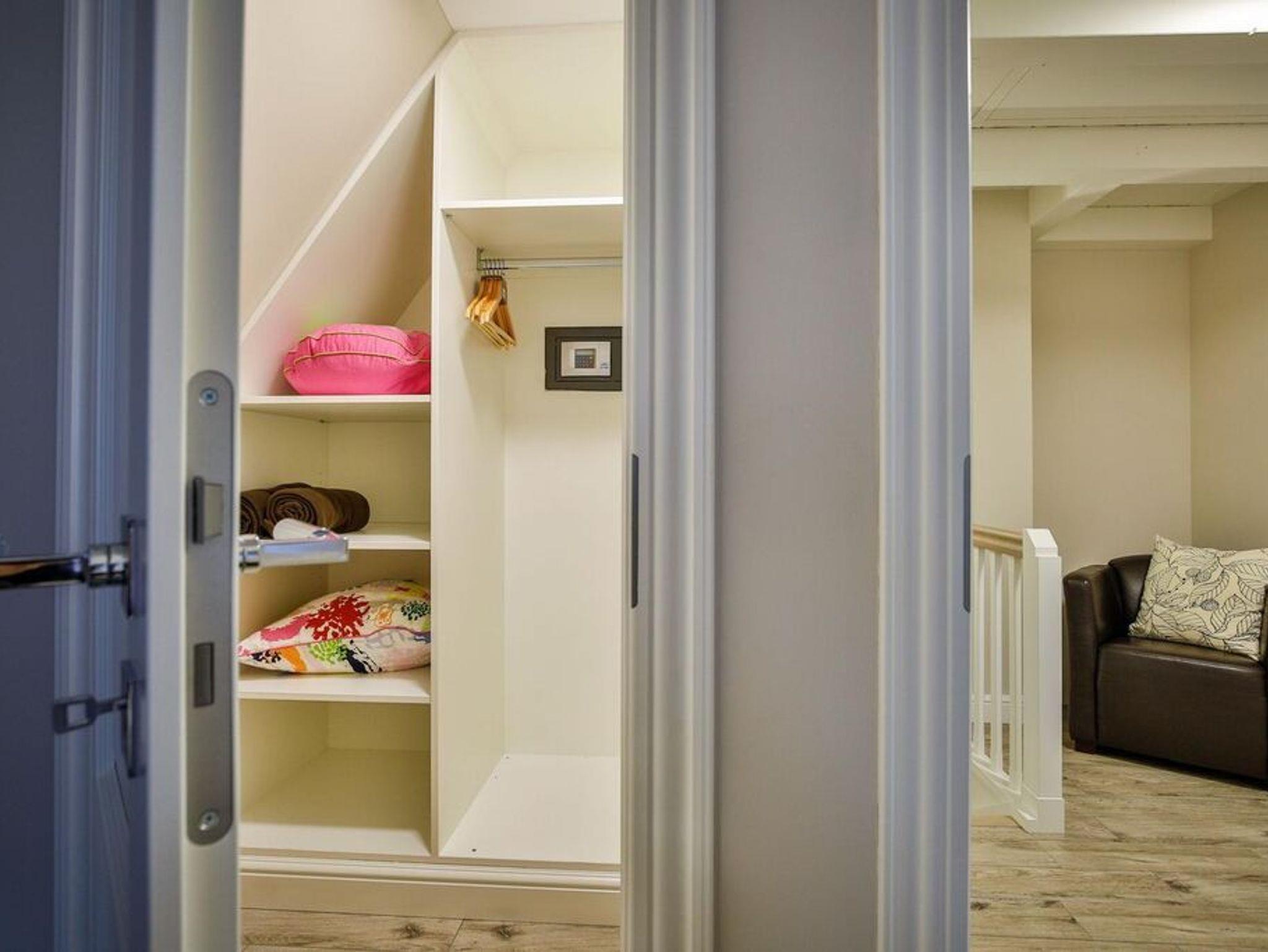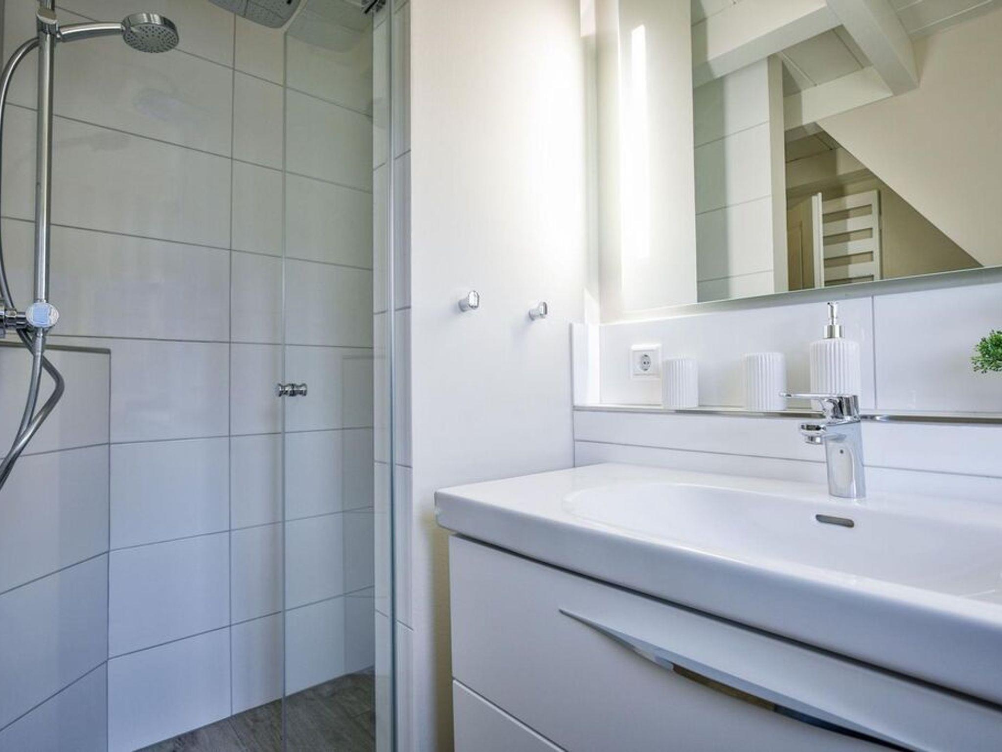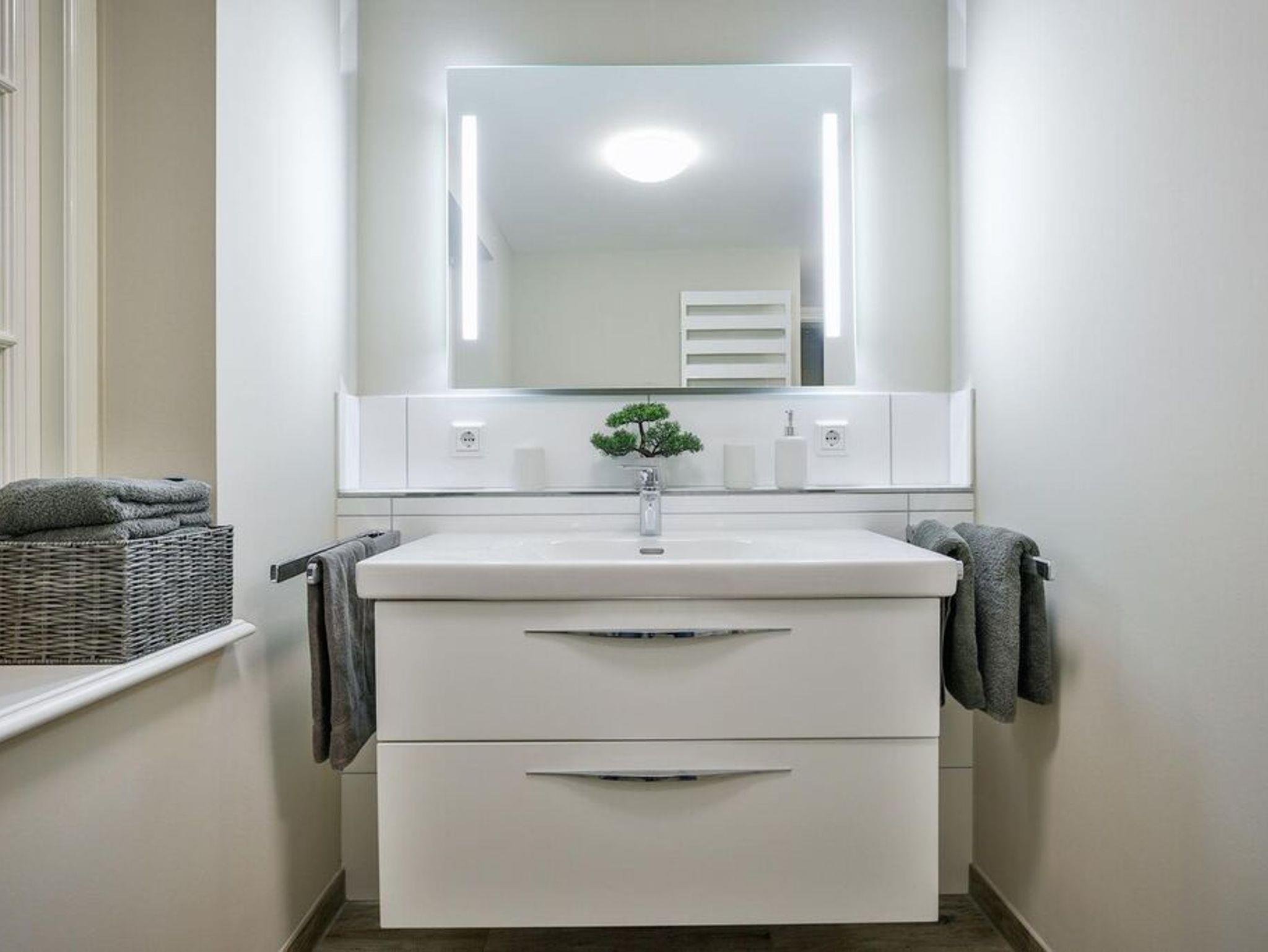 Kleiderschrank und ein Smart-TV. Duschbad/WC mit bodengleichem Abfluss, Waschtisch, beleuchteter Spiegel und Fön. Auch hier sorgt ein Fenster für Tageslicht. Im Haushaltsraum steht Ihnen Waschmaschine und Trockner kostenlos zur Verfügung. Ein Bügelbrett, Bügeleisen und ein Wäscheständer gehören ebenfalls zur Ausstattung.