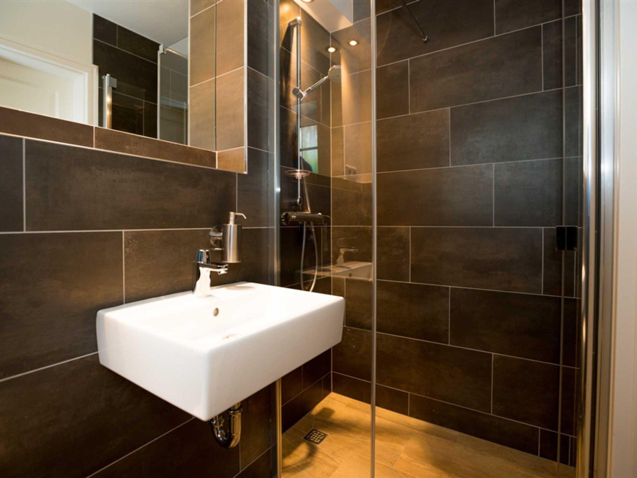 Das Badezimmer im Untergeschoss verfügt neben ebenerdiger Dusche zusätzlich noch über eine Whirlbadewanne sowie eine 2-Personen Sauna.