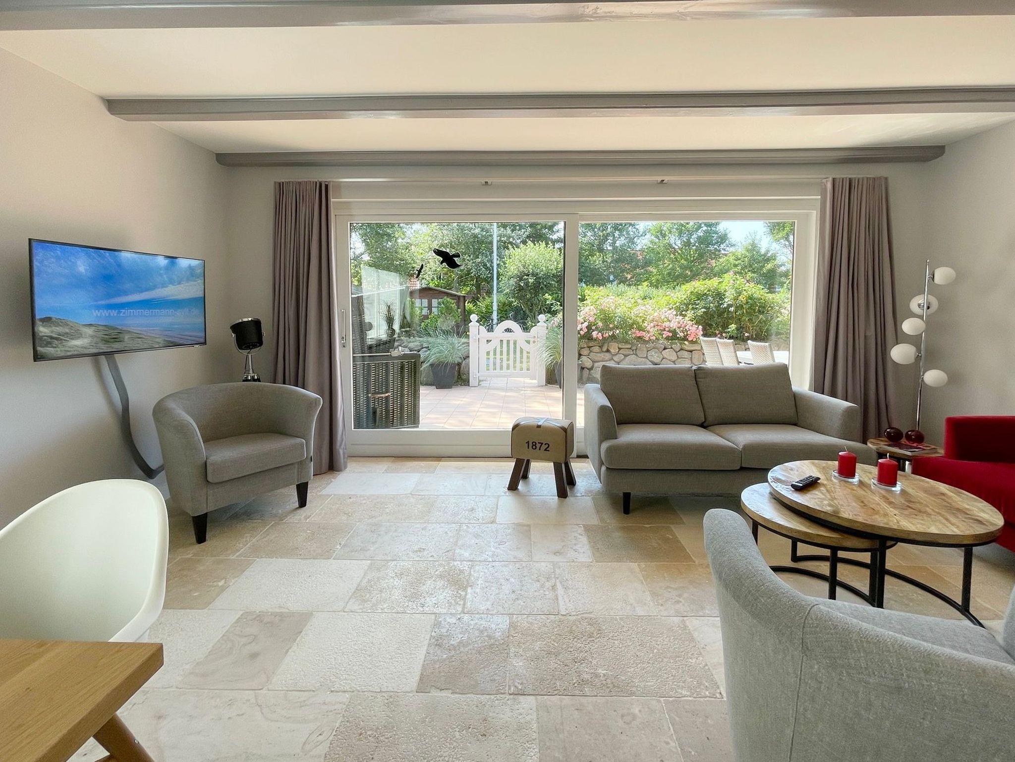 Großzügige ebenerdige Ferienwohnung in Tinnum mit Sauna, Garten und moderner Ausstattung für entspannte Urlaubstage auf Sylt.
