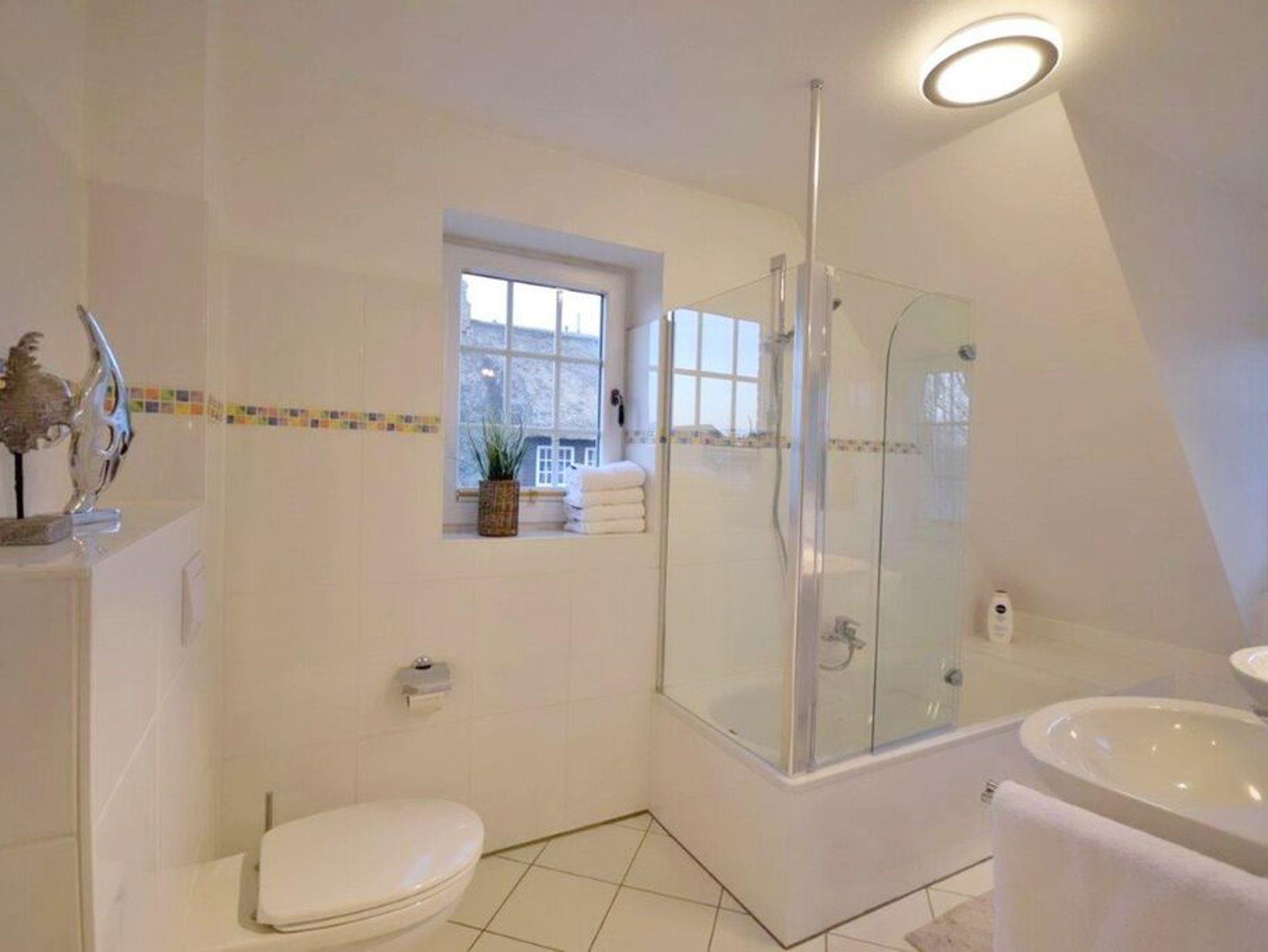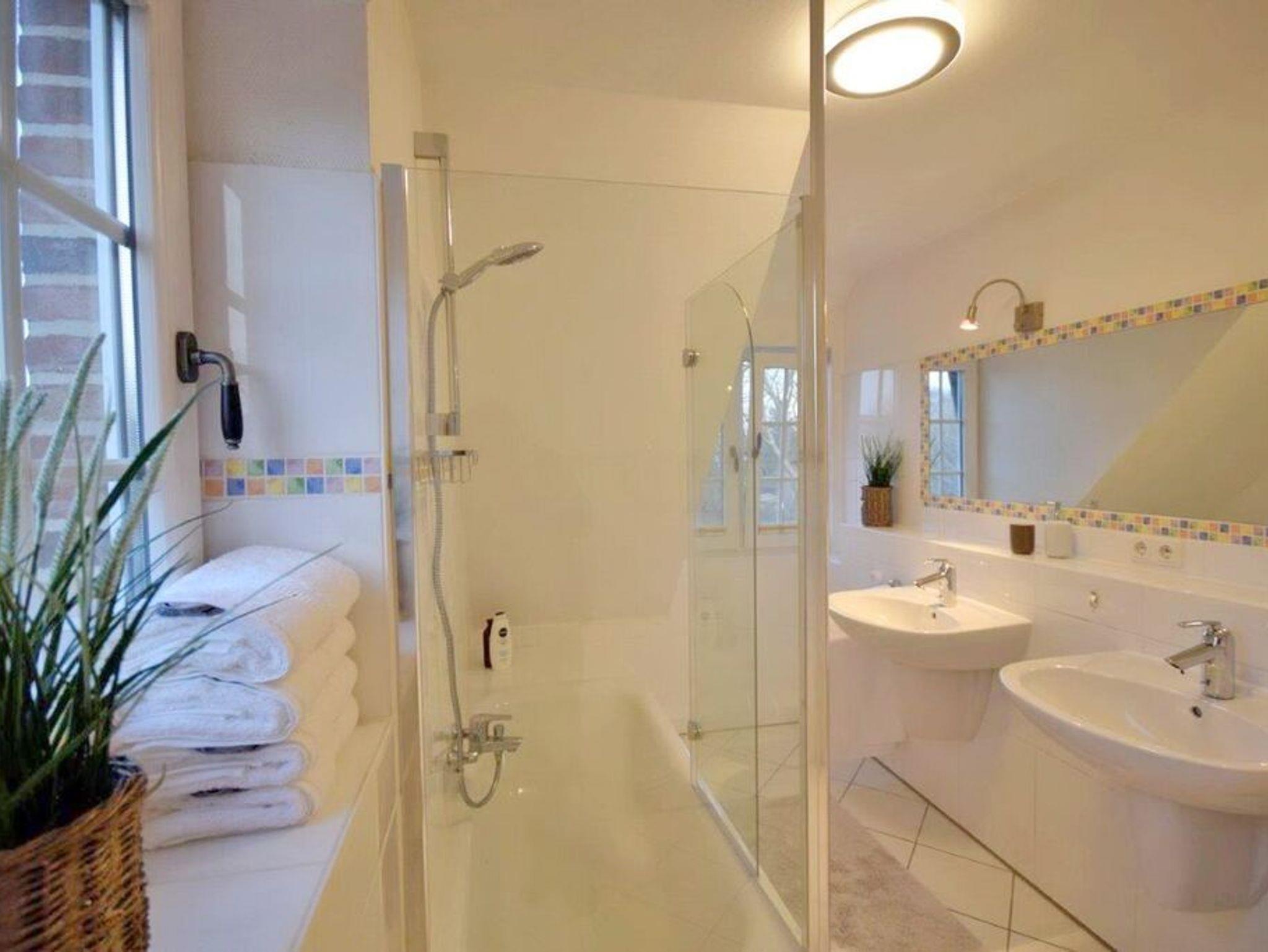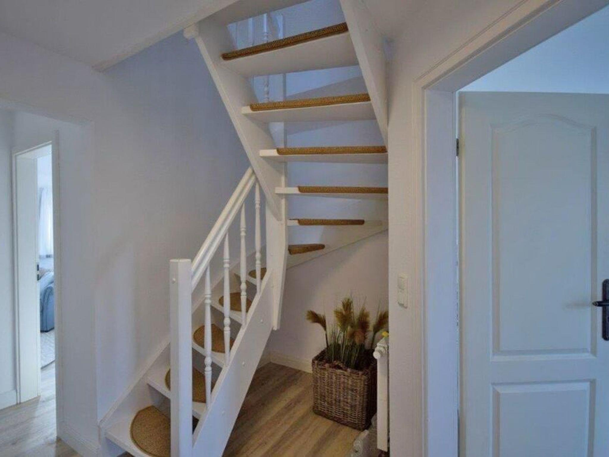 Die 4-Zimmer-Ferienwohnung mit West-Balkon befindet sich im Obergeschoss und Spitzboden des Hauses. Neben dem Elternschlafzimmer befinden sich 2 weitere kleine Schlafzimmer im SB für insgesamt 4 ( eventuell 5 ) Personen. Es gibt ein Wannenbad ( mit Duschmöglichkeit ) und ein Gäste-WC.