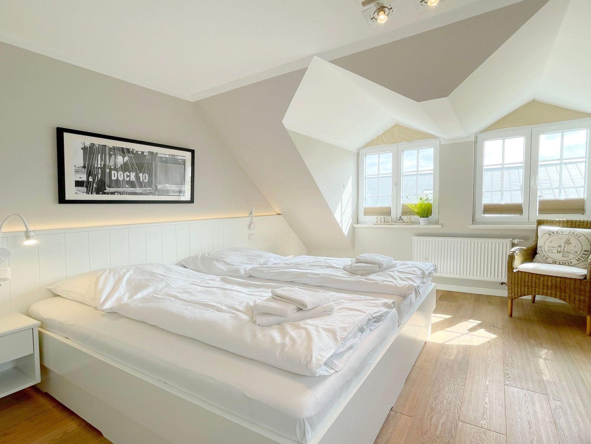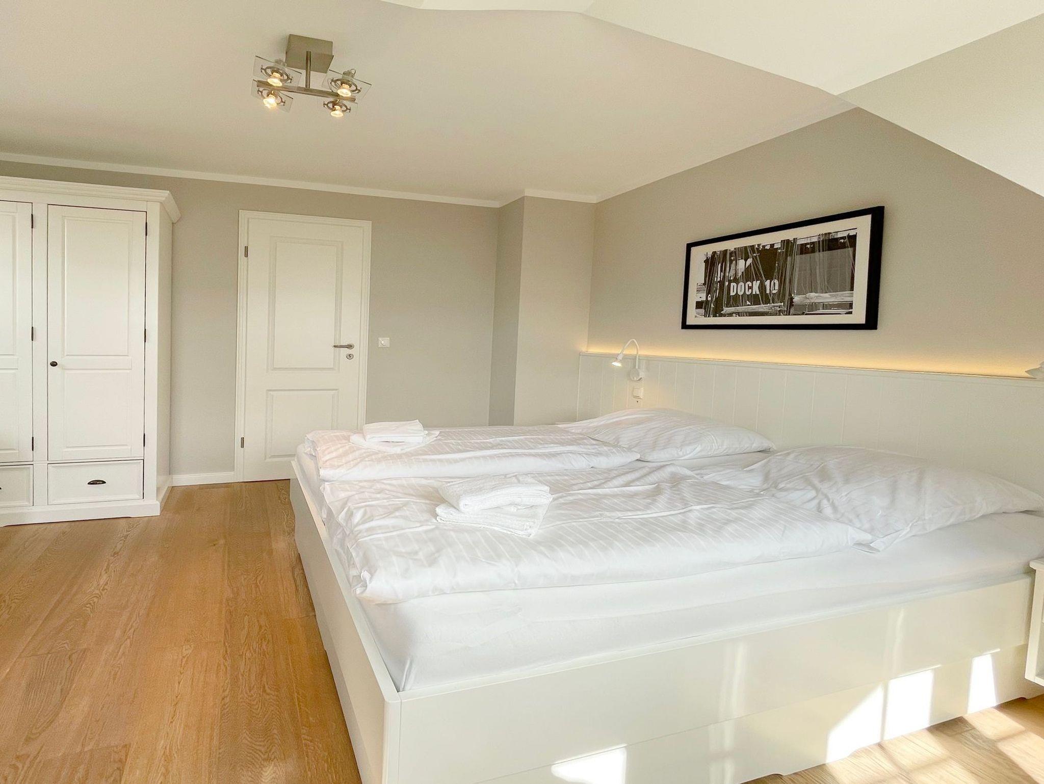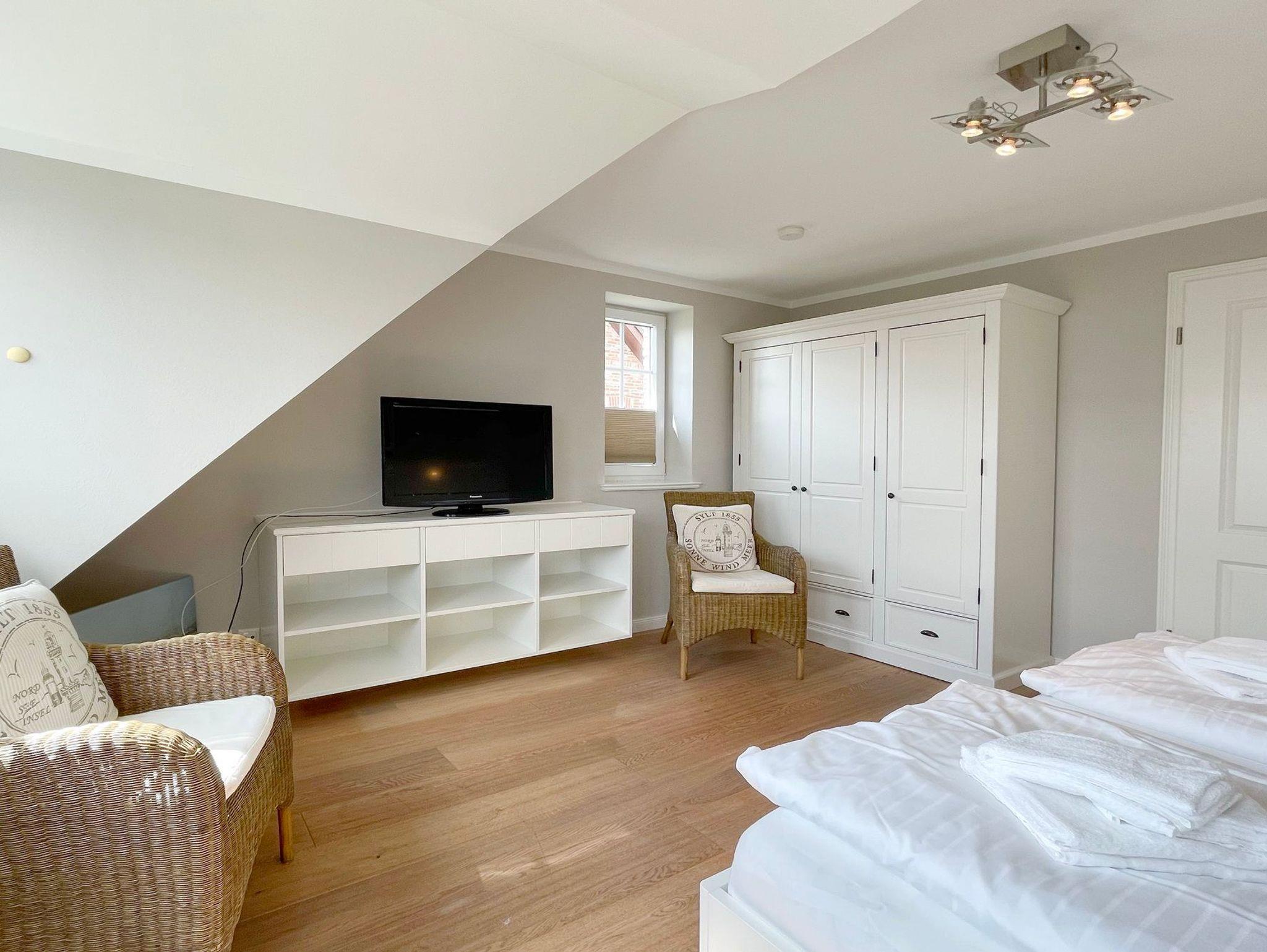 OG: 1 großes Schlafzimmer mit Doppelbett und zweitem TV und 1 Schlafzimmer mit 2 getrennen Betten, Wannenbad ( mit Duschmöglichkeit )