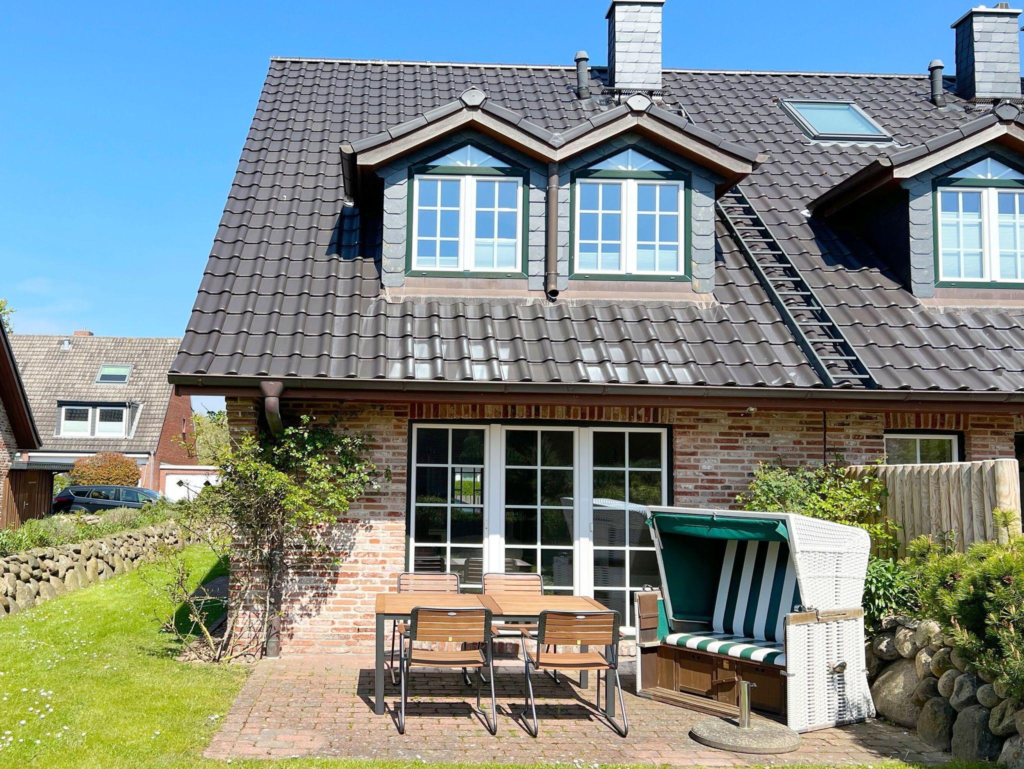 Modernes Endhaus mit Terrasse, Garten und Kamin in Tinnum auf Sylt.