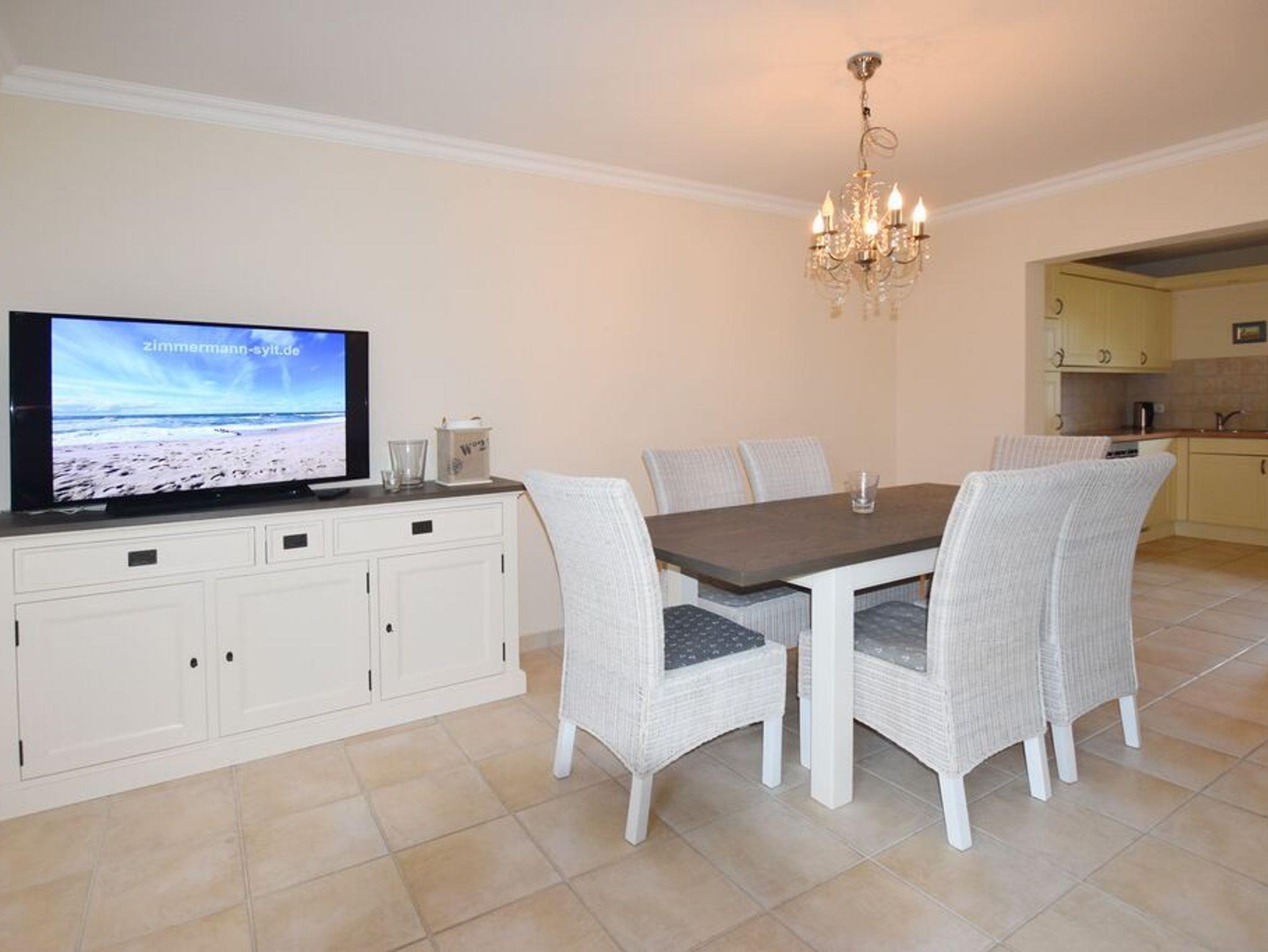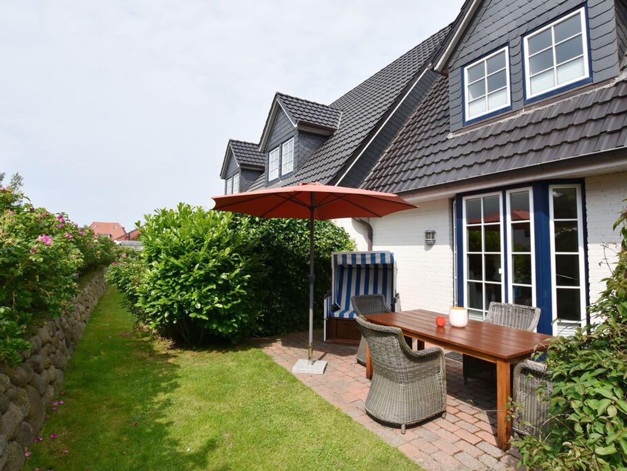 Moderne Mittelhausscheibe in zentraler Lage an der Ortsgrenze zu Westerland. EG: Wohn-/Essbereich mit Smart-TV, offene Küche, West-Terrasse, kleines Duschbad