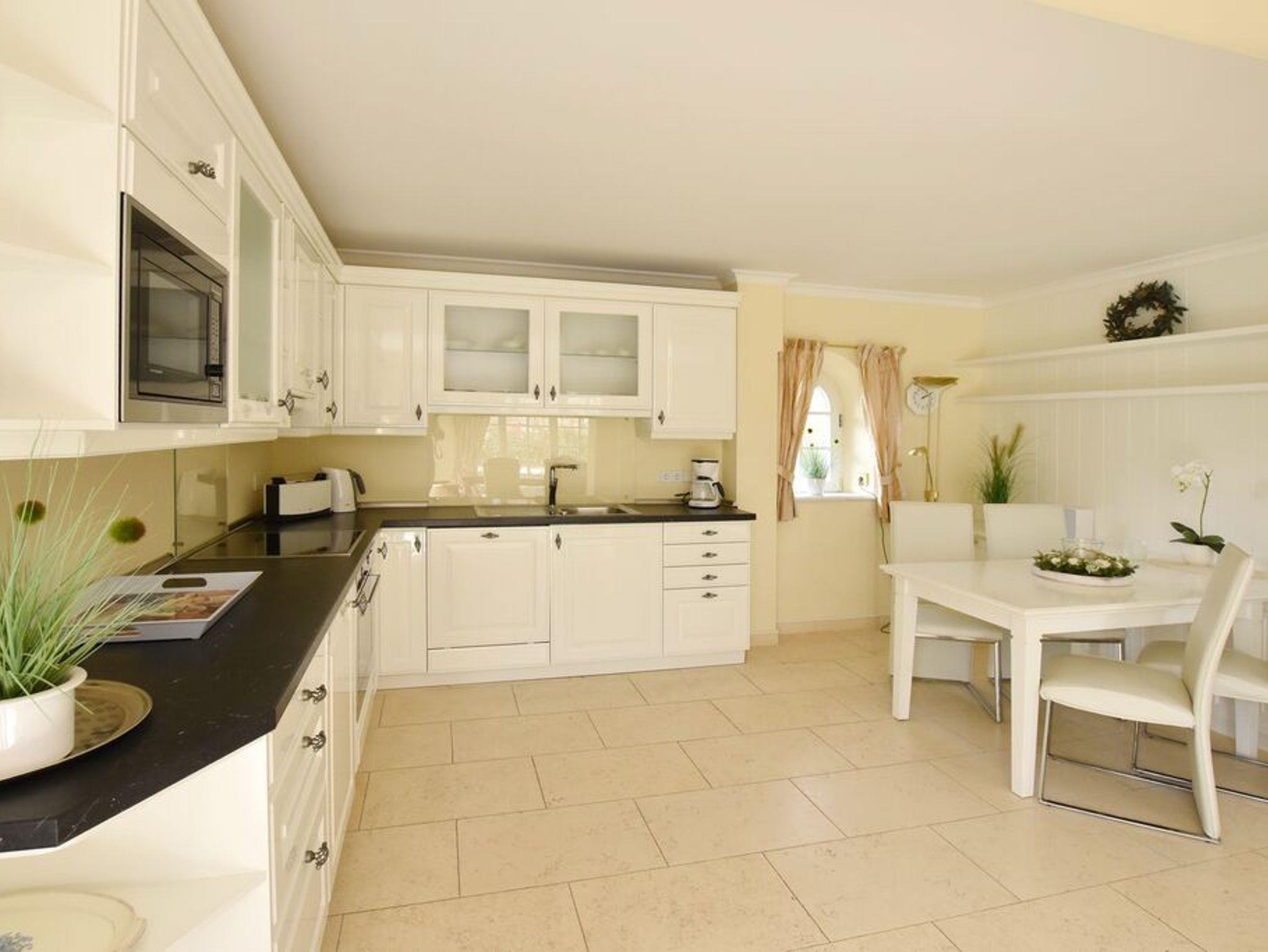 Exklusive Haushälfte unter Reet in ruhiger Ortslage auf eingewachsenem Grundstück EG: grosser heller Wohn-Essbereich mit offener Küche, Flur, Gäste-WC und Zugang zum Garten mit Terrasse in süd-östlicher Ausrichtung OG: 2 Schlafzimmer mit Doppelbett und jeweils mit Bad en suite.