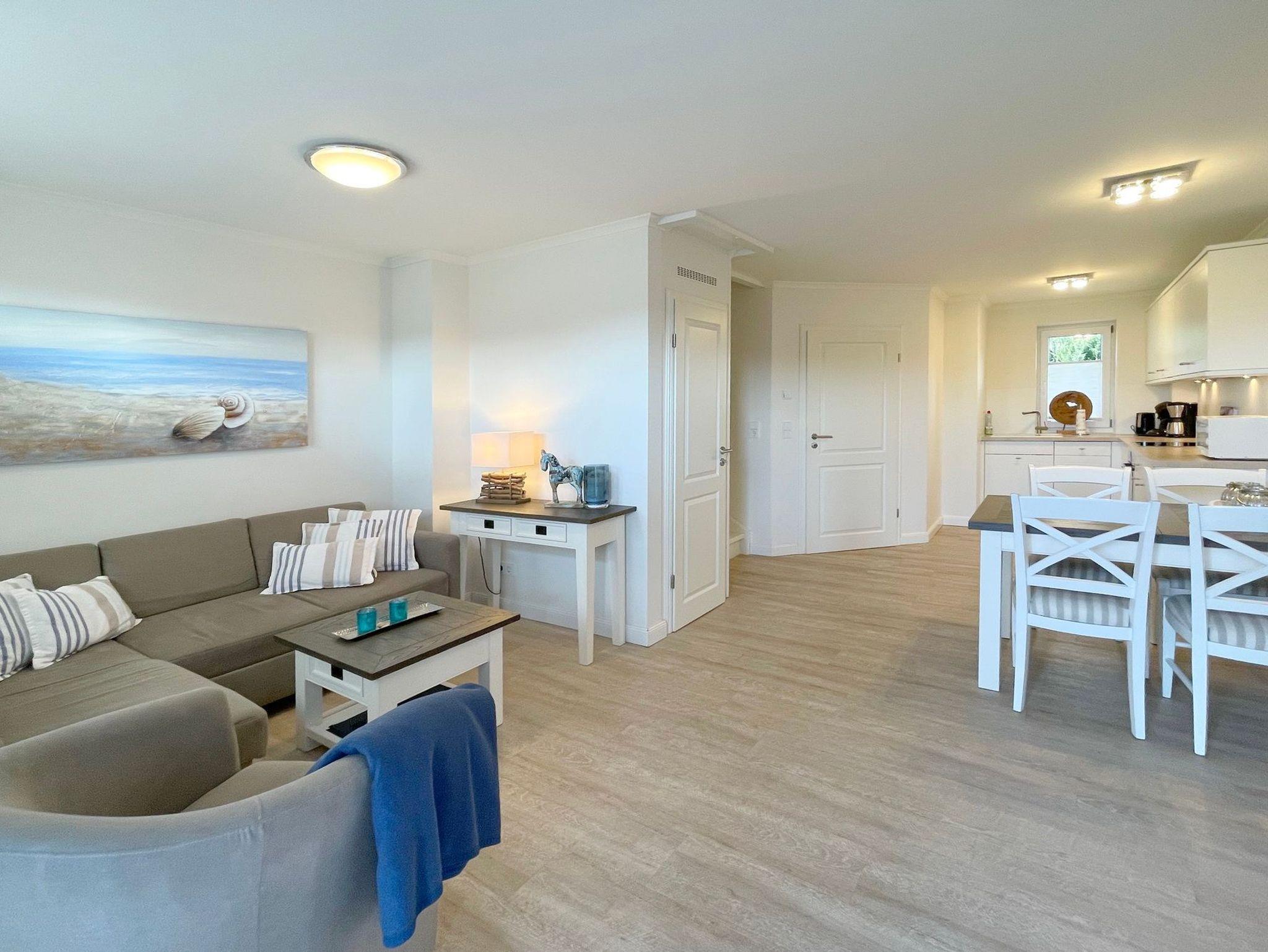 In zentraler Insellage mit Feldblick haben wir diese Mittehausscheibe für Ihren Urlaub auf Sylt im Angebot. Im Erdgeschoss befindet sich der Wohn-Essbereich mit offener Küche, Flur und ein kleines Duschbad.