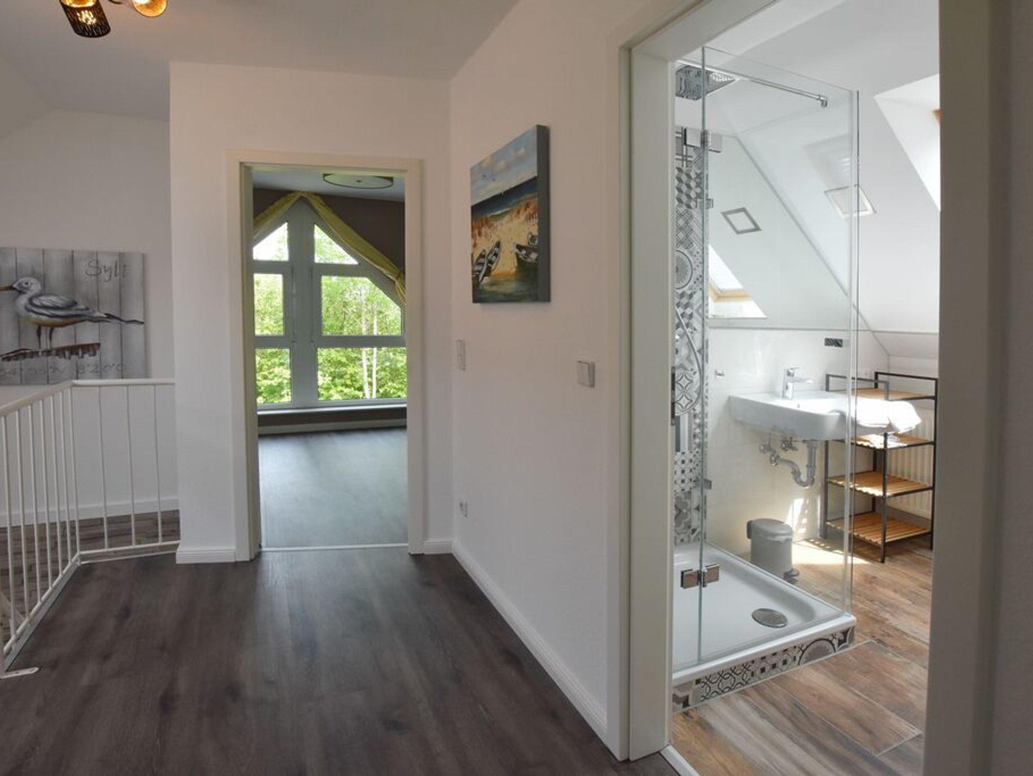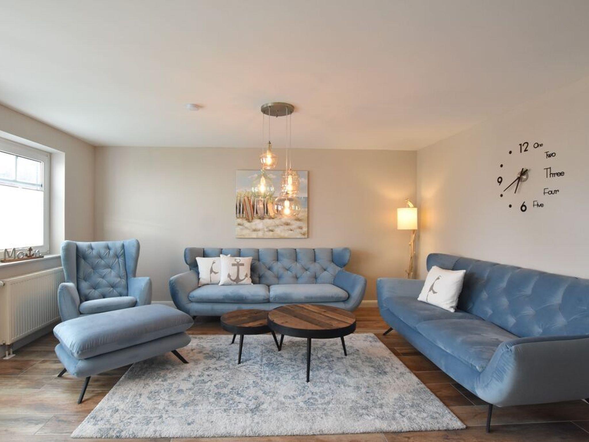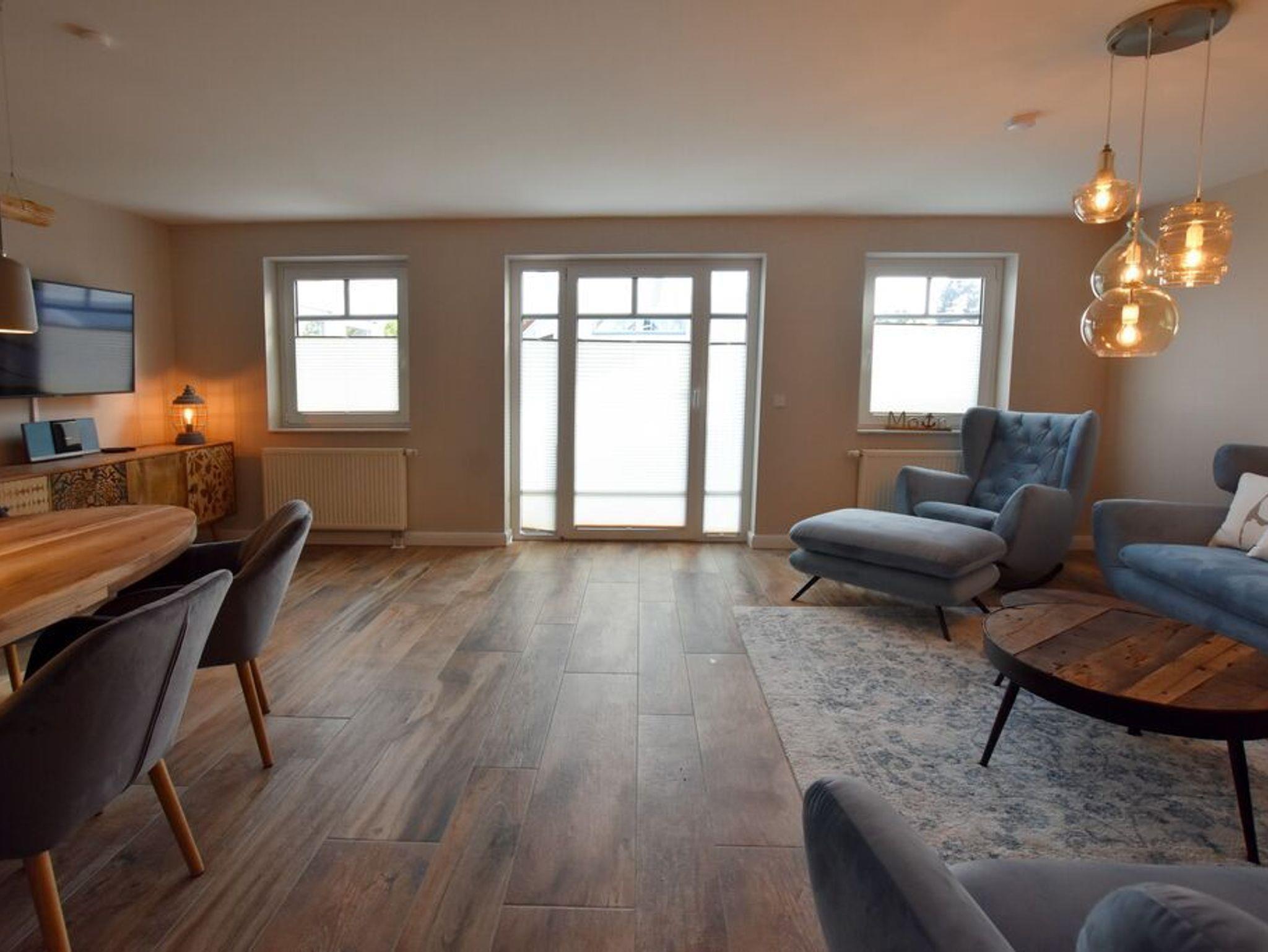 Im Wohnbereich wurden rustikale Holzfliesen verlegt, die das positive Gesamtbild des Ferienhauses abrunden. Die moderne Landhaus-Küche verfügt über ein großes 5 Platten, Induktionskochfeld, eine Microwelle, Geschirrspüler, Nespresso-Kapselmaschine und viele weitere Extras. Die Essecke, 2 Sofas, ein Schaukelsessel mit Fußhocker zum Relaxen und ein großes 50 Zoll Smart TV mit Kabel HD bieten bis zu 6 Personen genug Platz für einen erholsamen Urlaub im Ferienhaus Erika.[nbsp][nbsp]Ein modernes Duschbad ( Regendusche und Handbrause ) mit Fussbodenheizung, Waschbecken WC und ein kleiner Abstellraum gehören ebenfalls zur Ausstattung.