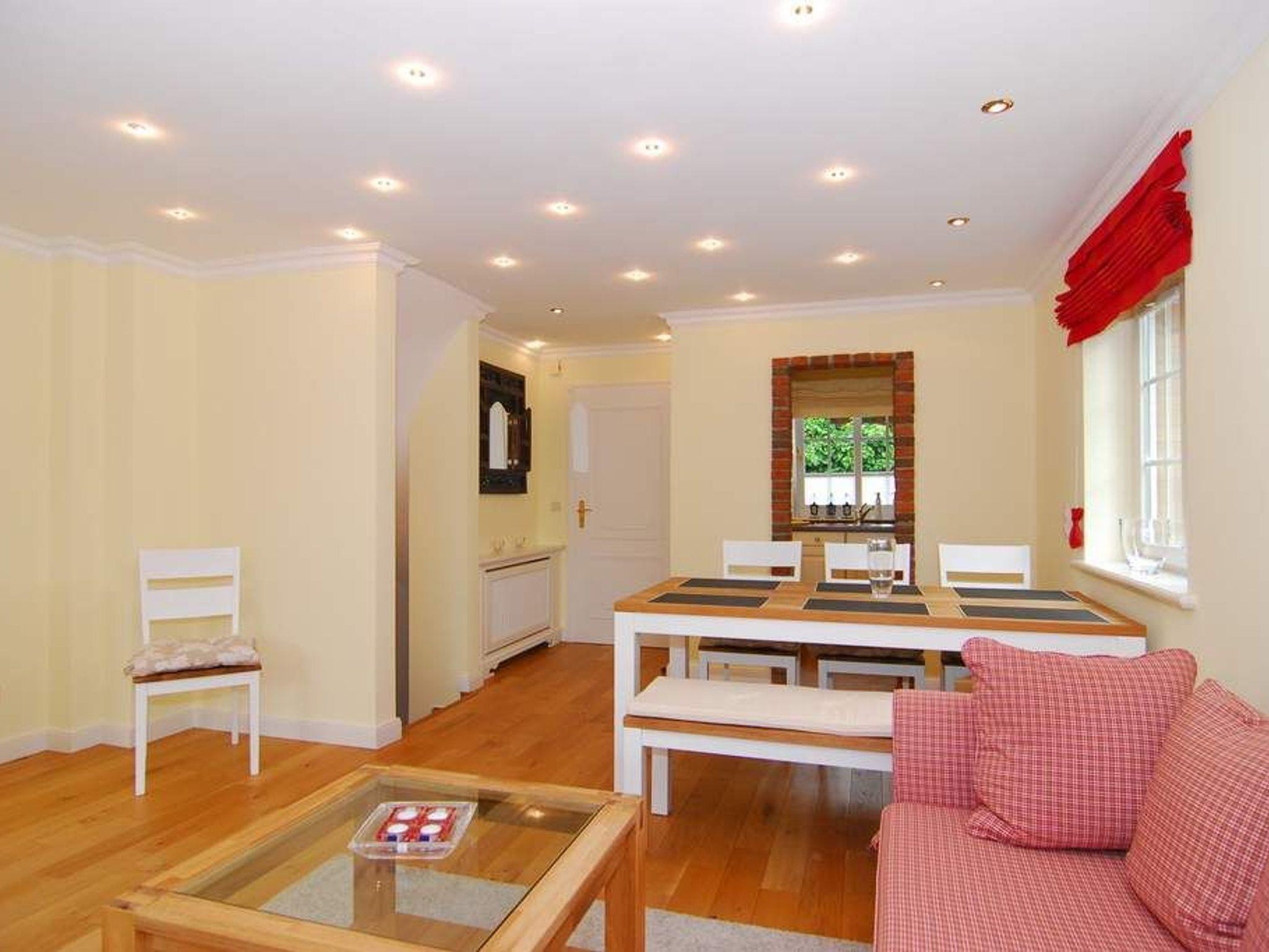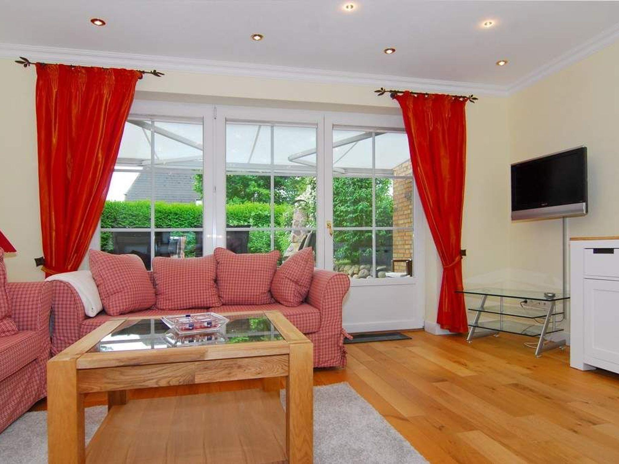 Exklusive Ferienhaushälfte in Süd-Ost-Lage mit ca. 120m². EG: Kleiner Flurbereich mit Garderobe und Treppe ins OG. Wohnzimmer mit Echtholzboden, 2- und 3-Sitzer-Sofa sowie Essplatz und offener Landhausküche mit Mikrowelle/Backofen-Kombi und Geschirrspüler. Flat-TV / W-LAN (ohne Gewähr) und Stereoanlage. Möblierte Südterrasse und Garten. UG: 1 geräumiges Schlafzimmer mit Doppelbett und Einbauschränken, Duschbad/WC, Waschmaschine/Trockner OG: 1 großes Schlafzimmer mit Doppelbett und Einbauschränken, Flat-TV, Duschbad/WC. DG: 1 Schlafzimmer mit 2 Einzelbetten. Tierhaltung ist nur im Erdgeschoss gestattet. Rauchen ist im ganzen Haus untersagt. Parken an der Straße. Bettwäsche und Handtücher sind zur Anreise aufgezogen.