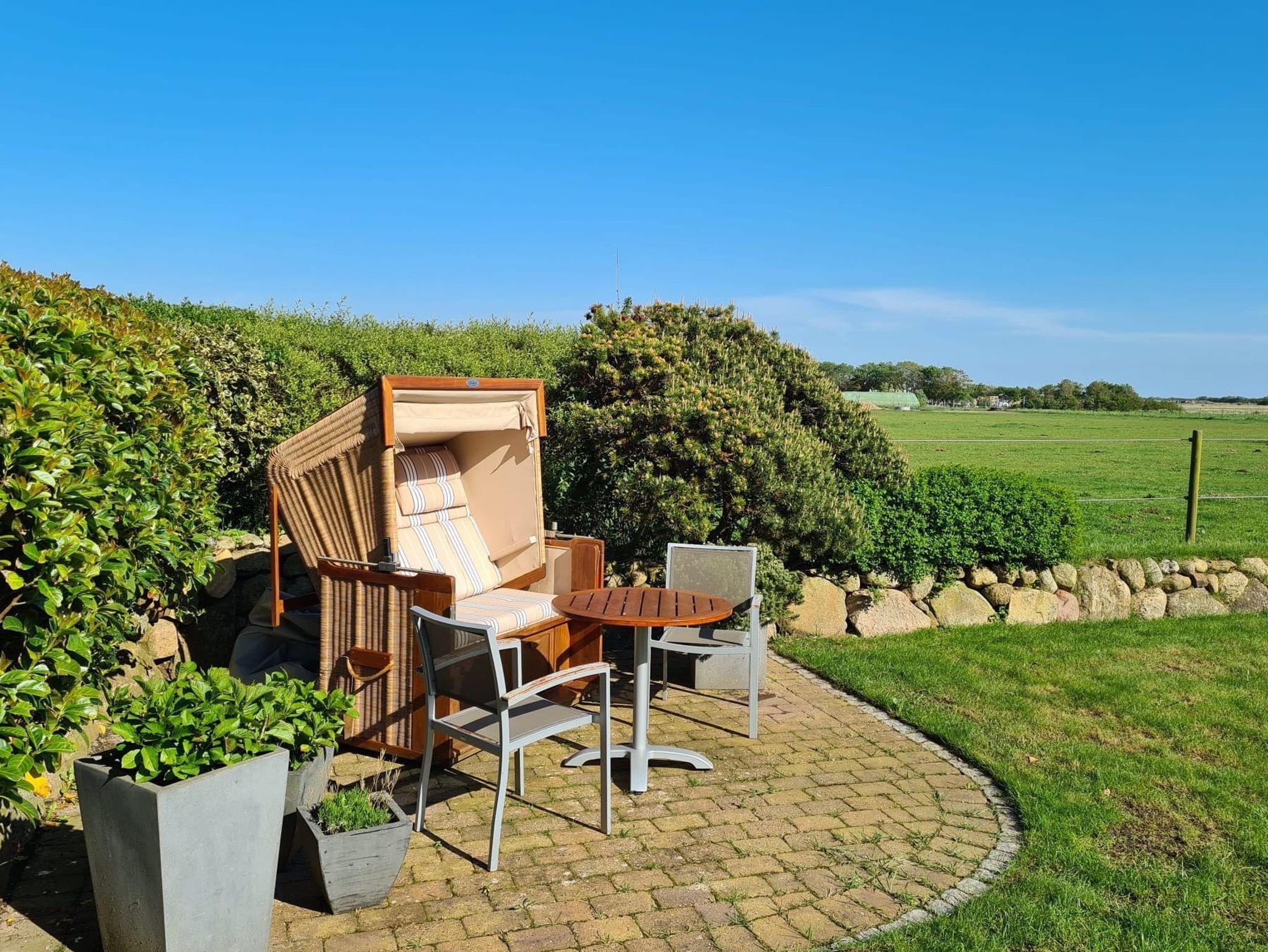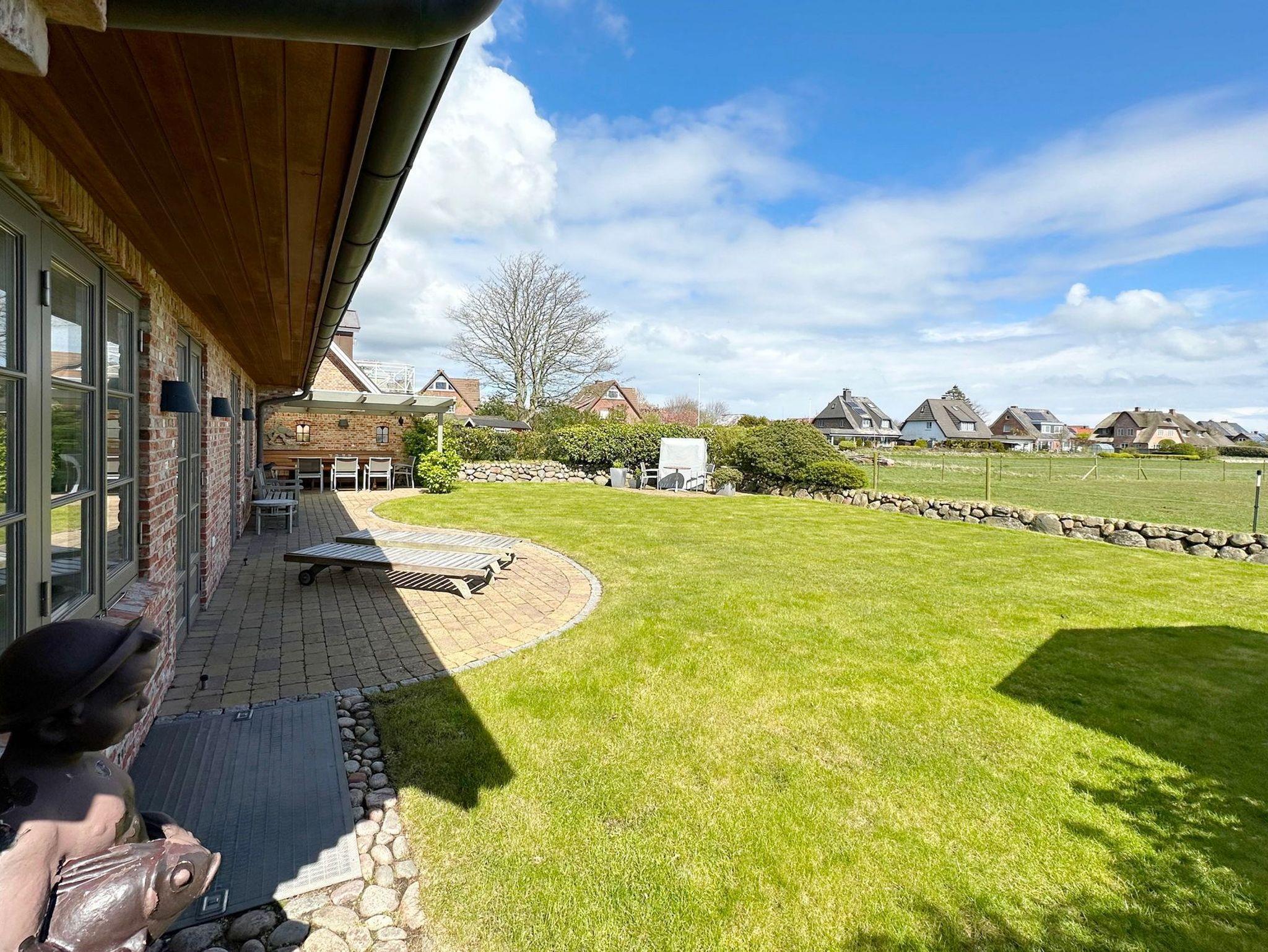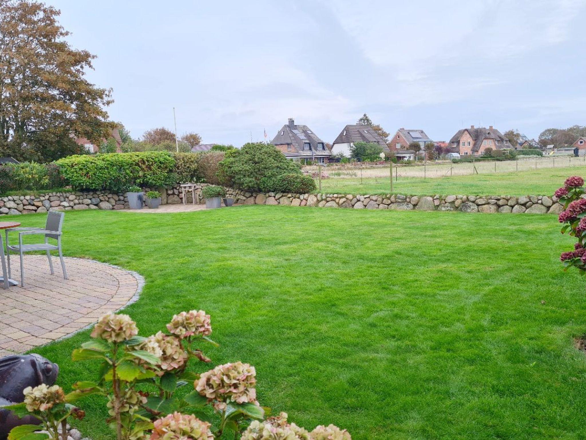 Ferienhaus Fiete in Tinnum bietet Komfort mit Kamin, Sauna, Terrasse und Garten, ideal für Familien und Radfahrer.