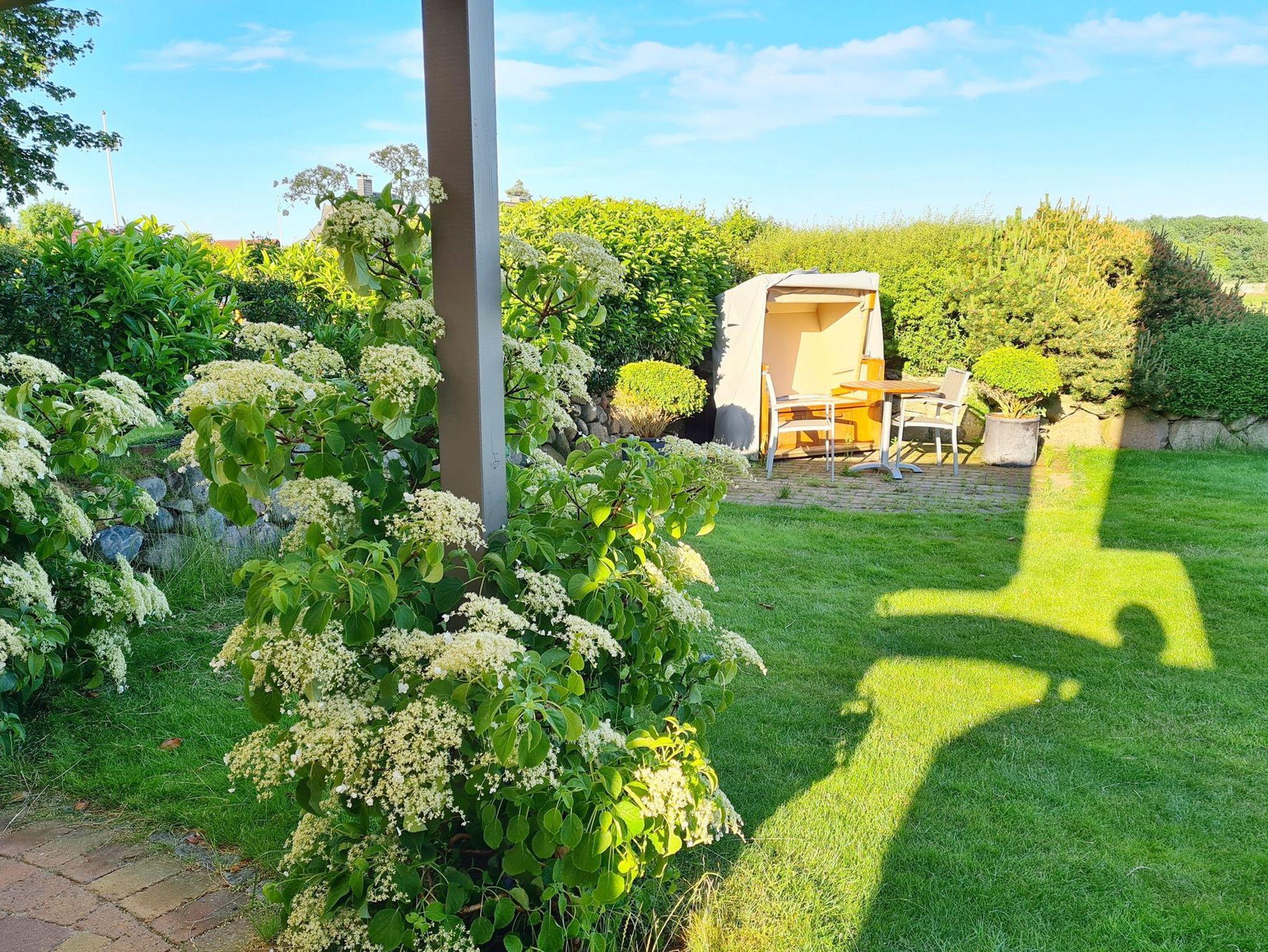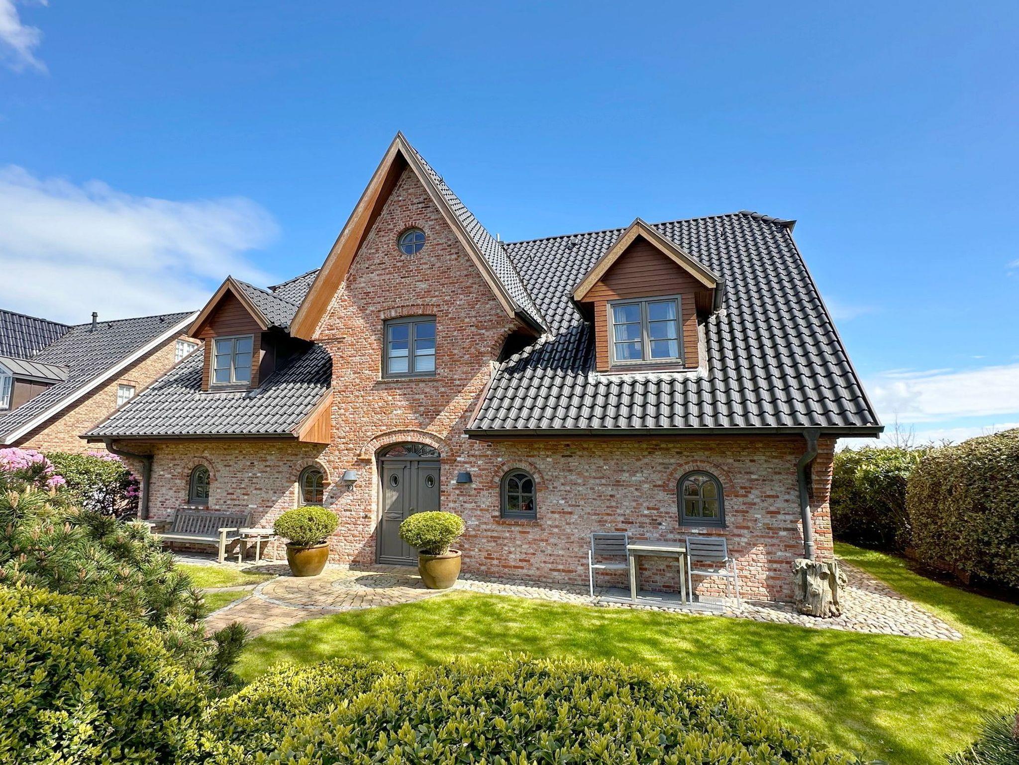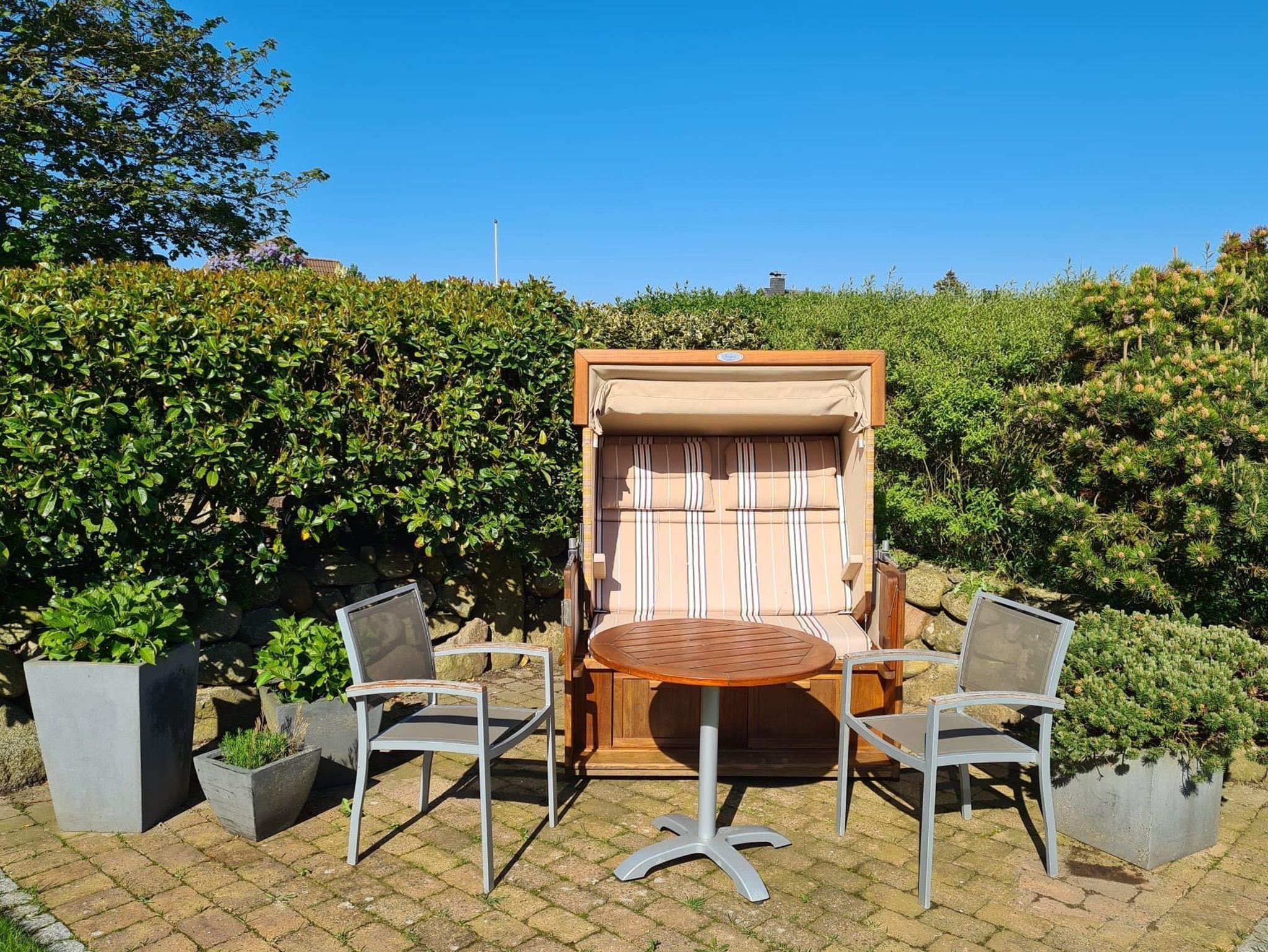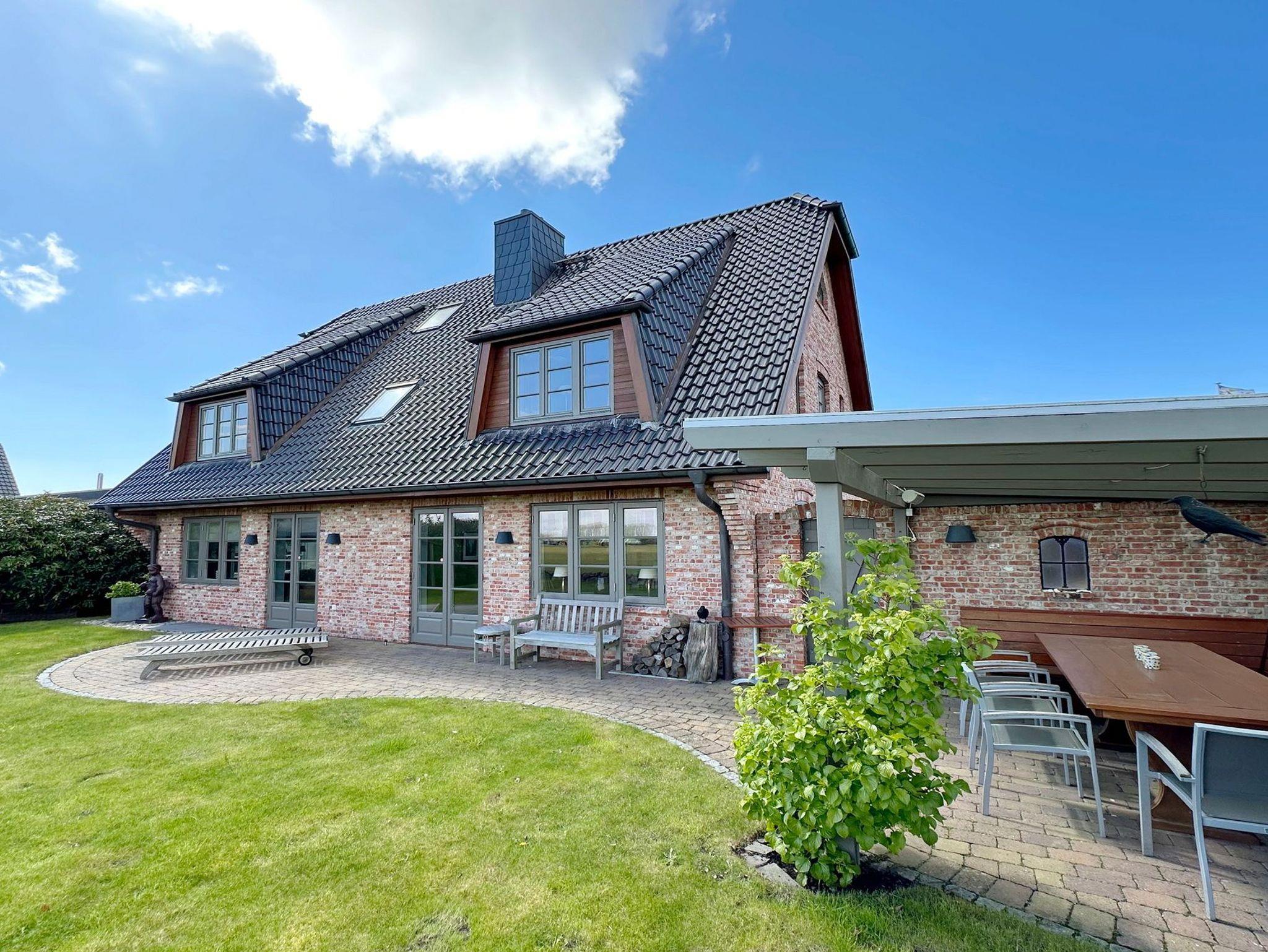 Ferienhaus Fiete in Tinnum bietet Komfort mit Kamin, Sauna, Terrasse und Garten, ideal für Familien und Radfahrer.