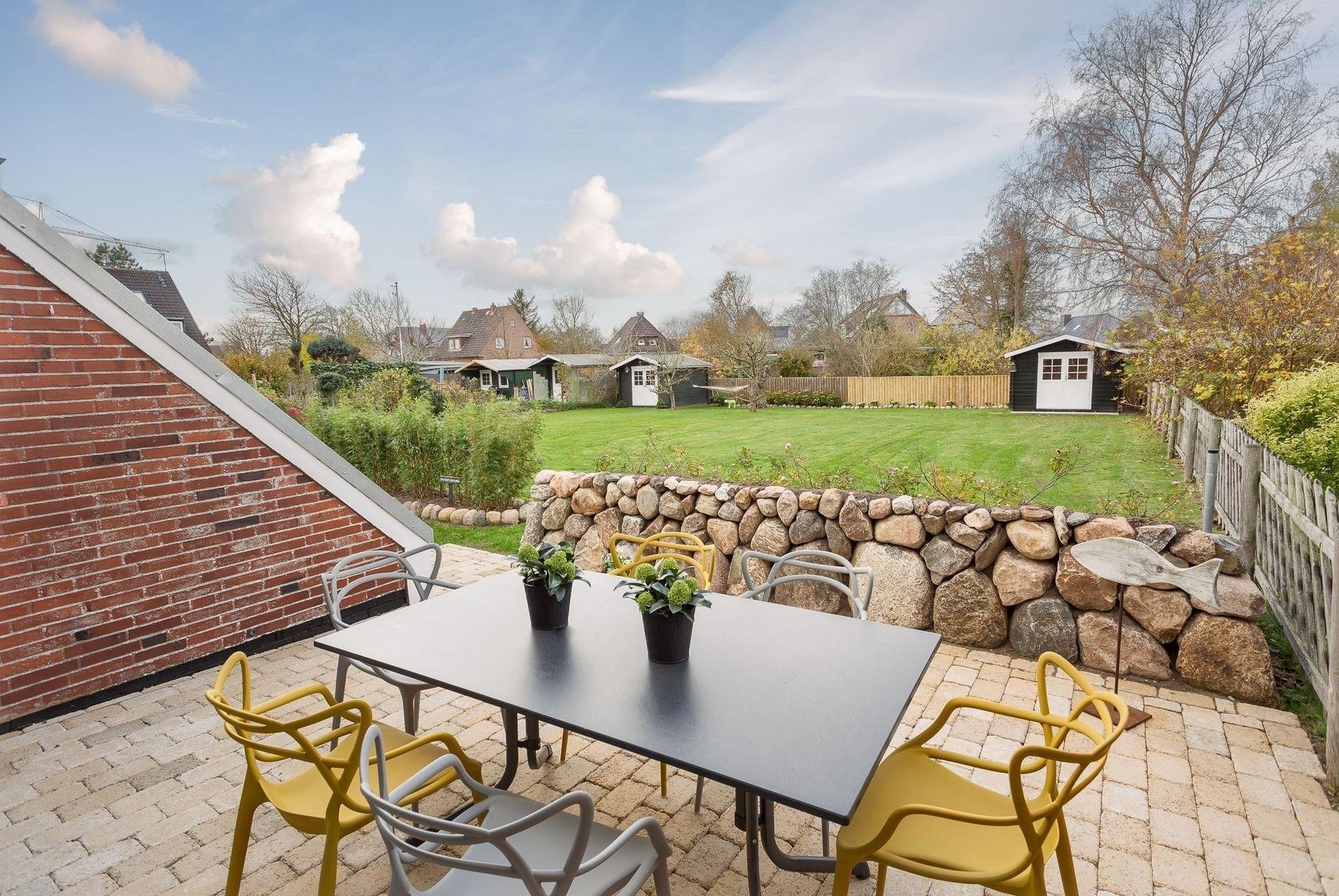 Schöner Südwestgarten mit Gartenhäuschen und Saunahaus. Große Terrasse um den Sonnenuntergang zu genießen.