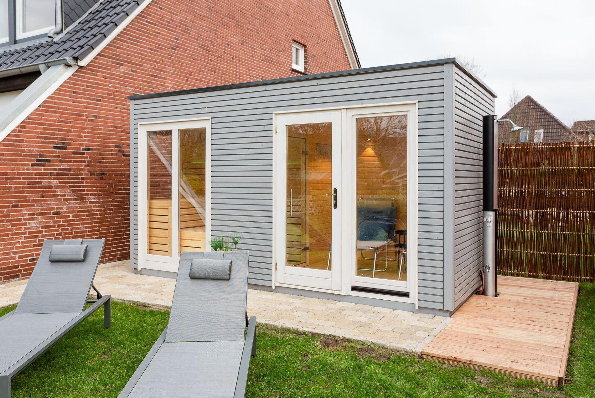 Sauna im Garten für 4 Personen mit kleinem Ruheraum und Außendusche (wird über Sylvester nicht mit vermietet). Gartenhaus hinten für Fahrräder. Gasgrill ist vorhanden, Nespressomaschine, Spiele, Alexa, Sonosboxen.... es bleiben keine Wünsche offen.