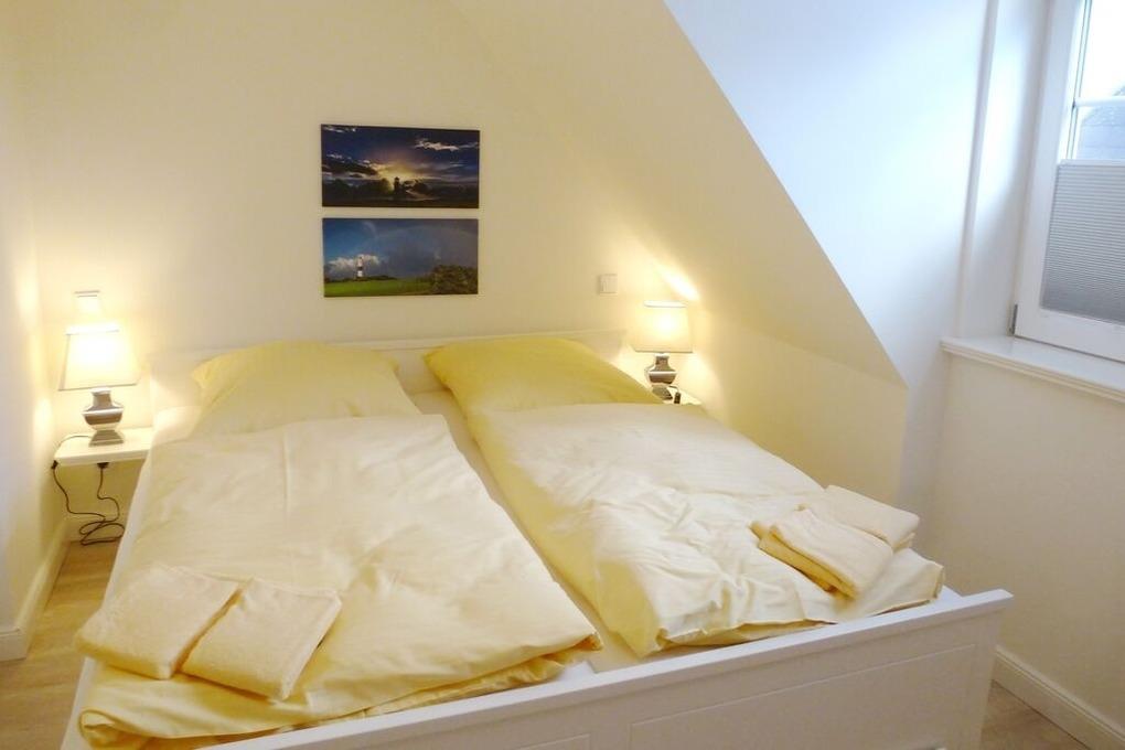 Im OG finden Sie 2 Schlafzimmer mit Doppelbetten und ein zweites Duschbad. Im Spitzboden befindet sich ein weiterer Raum mit einer zusätzlichen Schlafmöglichkeit.