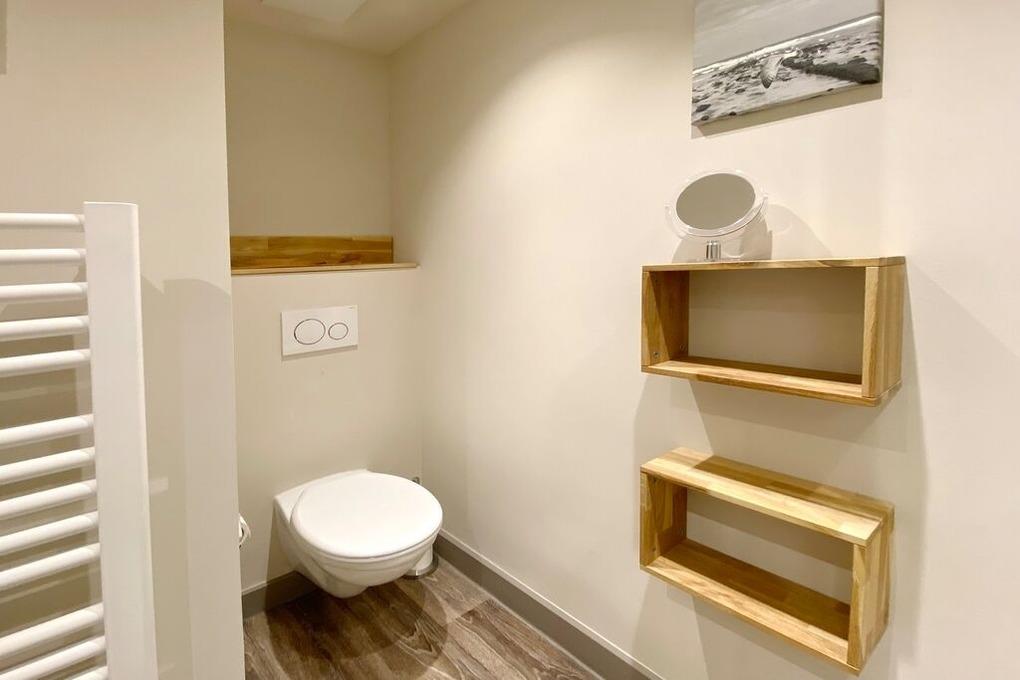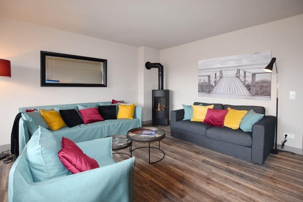 Im Obergeschoss erwarten Sie zwei großzügige Schlafzimmer und das Badezimmer mit komfortabler Dusche und schickem Waschtisch. Die Zimmer sind gemütlich eingerichtet und hübsch gestaltet. Die freundliche Ausstrahlung trägt dazu bei, dass Sie sich rasch wohl fühlen. Jeder Schlafraum verfügt über einen eigenen Fernseher und einen freien Blick in den Himmel.