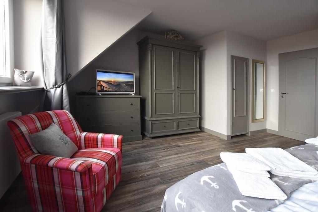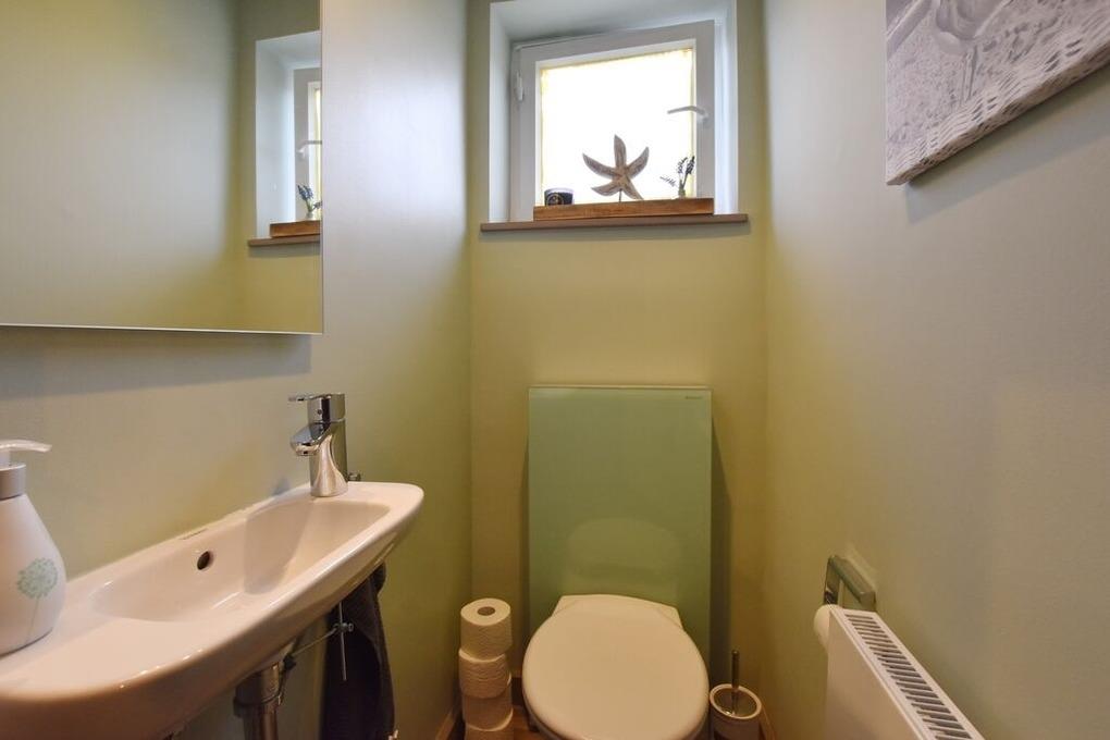 Kommen Sie vom Wind durchpustet zurück in die Barke 17, können Sie sich erst einmal am Gas-Kaminofen in der gemütlichen Couch-Ecke aufwärmen. Verbinden Sie dann noch die Bose-Soundanlage mit Ihrem Handy, können Sie gleich Ihre Entspannungs- oder Gute-Laune-Musik anstellen. Urlaub pur! Oder lassen Sie sich von einem Krimi auf dem großen Fernseher fesseln. Bei gutem Wetter können Sie sich an ihrer eigenen Terrasse und dem dazugehörigen ( komplett eingezäuntem ) Garten erfreuen.[nbsp] Im Erdgeschoss finden Sie außerdem noch ein Gäste-WC.