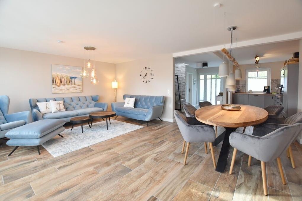 Im Wohnbereich wurden rustikale Holzfliesen verlegt, die das positive Gesamtbild des Ferienhauses abrunden. Die moderne Landhaus-Küche verfügt über ein großes 5 Platten, Induktionskochfeld, eine Microwelle, Geschirrspüler, Nespresso-Kapselmaschine und viele weitere Extras. Die Essecke, 2 Sofas, ein Schaukelsessel mit Fußhocker zum Relaxen und ein großes 50 Zoll Smart TV mit Kabel HD bieten bis zu 6 Personen genug Platz für einen erholsamen Urlaub im Ferienhaus Erika.[nbsp][nbsp]Ein modernes Duschbad ( Regendusche und Handbrause ) mit Fussbodenheizung, Waschbecken WC und ein kleiner Abstellraum gehören ebenfalls zur Ausstattung.