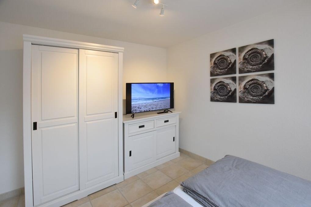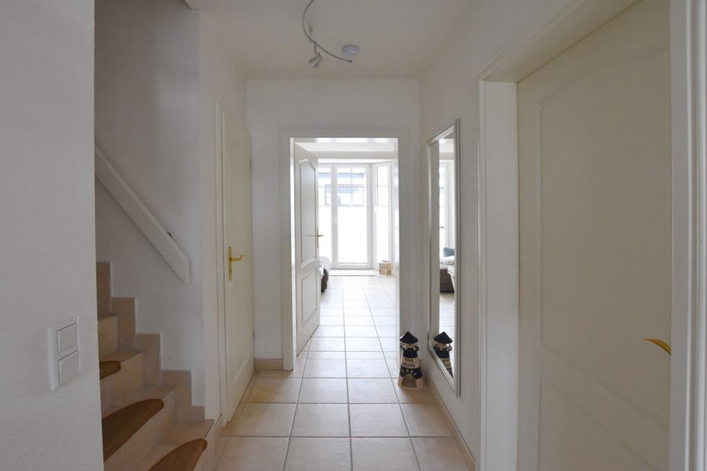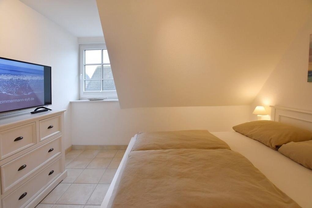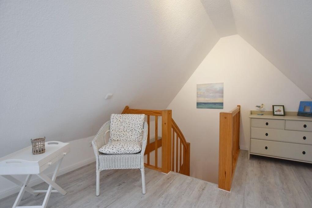 Moderne Mittelhausscheibe in zentraler Lage an der Ortsgrenze zu Westerland. EG: Wohn-/Essbereich mit Smart-TV, offene Küche, West-Terrasse, kleines Duschbad