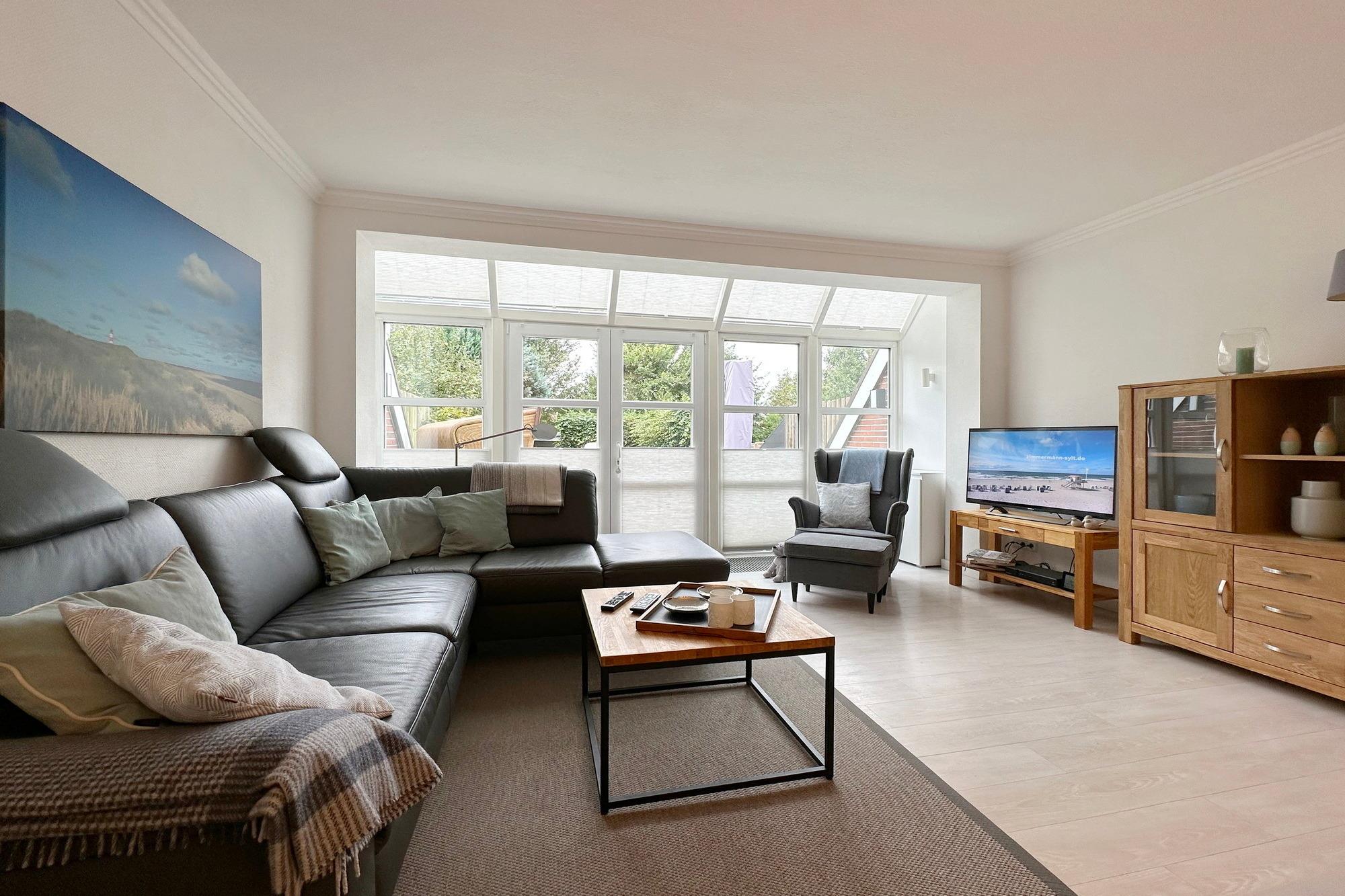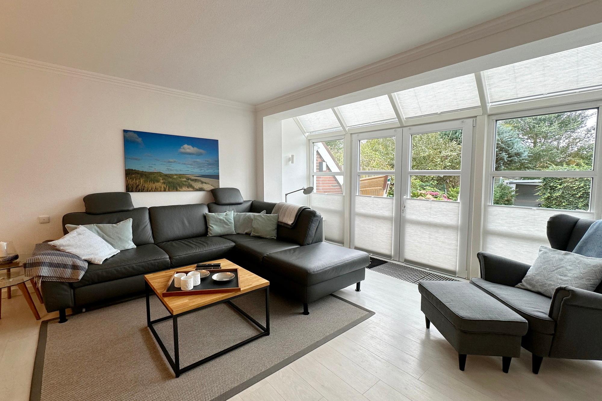 Gemütliches Reihenhaus in Tinnum mit Wintergarten, Terrasse und moderner Ausstattung für erholsame Ferien.