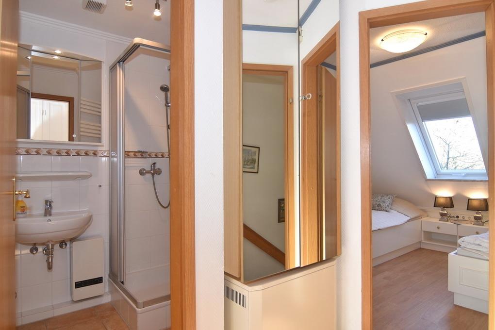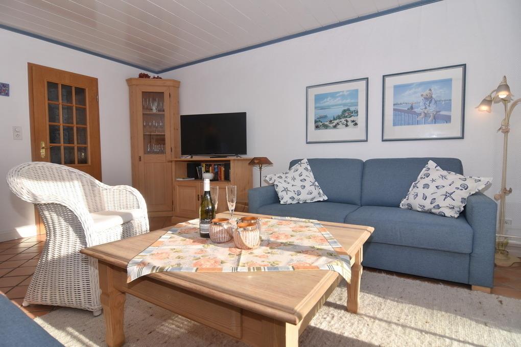 Nichtraucherhaus mit ca. 80m² - Mittelhausteil in ruhiger Lage an den Wiesen. Gefliestes Erdgeschoss mit hübschen Wohnzimmer mit 2 Zweisitzern, Eßplatz, Kabel-TV, Stereoanlage, W-LAN (ohne Gewähr), Süd-Terrasse mit Saison-Strandkorb (Apr.-Okt.) und Garten, offene Küche mit Geschirrspüler und Mikrowelle, Duschbad/WC. OG: 1 Schlafzimmer mit Doppelbett und TV, 1 Schlafzimmer mit 2 Einzelbetten, Duschbad/WC. Waschmaschine / Trockner. 2 PKW-Stellplätze. Das Haus ist gepflegt ausgestattet. Tierhaltung nicht gestattet. Bettwäsche und Handtücher sind zur Anreise aufgezogen.