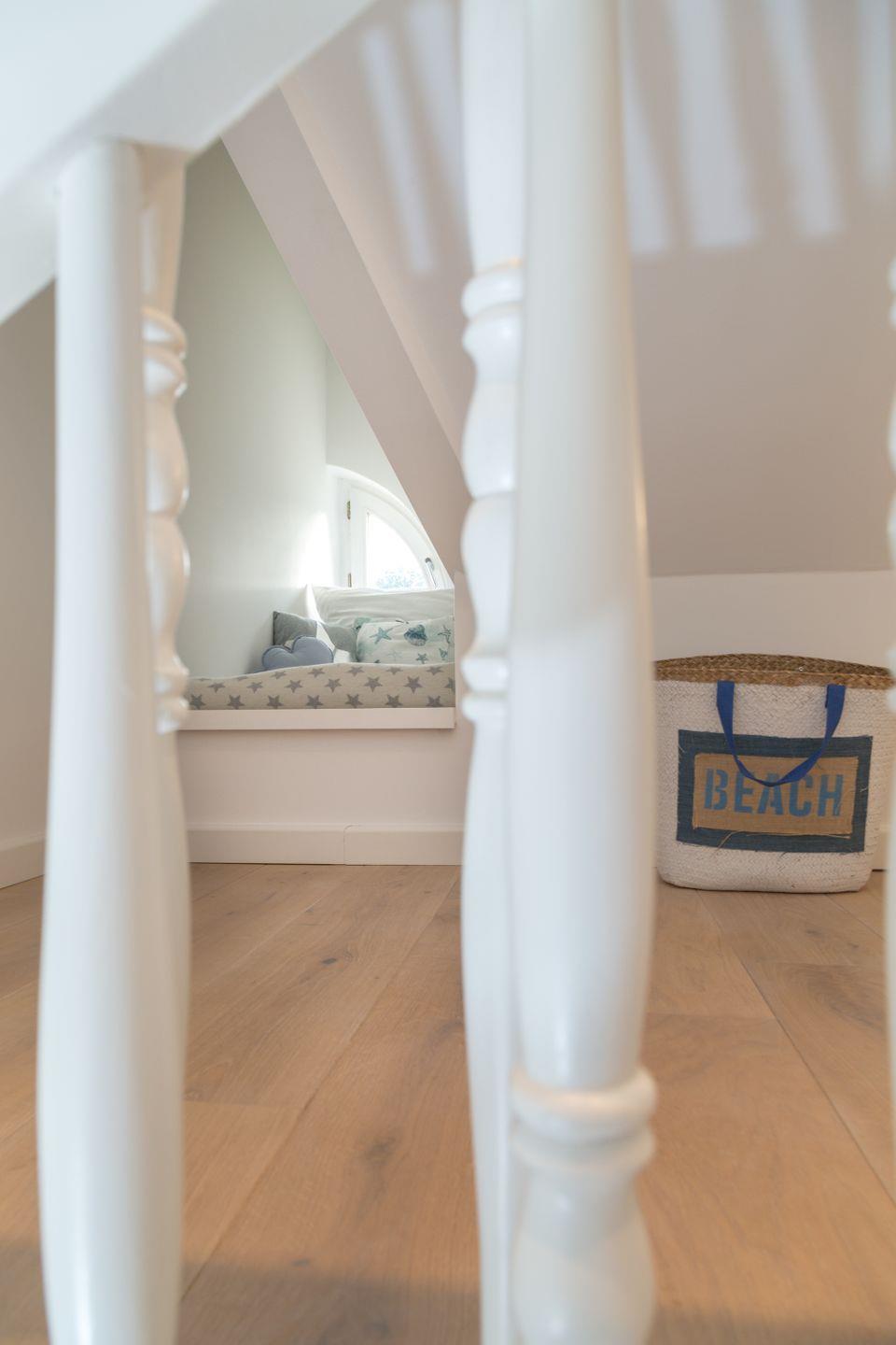 Eine gemütliche Schlafkoje lädt kleine Gäste zum Einkuscheln ein, während im Gemeinschaftsgarten mit Liegewiese und eigenem Strandkorb entspannte Stunden warten.