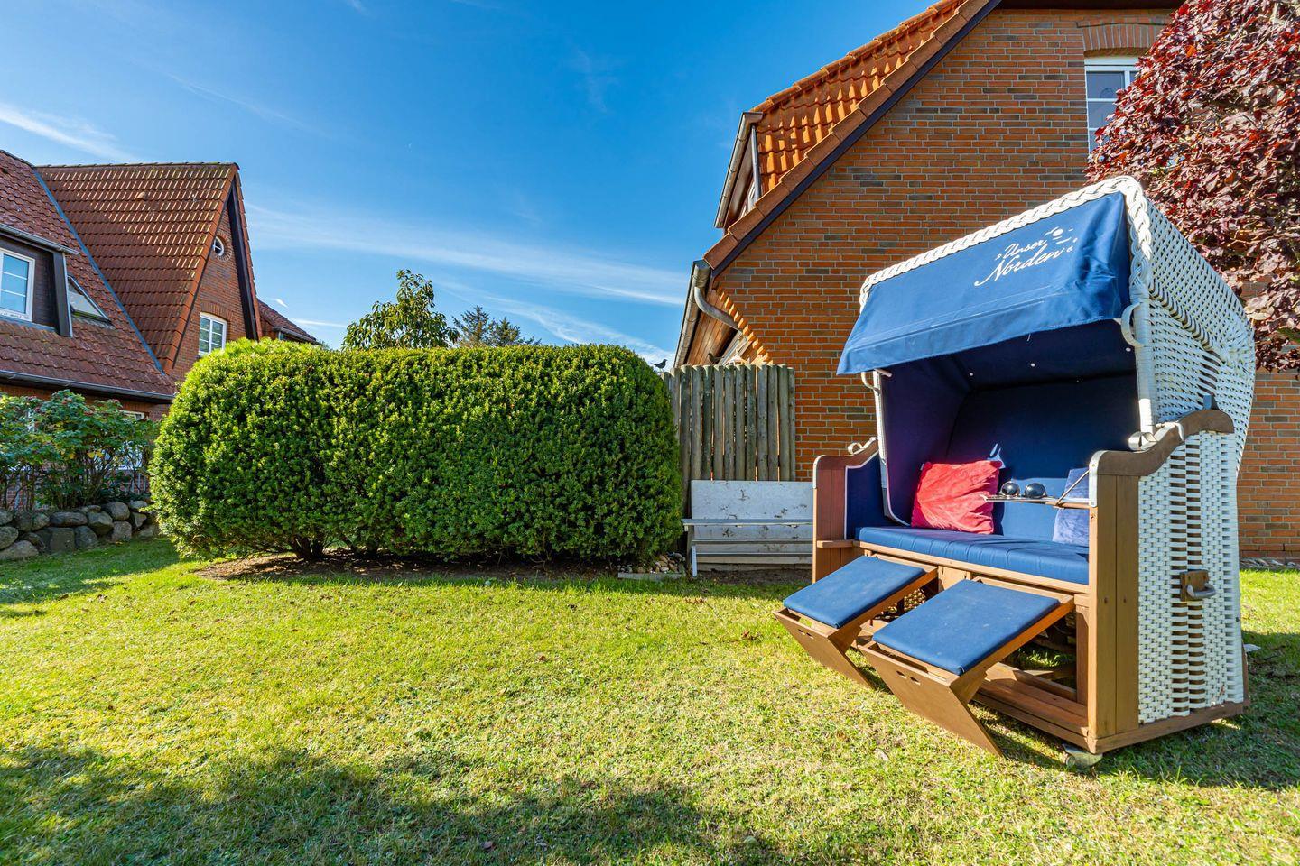 Gemütliche 3-Zimmer-Ferienwohnung in Tinnum mit Terrasse, Garten und Strandkorb für entspannte Urlaubstage.
