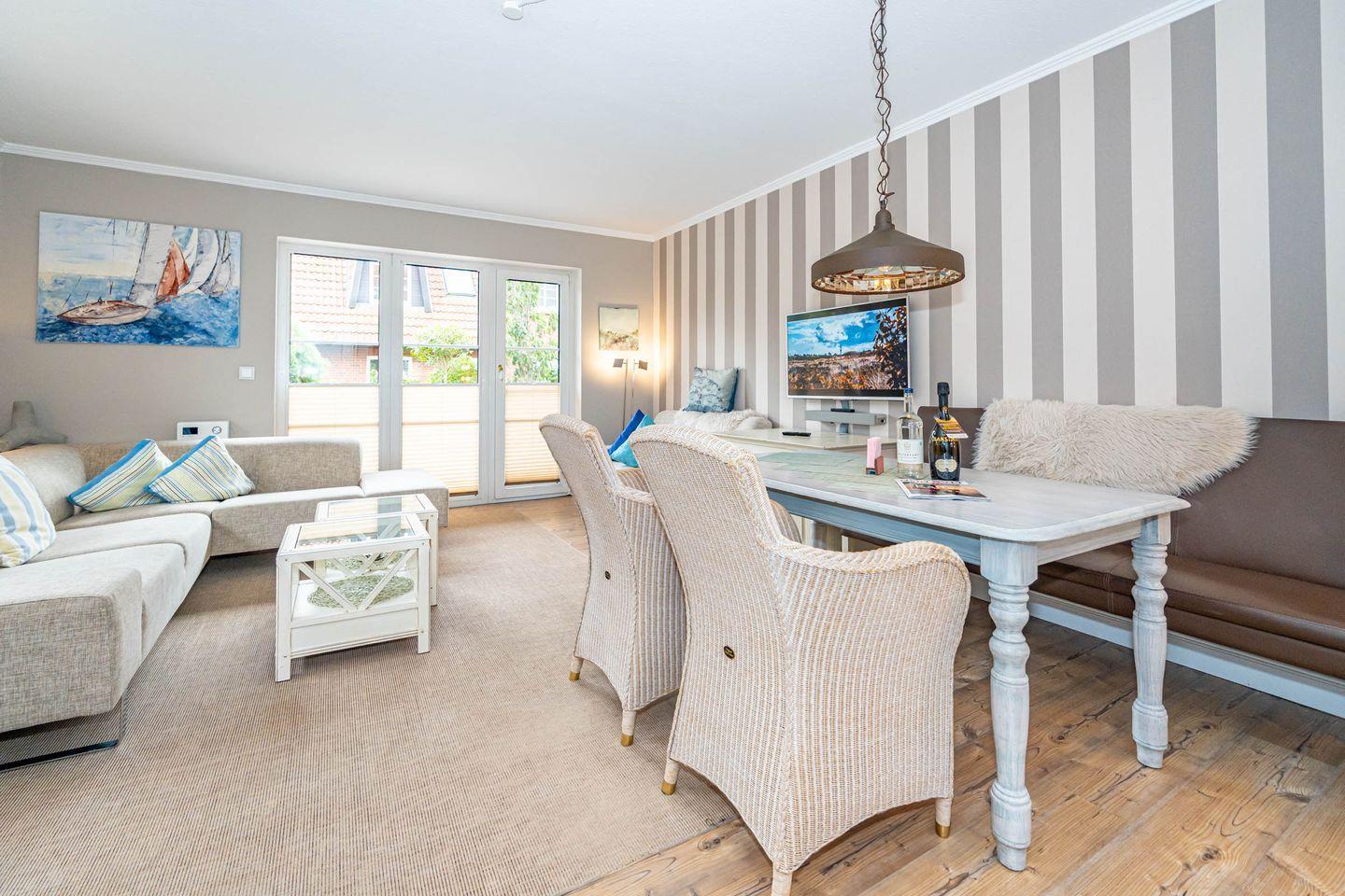 Willkommen in der Ferienwohnung "Constantin" in Tinnum! Diese einladende Ferienwohnung bietet auf 70 m² Platz für bis zu vier Personen. Genießen Sie die großzügige Terrasse, die mit Gartenmöbeln ausgestattet ist und relaxen Sie im Strandkorb.