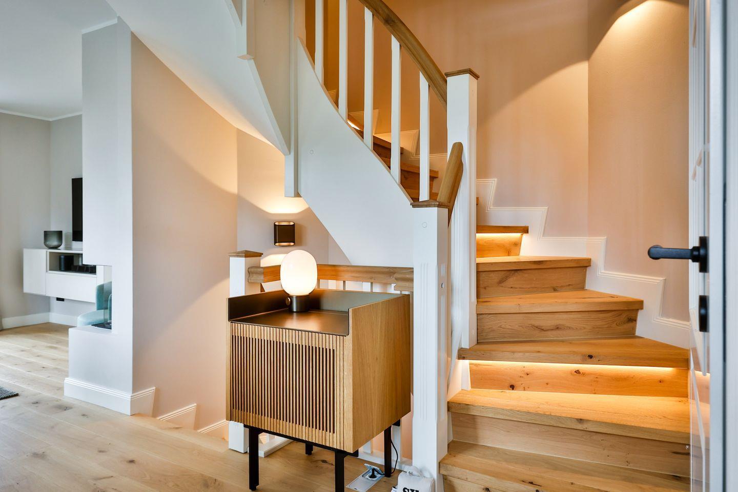 Der lichtdurchflutete Wohnraum des Hauses mit einer offenen und hochwertigen Küche, gemütlicher Sitzlandschaft, großem Smart-TV, Gaskamin und direktem Blick in den Garten. Die beiden Terrassen mit Süd- und Ostausrichtung laden schon zum Frühstück in der Morgensonne ein und bieten bis in die Abendstunden pure Entspannung.