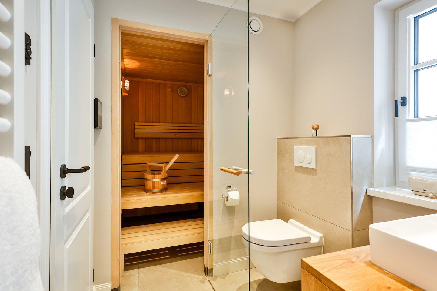 Das "Salzwiesen Hüs" besticht mit zwei modernen Tageslichtbädern, mit ebenerdiger Dusche, freistehender Badewanne und einer komfortablen KLAF Sauna für bis zu 4 Personen. Ihnen steht eine Waschmaschine sowie ein Trockner für die individuelle Nutzung zur Verfügung. Ein Gartenteil mit Friesenwall, Strandroggen und eigenem Parkplatz vor der Haustür darf nicht fehlen.