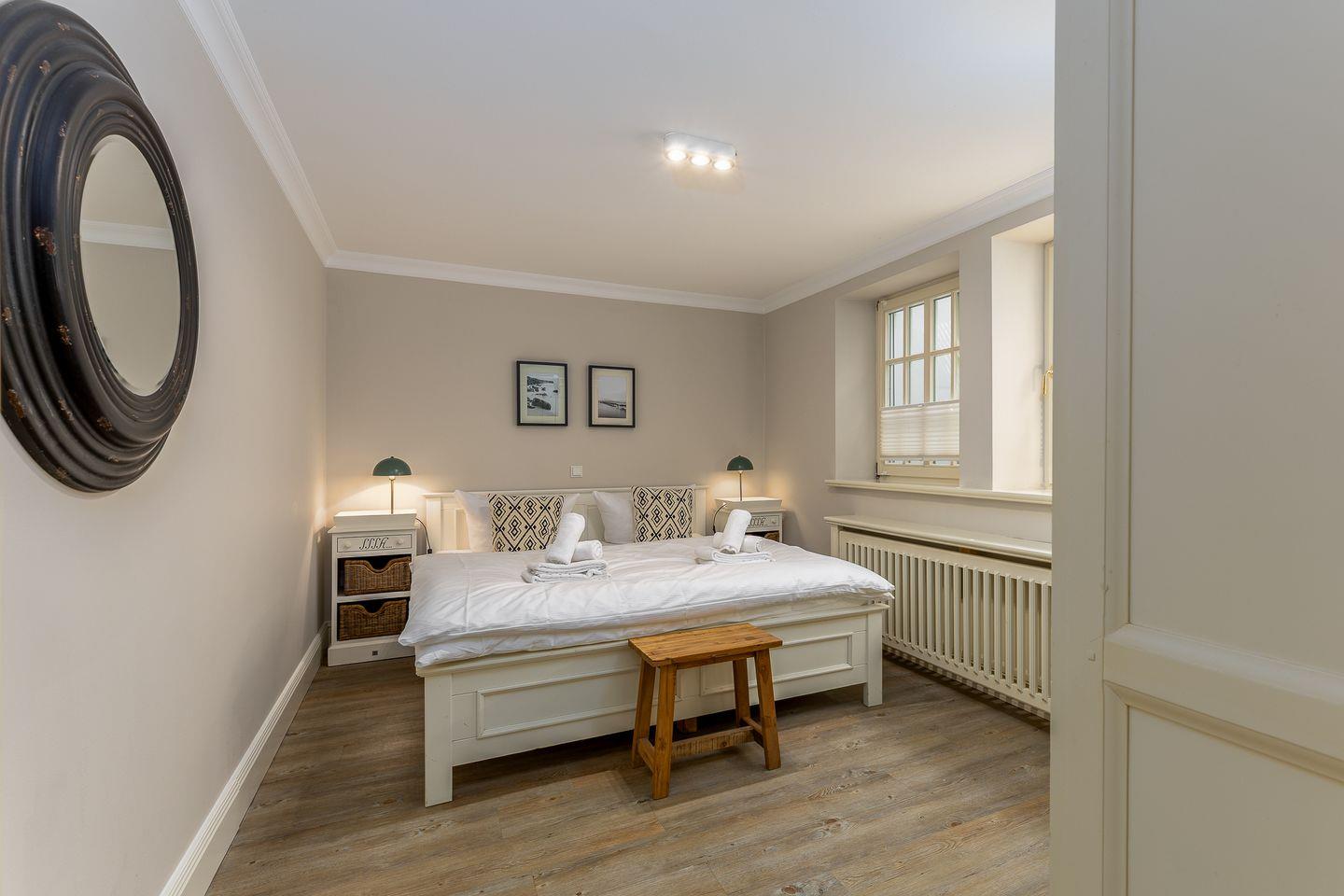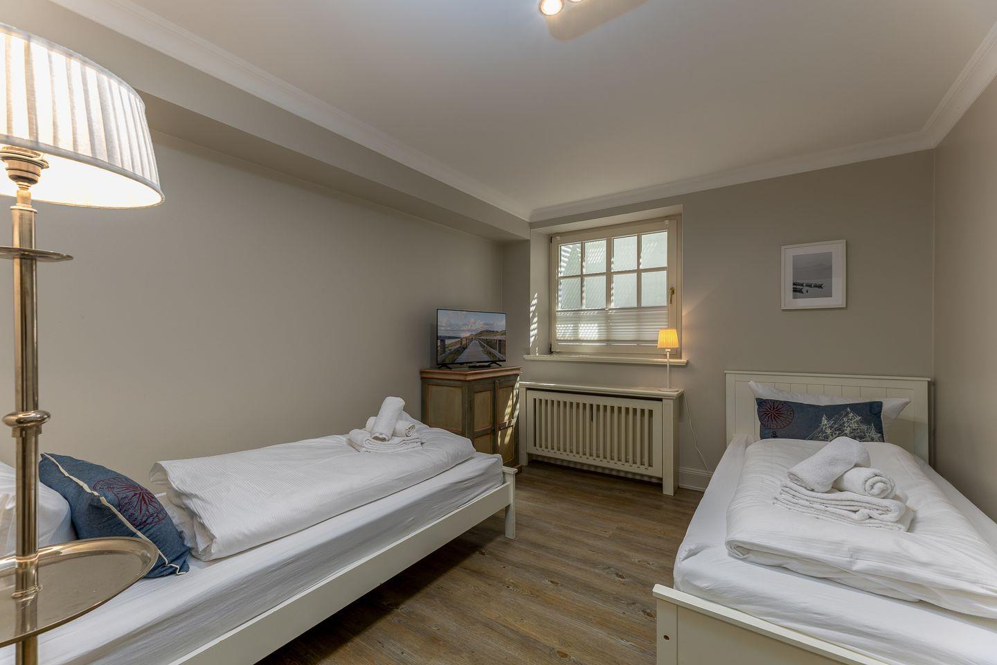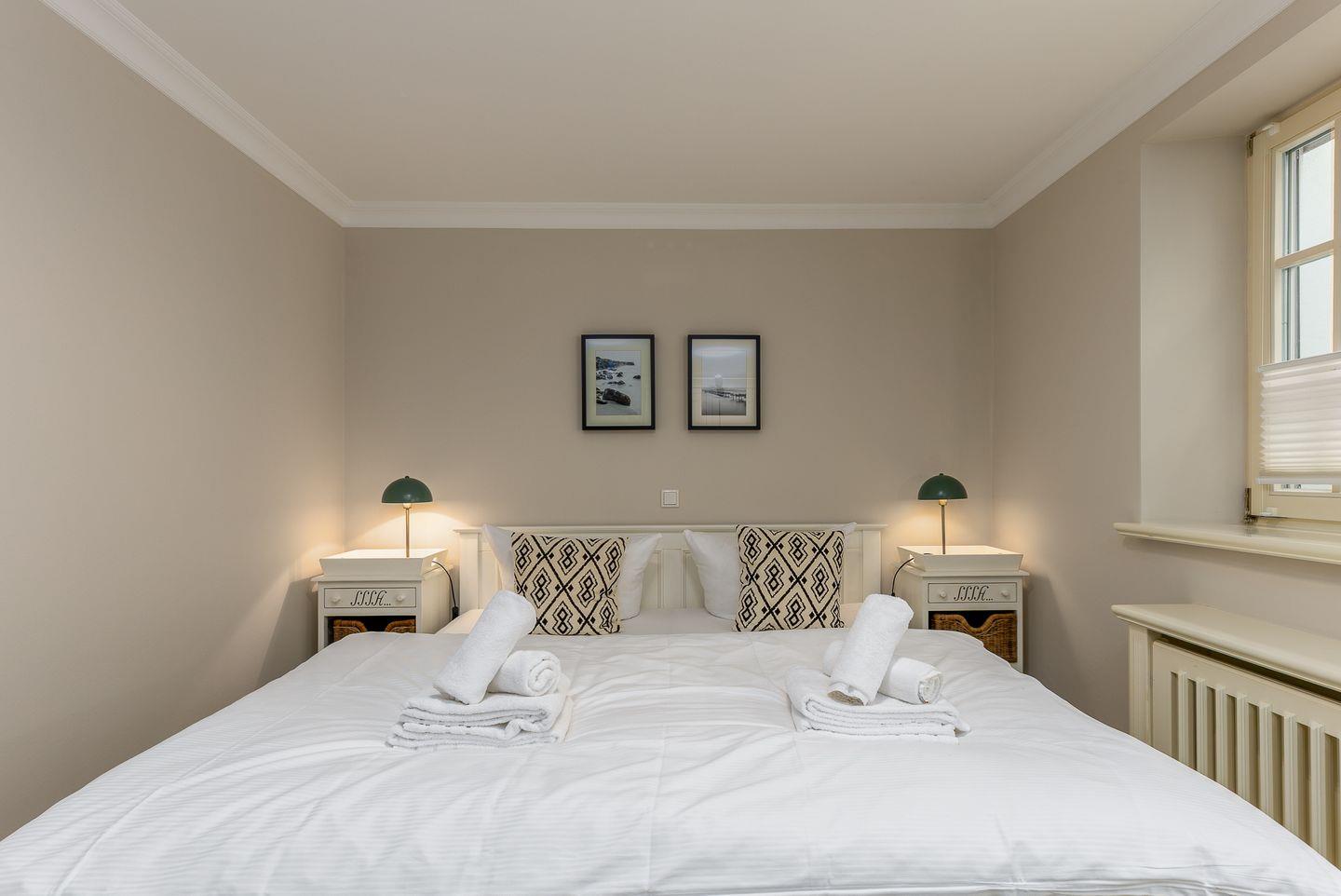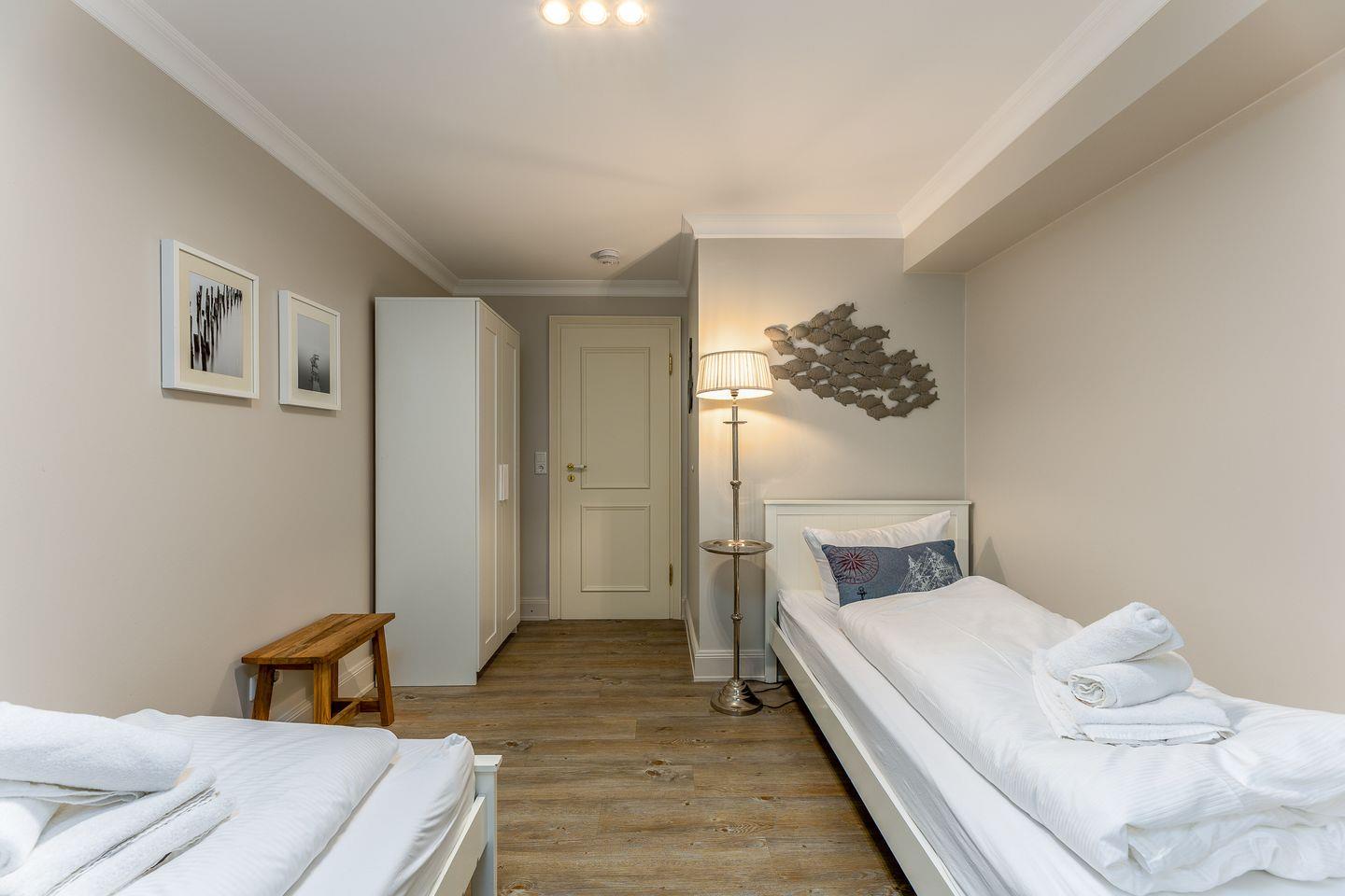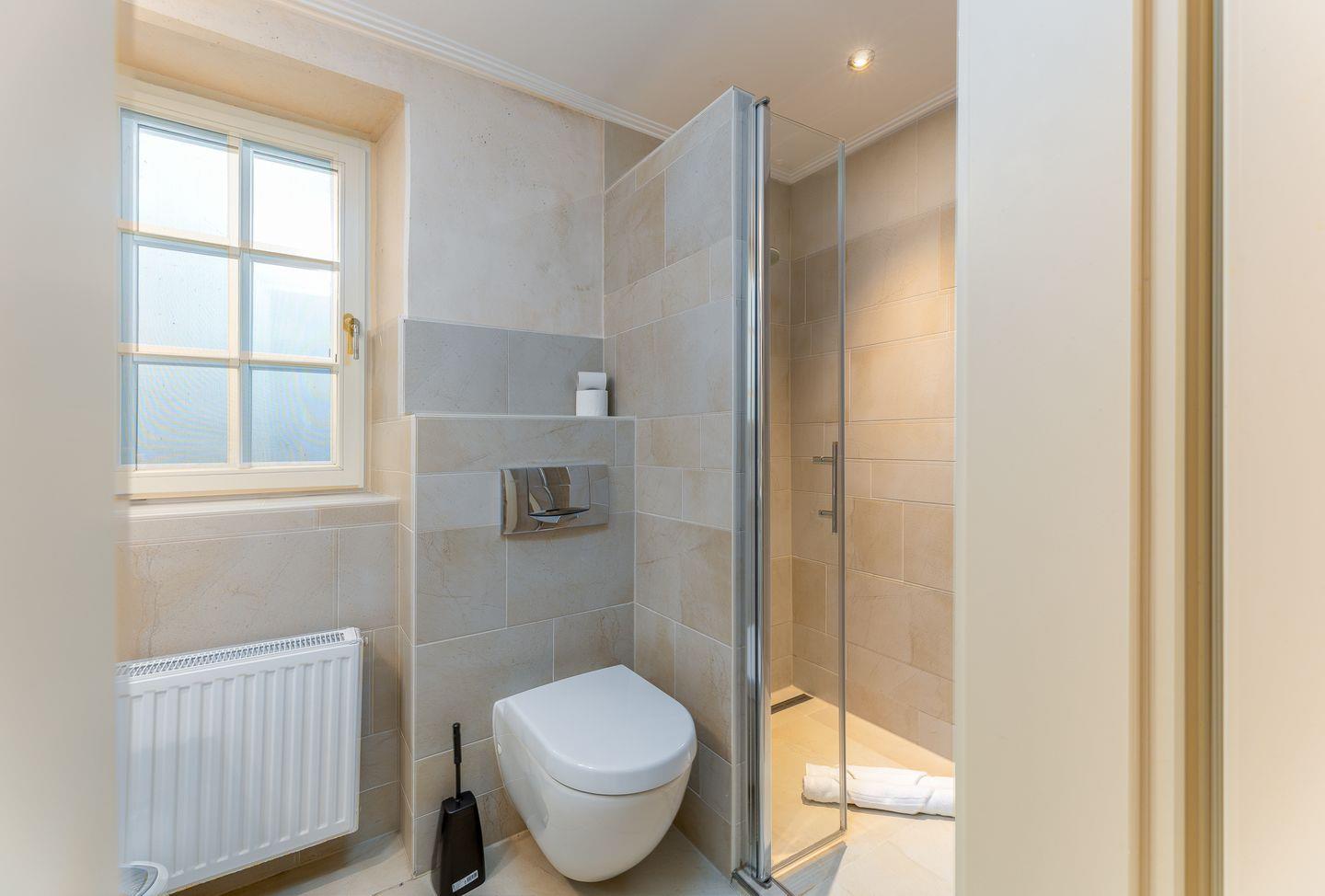 Im Souterrain befinden sich die beiden Schlafzimmer mit einem komfortablen Doppelbett bzw. zwei nicht minder gemütlichen Einzelbetten. Ebenfalls in doppelter Ausführung sind die stilvollen Duschbäder, die sich in einem feinen Sandton und mit ausreichend Platz präsentieren.