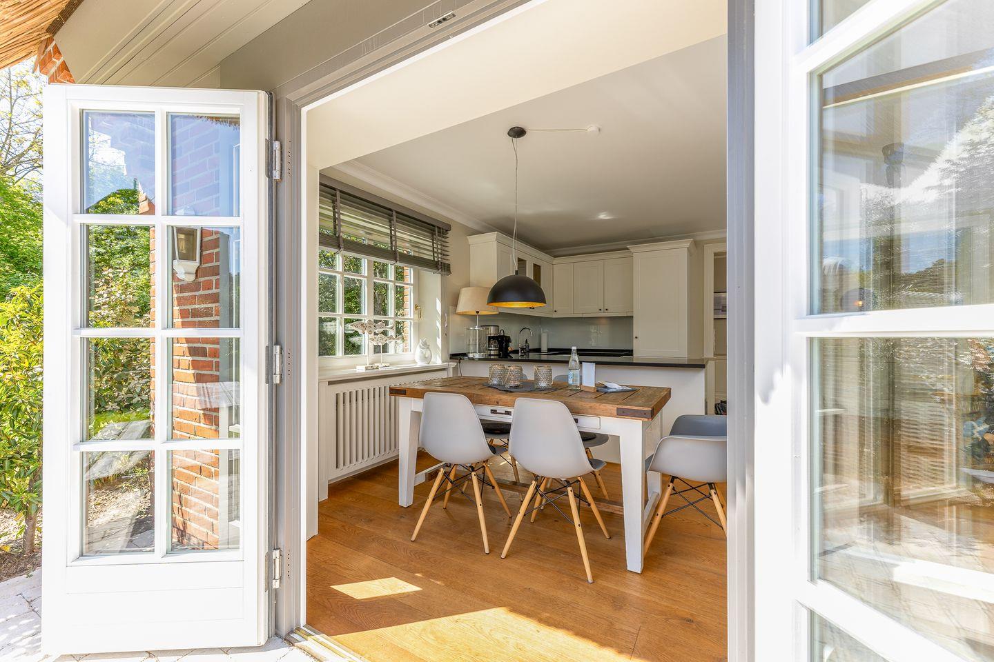 Das Erdgeschoss vereint den Wohnbereich mit einer hochwertig ausgestatteten offenen Küche sowie dem großen Esstisch. Bei schönem Wetter lässt es sich auch hervorragend auf der nach Süden ausgerichteten Gartenterrasse speisen.
