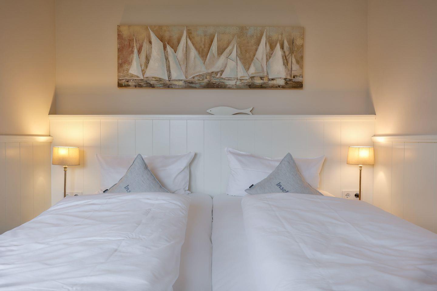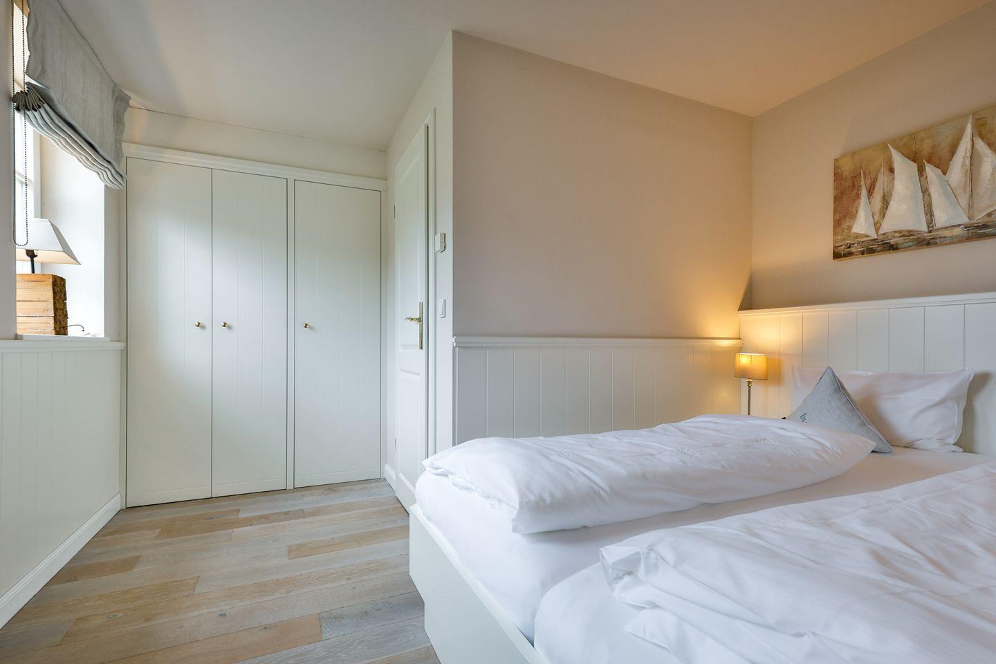 Die zwei Schlafzimmer bieten erholsamen Schlaf und sind stilvoll eingerichtet. Im Masterbedroom erwarten Sie ein Doppelbett (2x 90x200 cm), aufwendige Tischlereinbauten und ein TV. Das zweite Schlafzimmer bietet ebenfalls ein Doppelbett (2x 90x200 cm), einen Einbauschrank und TV.