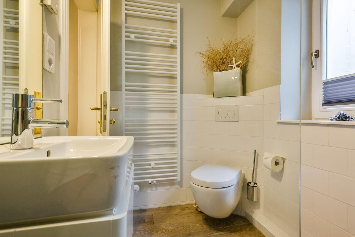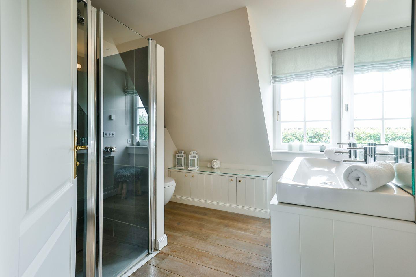 Die zwei Badezimmer verfügen über ebenerdige Regenduschen, Handtuchwärmer, Tageslicht und hochwertige Ausstattung – ideal für entspannende Wellnessmomente.